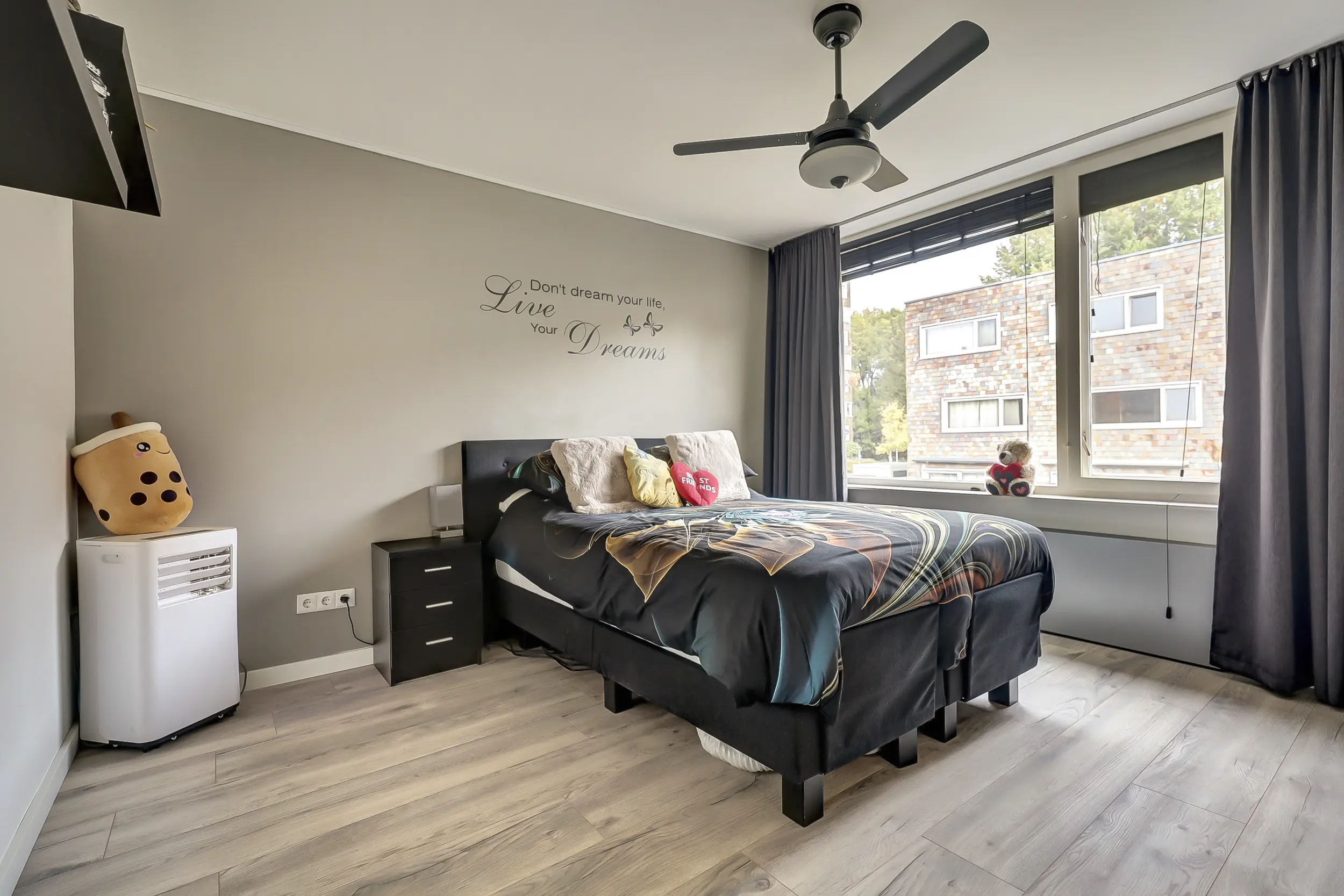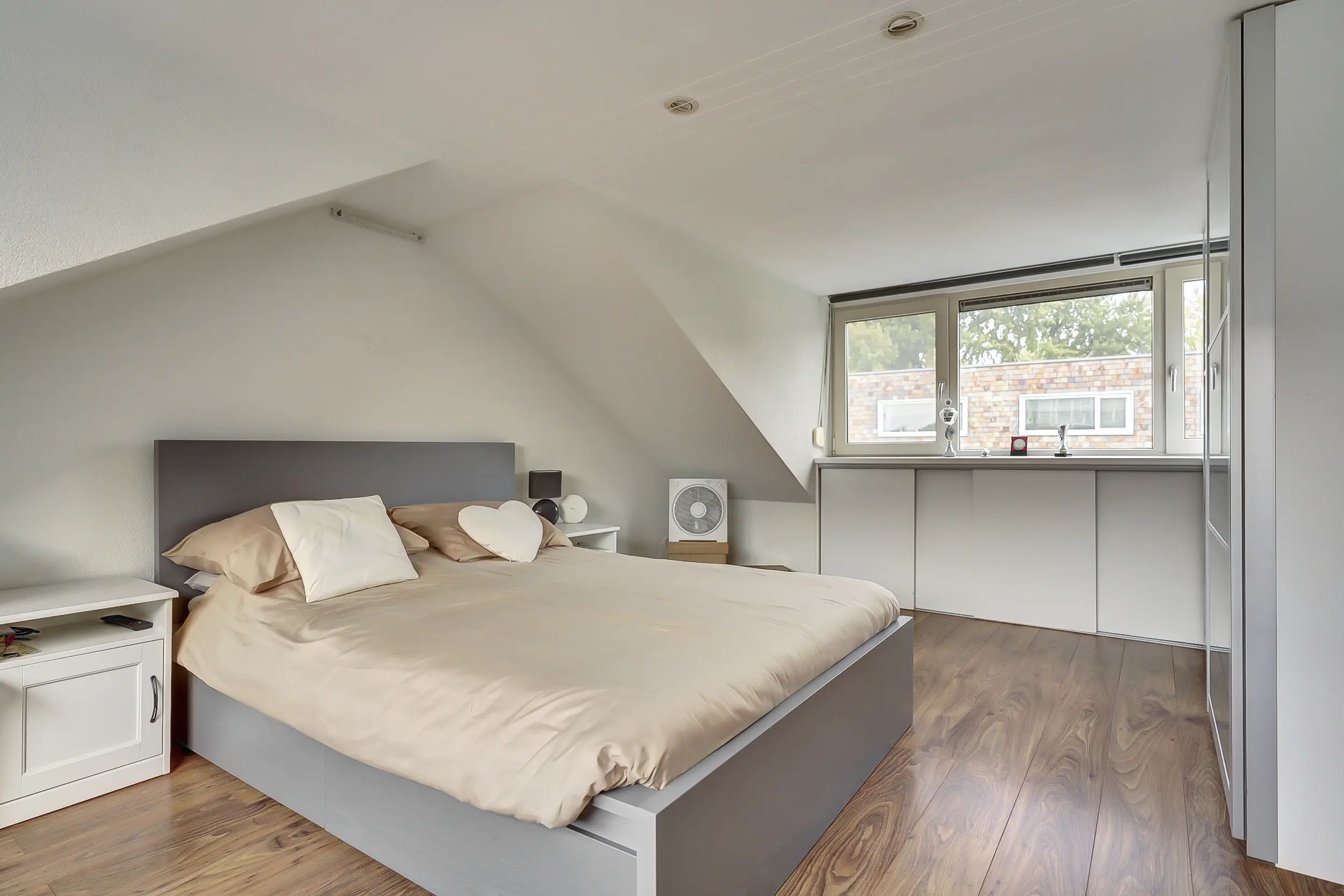 Deze etage is flink vergroot door een dakkapel aan de voorzijde en een dakkapel aan de achterzijde, beiden voorzien van rolluiken.