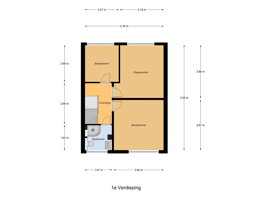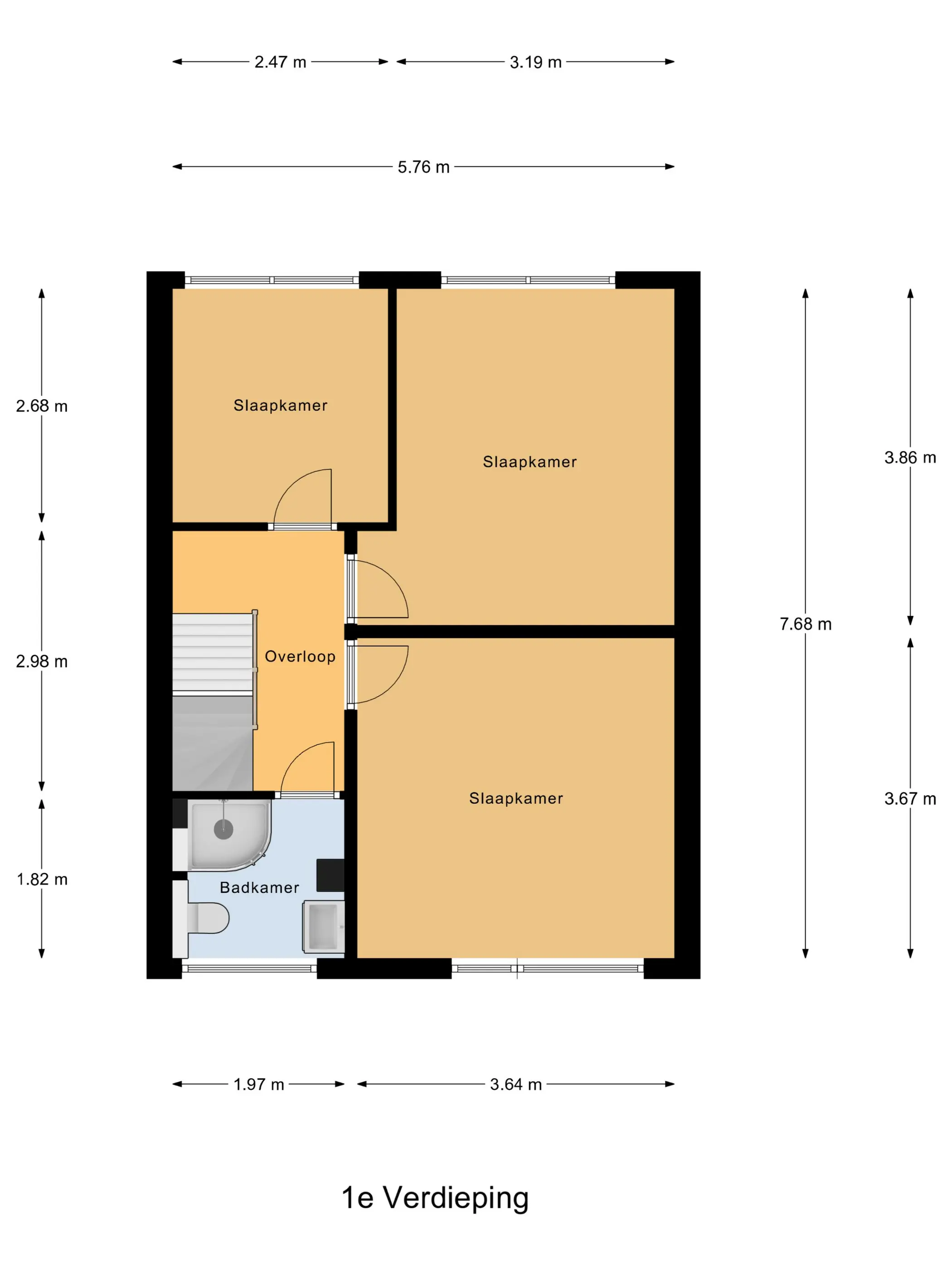 3 slaapkamers en een complete badkamer met 2e toilet, douche en wastafel.