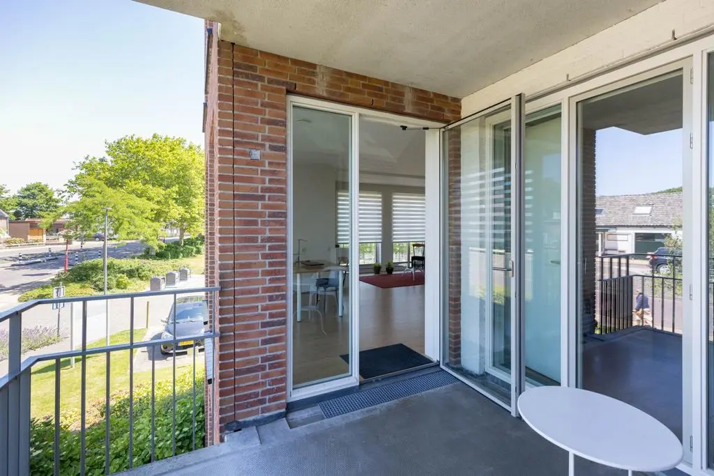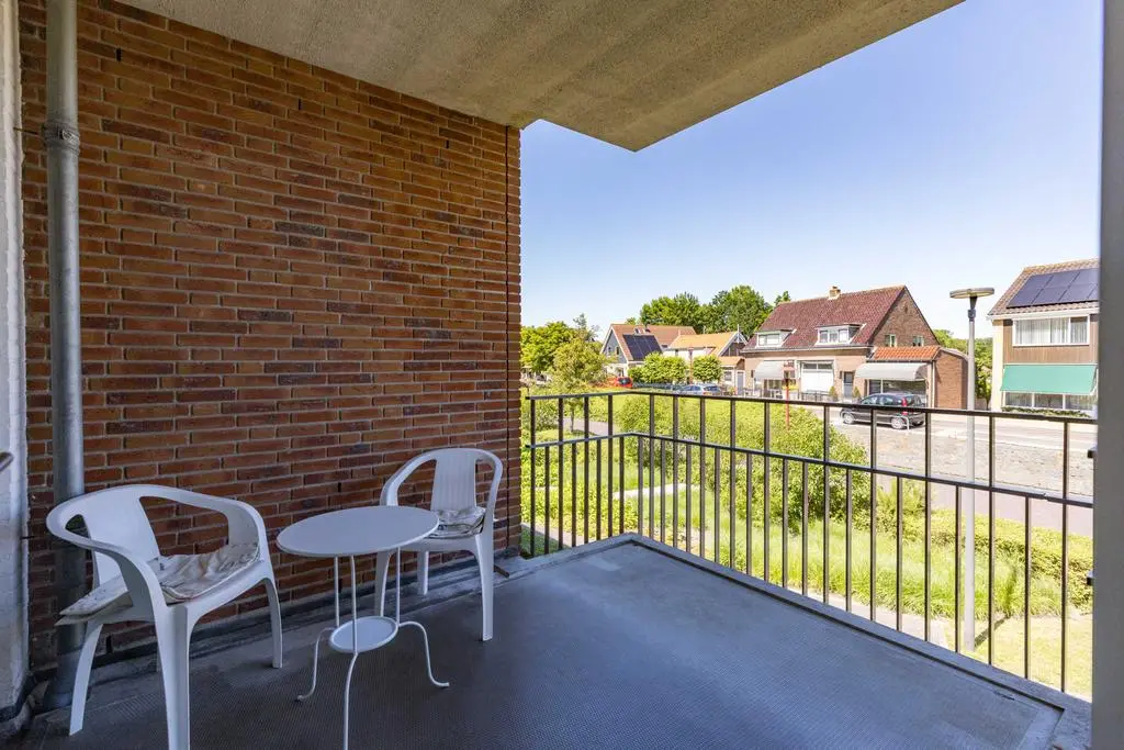 Vanuit de slaapkamer ook toegang tot het balkon met uitzicht op de dijk richting het strand.