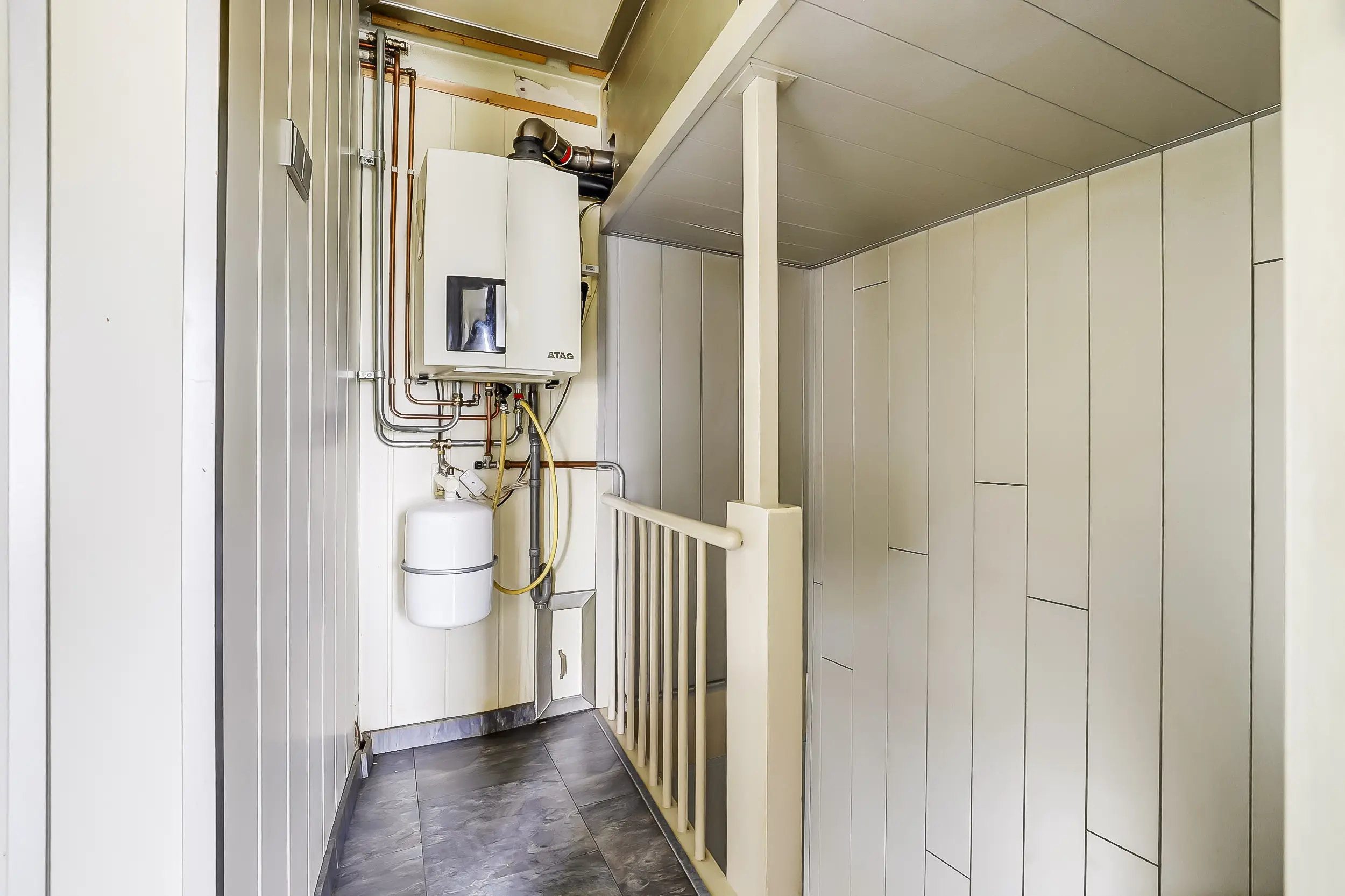 Overloop met bergruimte voorzien van c.v.-ketel.