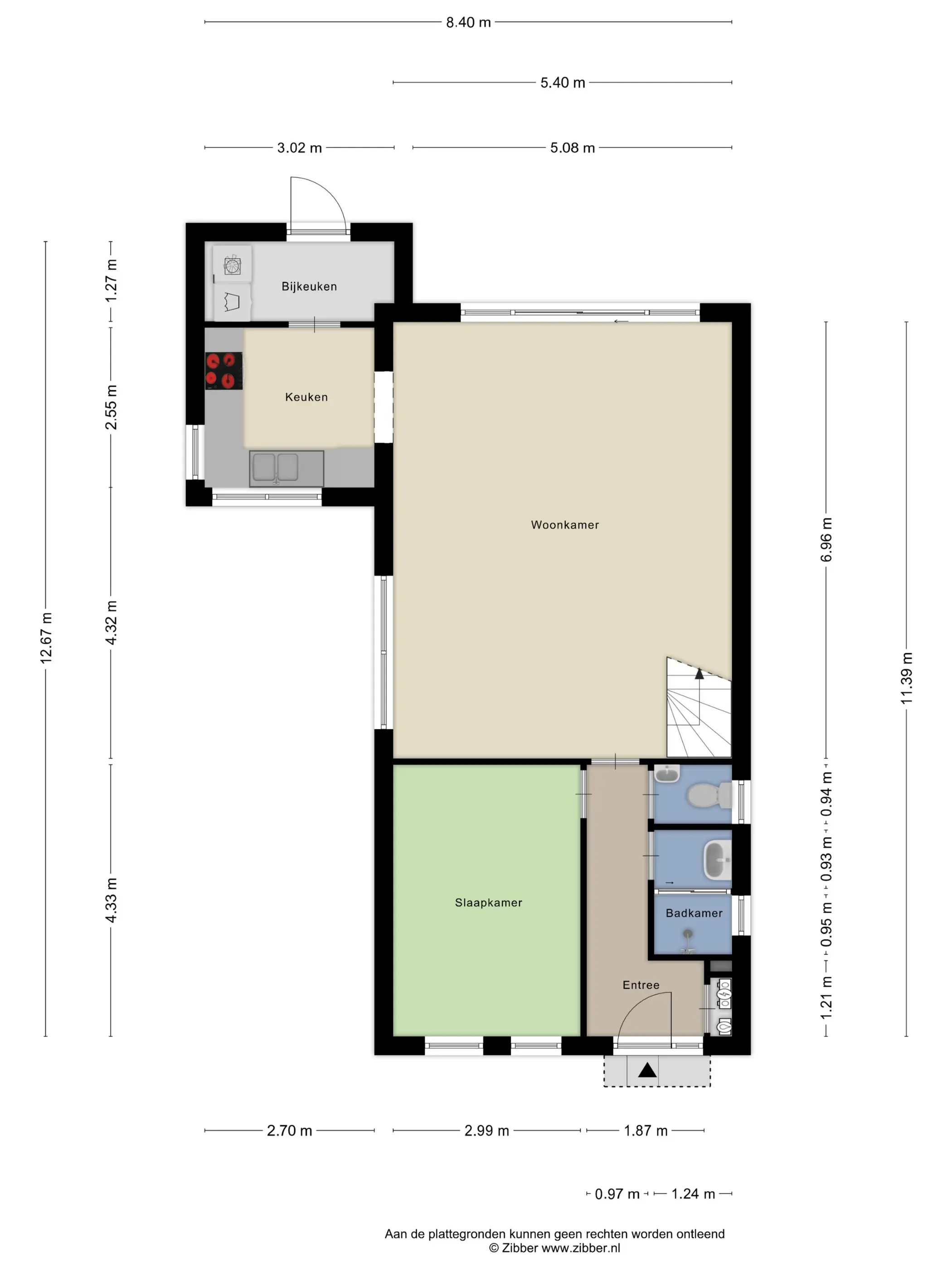 De begane grond is gastvrij en uitnodigend, met een open lay-out en ingebouwde keukenapparatuur. Met een totaal van 2 kamers, waaronder een ruime woonkamer en slaapkamer en een badkamer met douchefaciliteiten en een apart toilet, biedt deze ruimte veel comfort en gebruiksgemak.