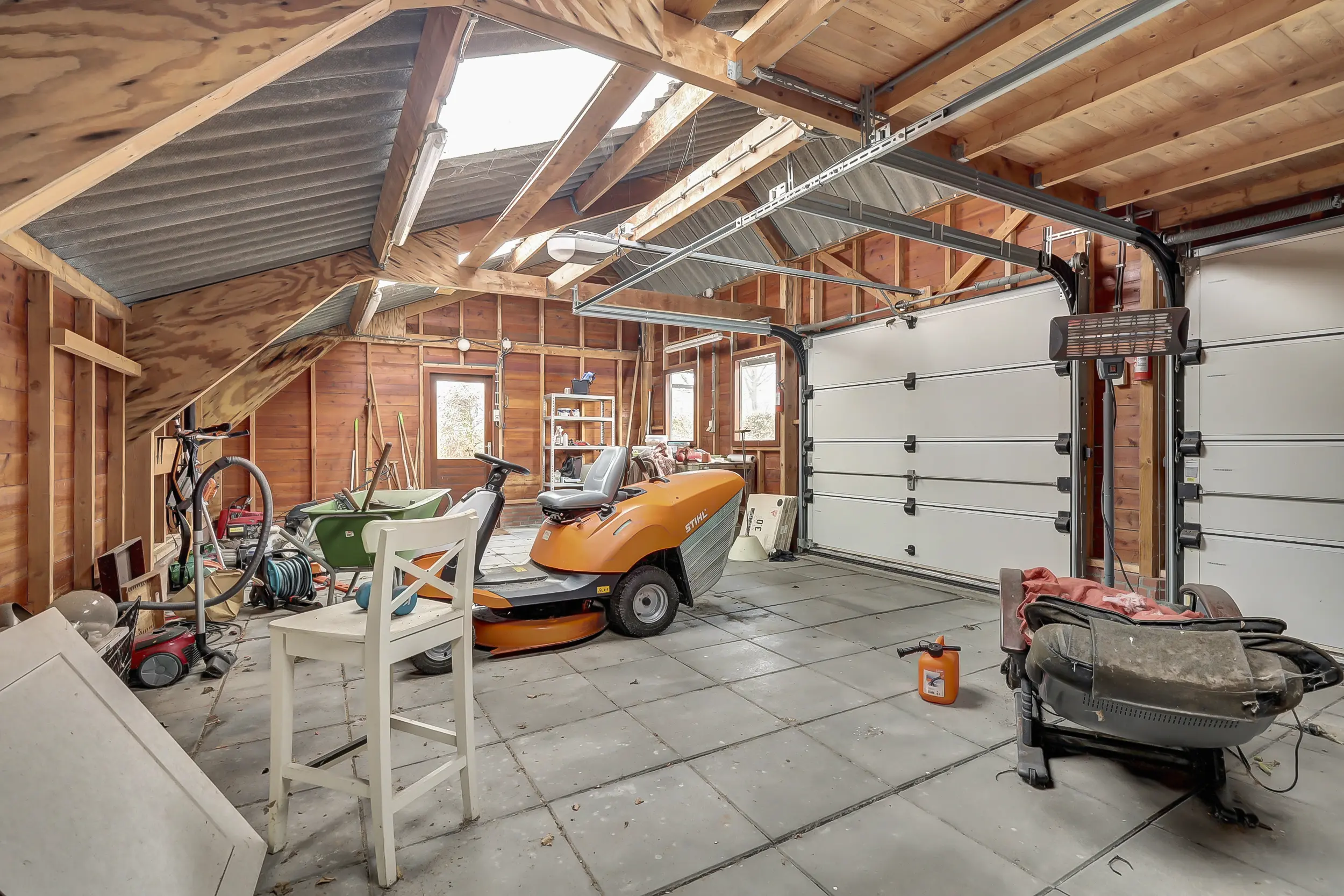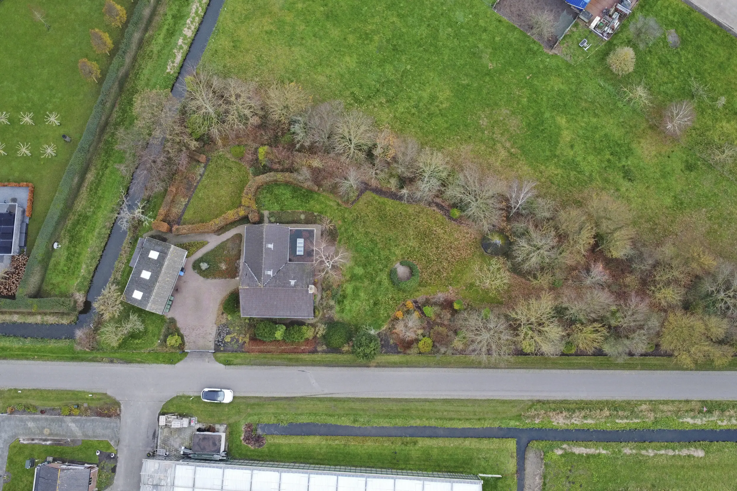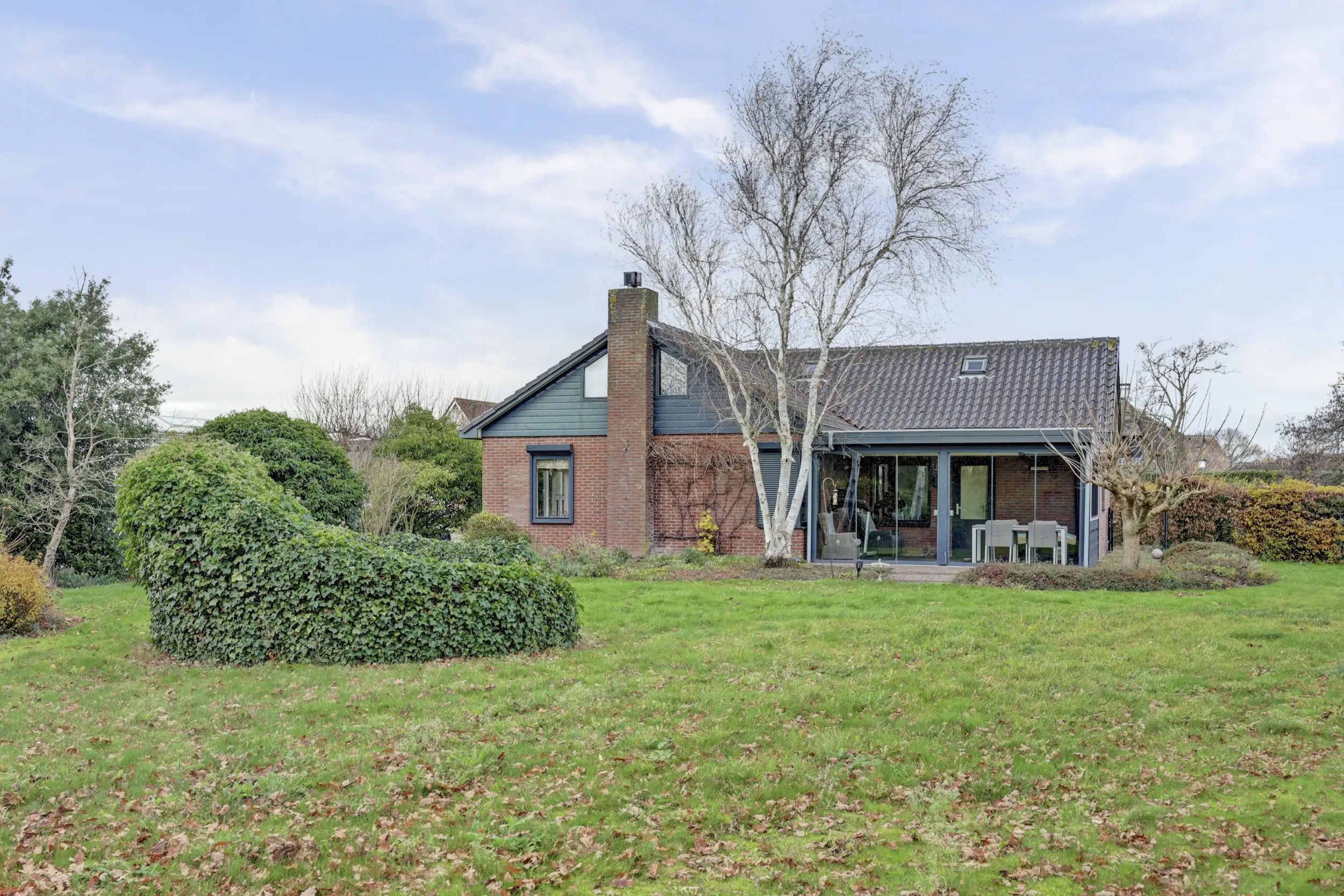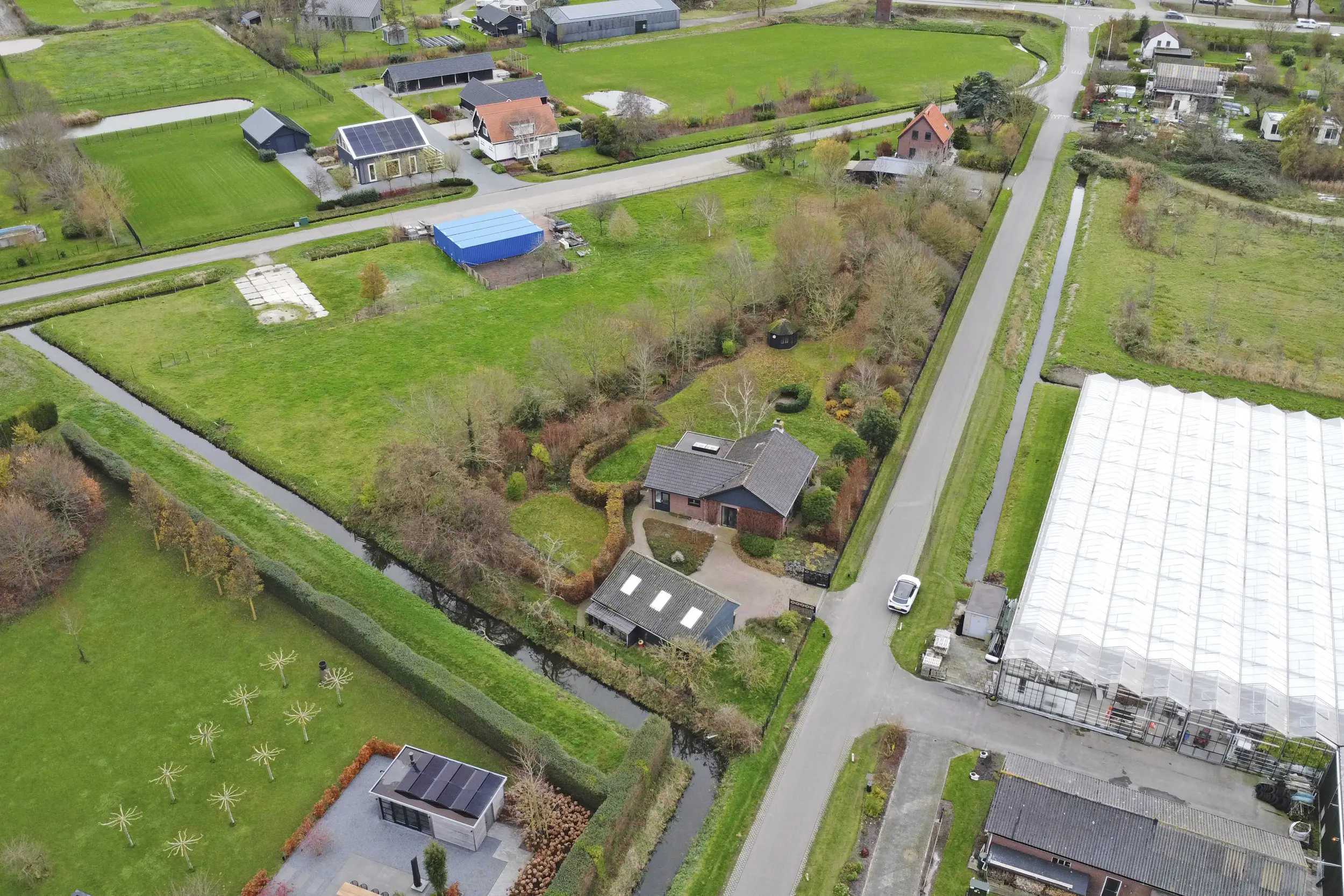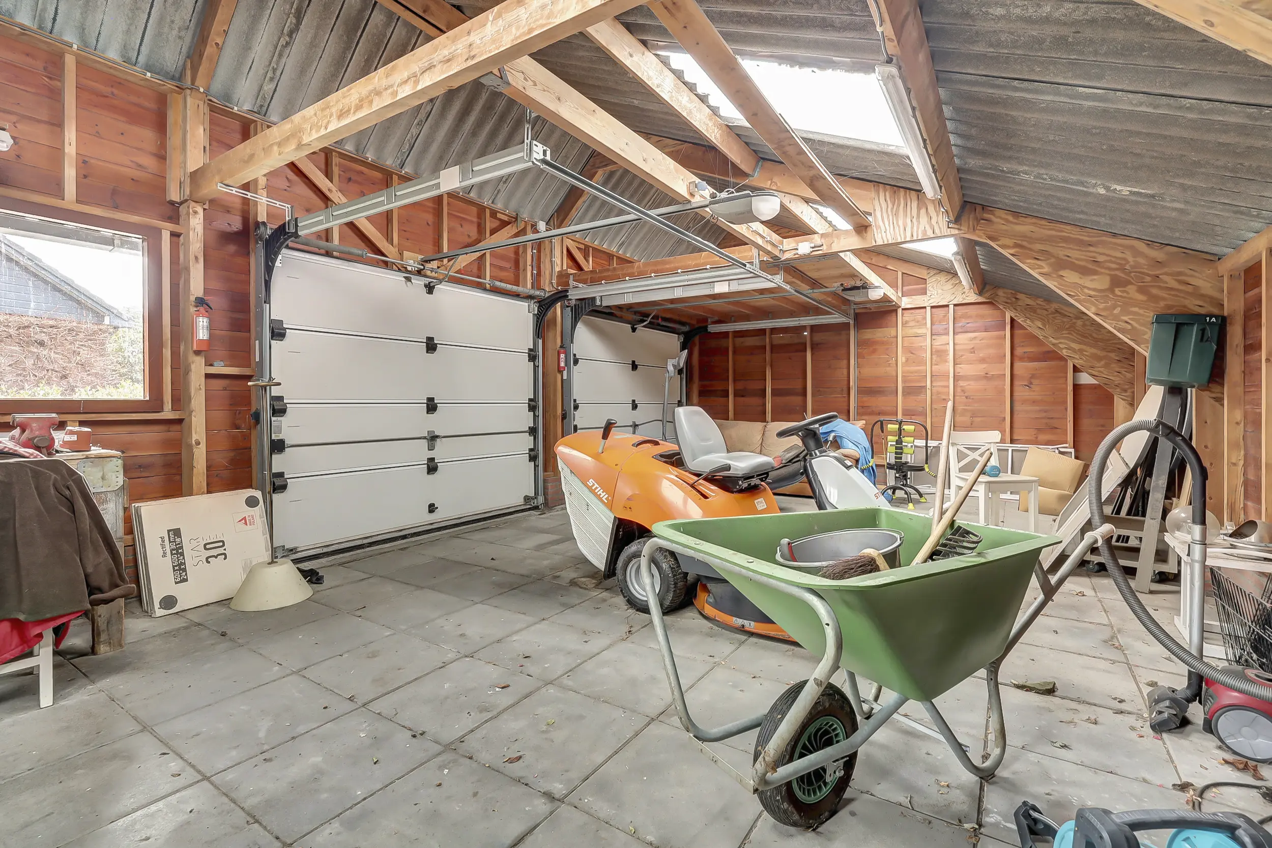 Een mooi aangelegde tuin met sierbestrating, sierhagen, gazon en borders. Door deze aanleg biedt de tuin veel privacy. Rondom het perceel is een hekwerk geplaatst met een elektrische poort. Op het perceel is een schuur met daarin een dubbele garage en voldoende ruimte voor een hobbyist en alle tuingereedschappen. Voor de garages is meer dan voldoende ruimte om auto’s te parkeren op eigen terrein. Aan de andere zijde van het huis is een houten tuinhuis.