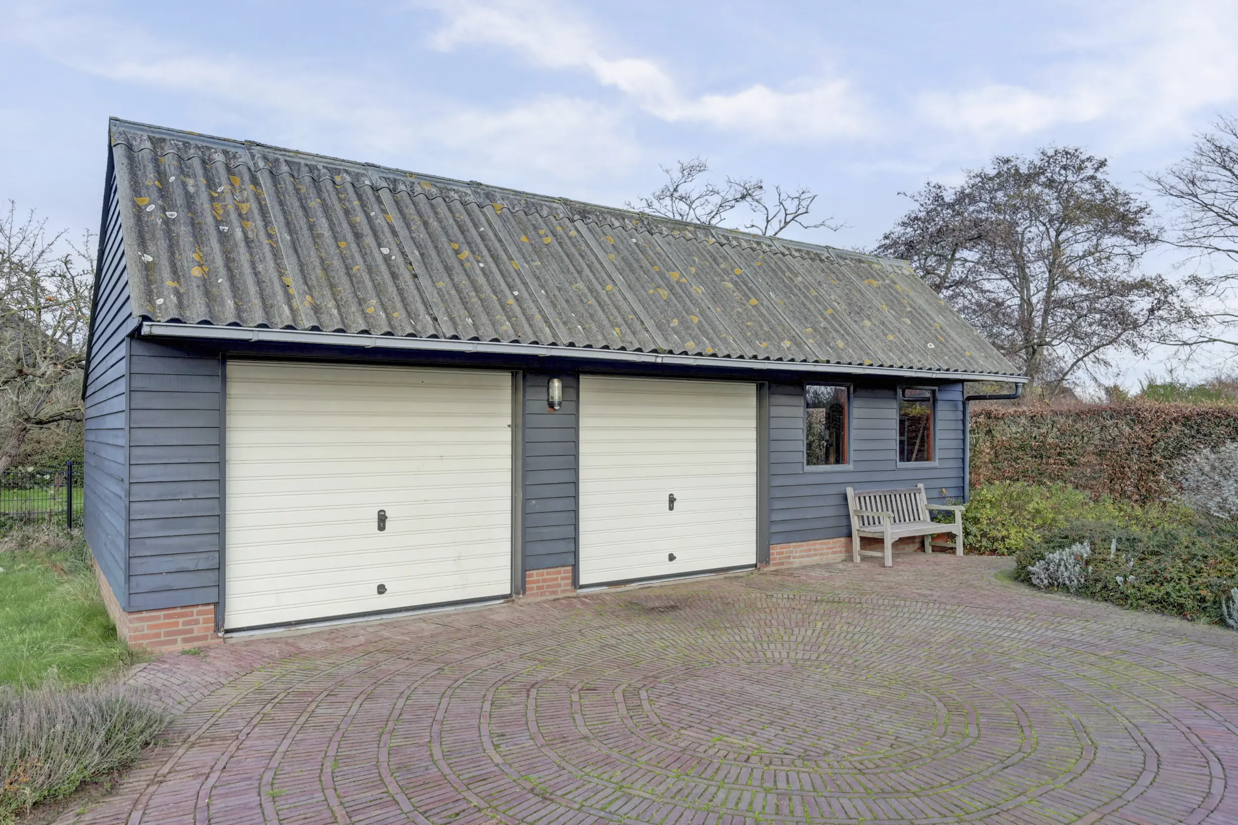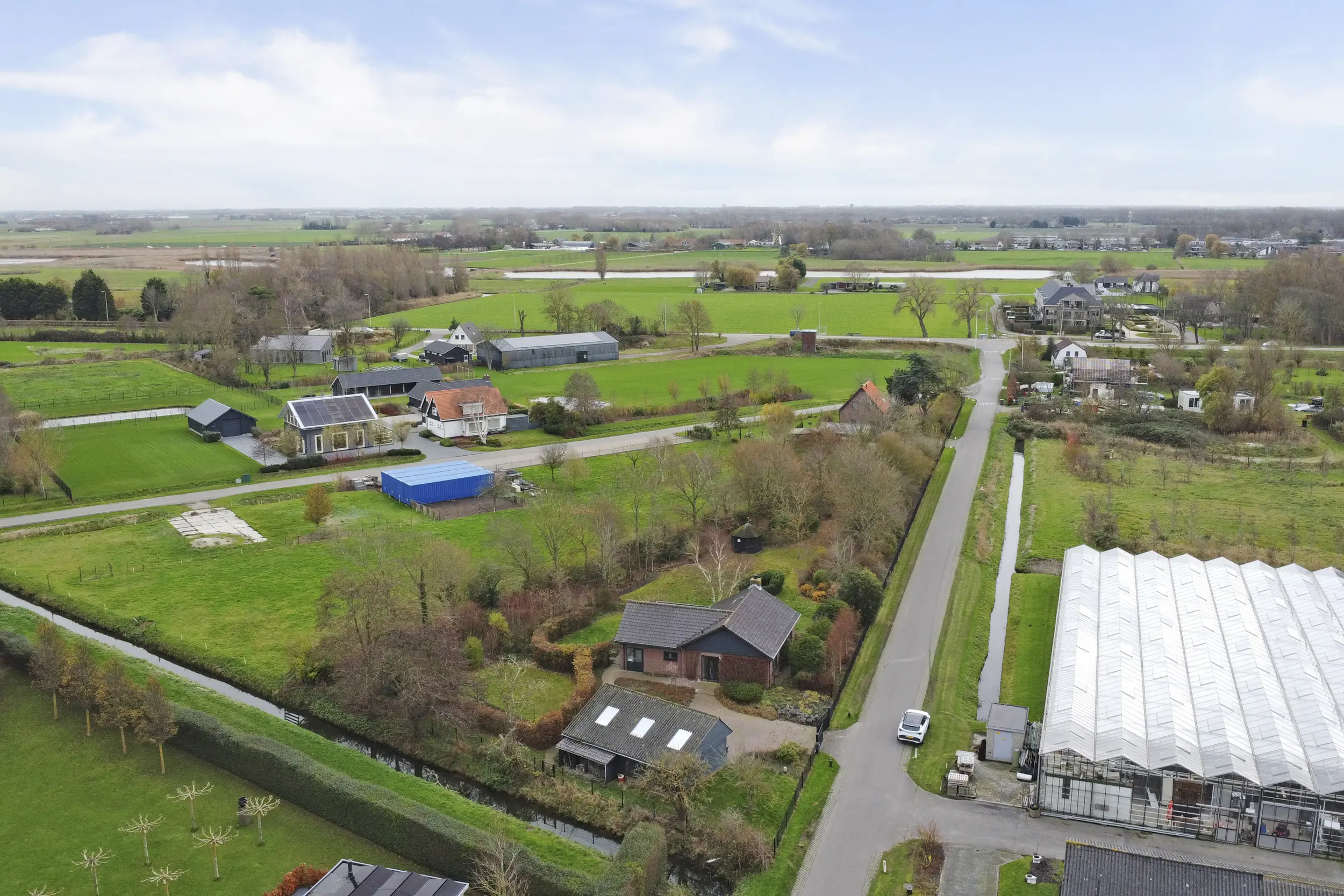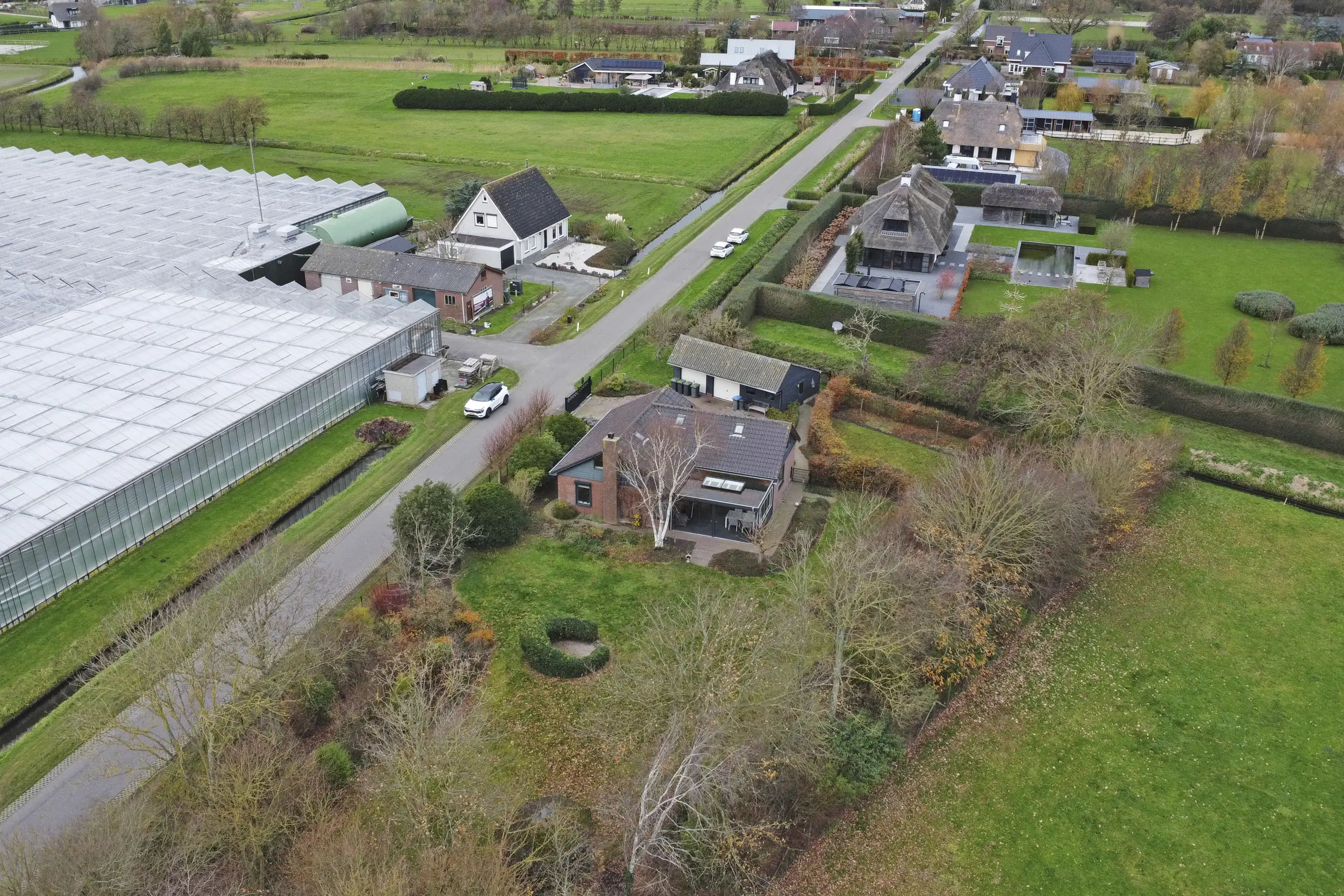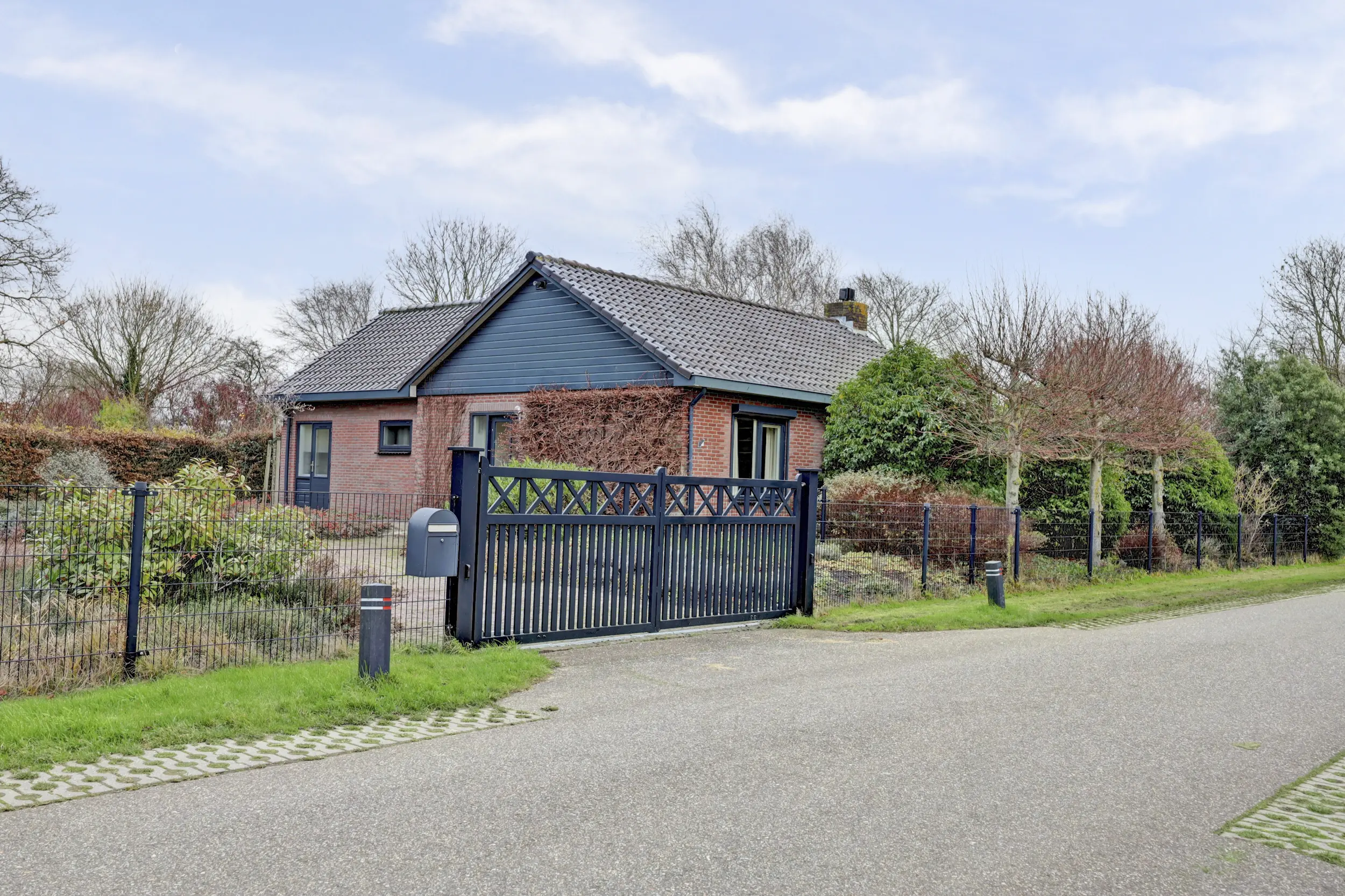 Een mooi aangelegde tuin met sierbestrating, sierhagen, gazon en borders. Door deze aanleg biedt de tuin veel privacy. Rondom het perceel is een hekwerk geplaatst met een elektrische poort. Op het perceel is een schuur met daarin een dubbele garage en voldoende ruimte voor een hobbyist en alle tuingereedschappen. Voor de garages is meer dan voldoende ruimte om auto’s te parkeren op eigen terrein. Aan de andere zijde van het huis is een houten tuinhuis.