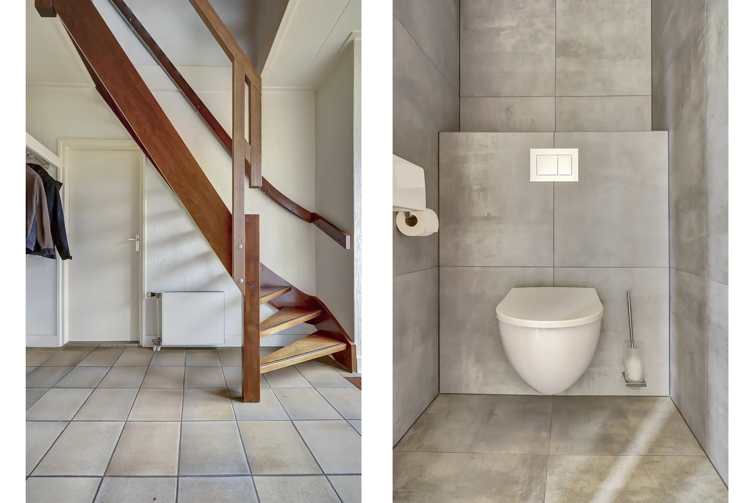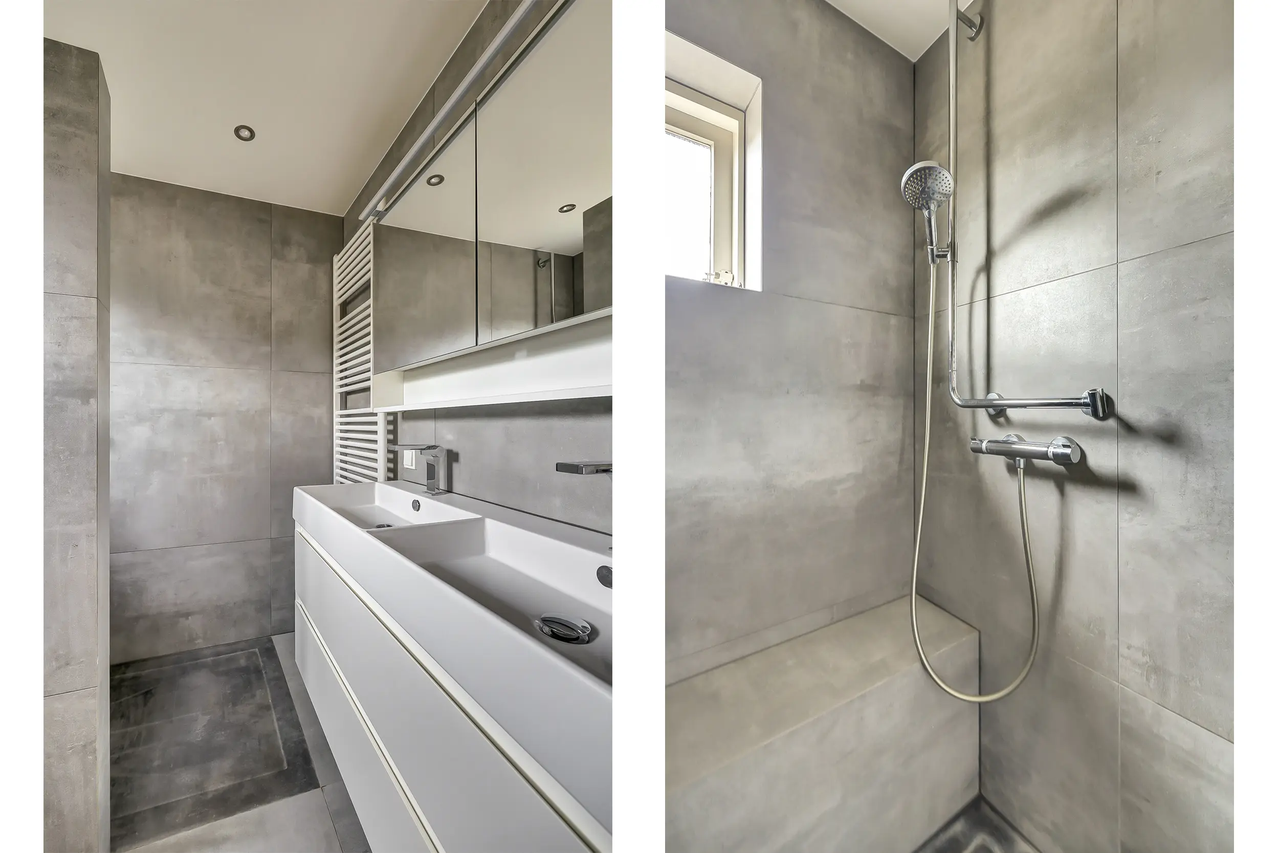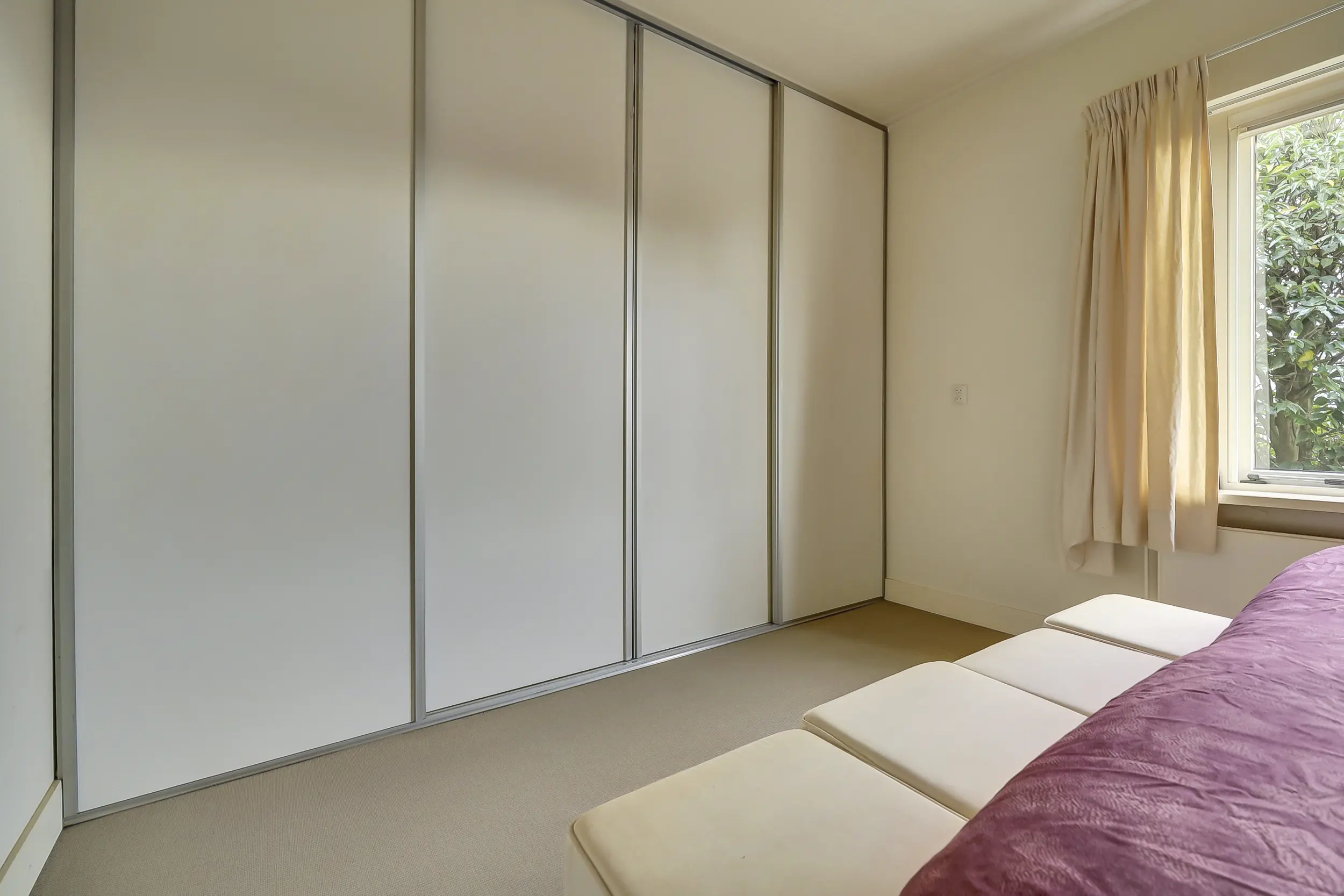 Op de begane grond is een moderne badkamer met badkamermeubel, 2e toilet en inloopdouche met een zitje. Voor bezoekers is er een modern separaat toilet (beide vernieuwd in 2020). Grenzend aan de entree/hal is aan de voorzijde een slaapkamer met over de gehele breedte van de slaapkamer een kastenwand.