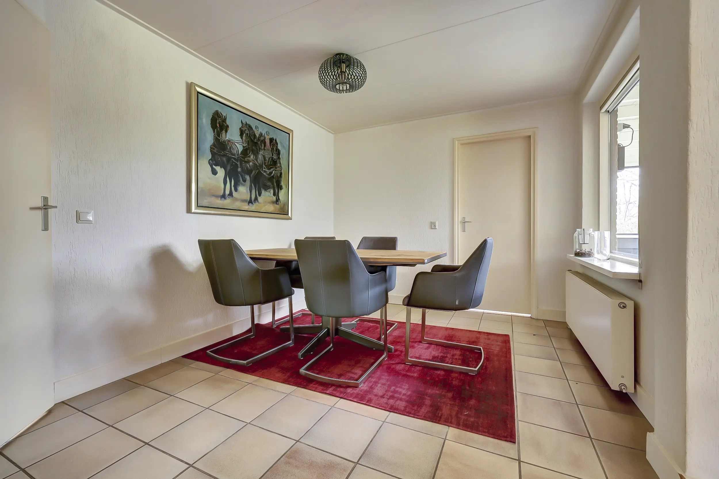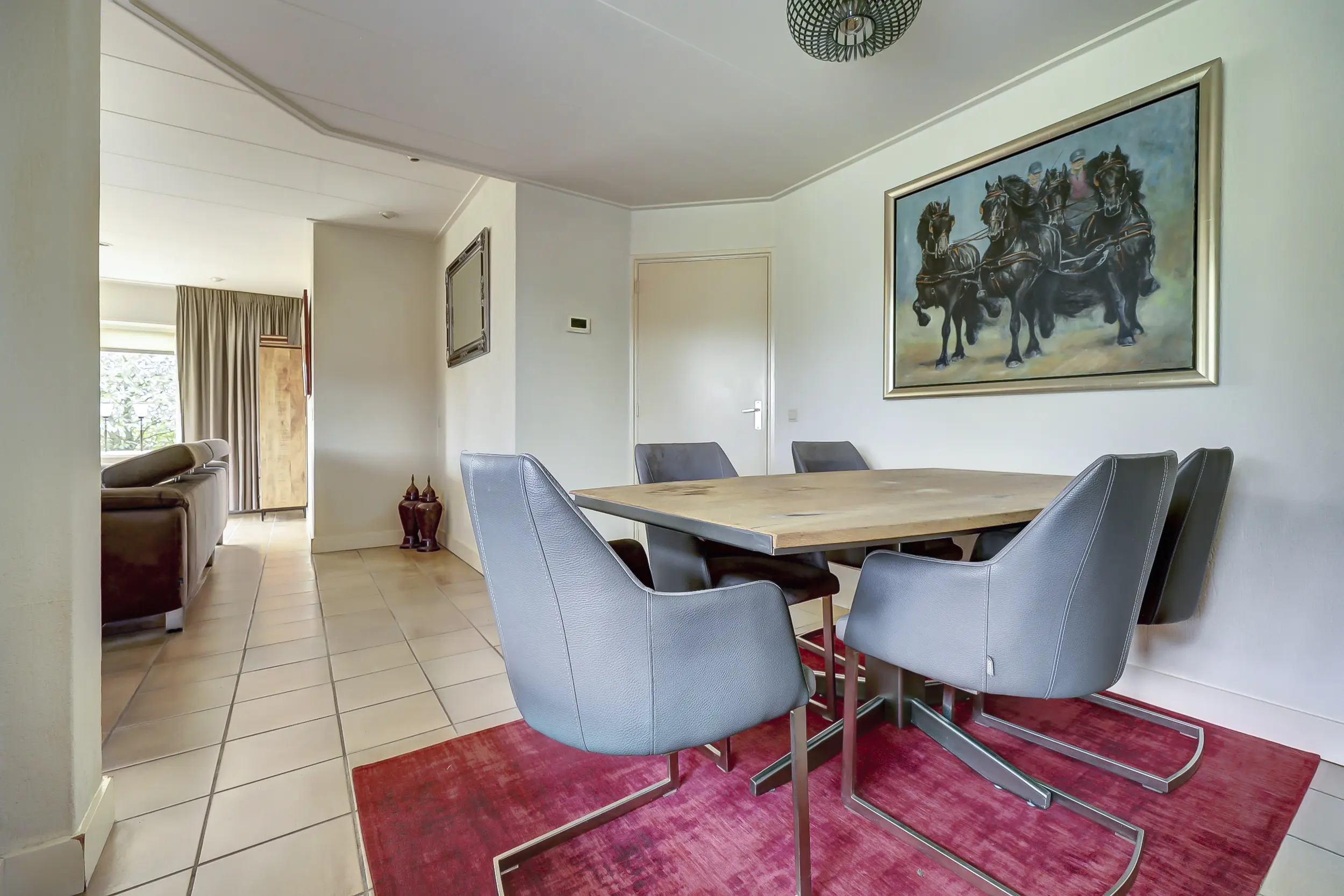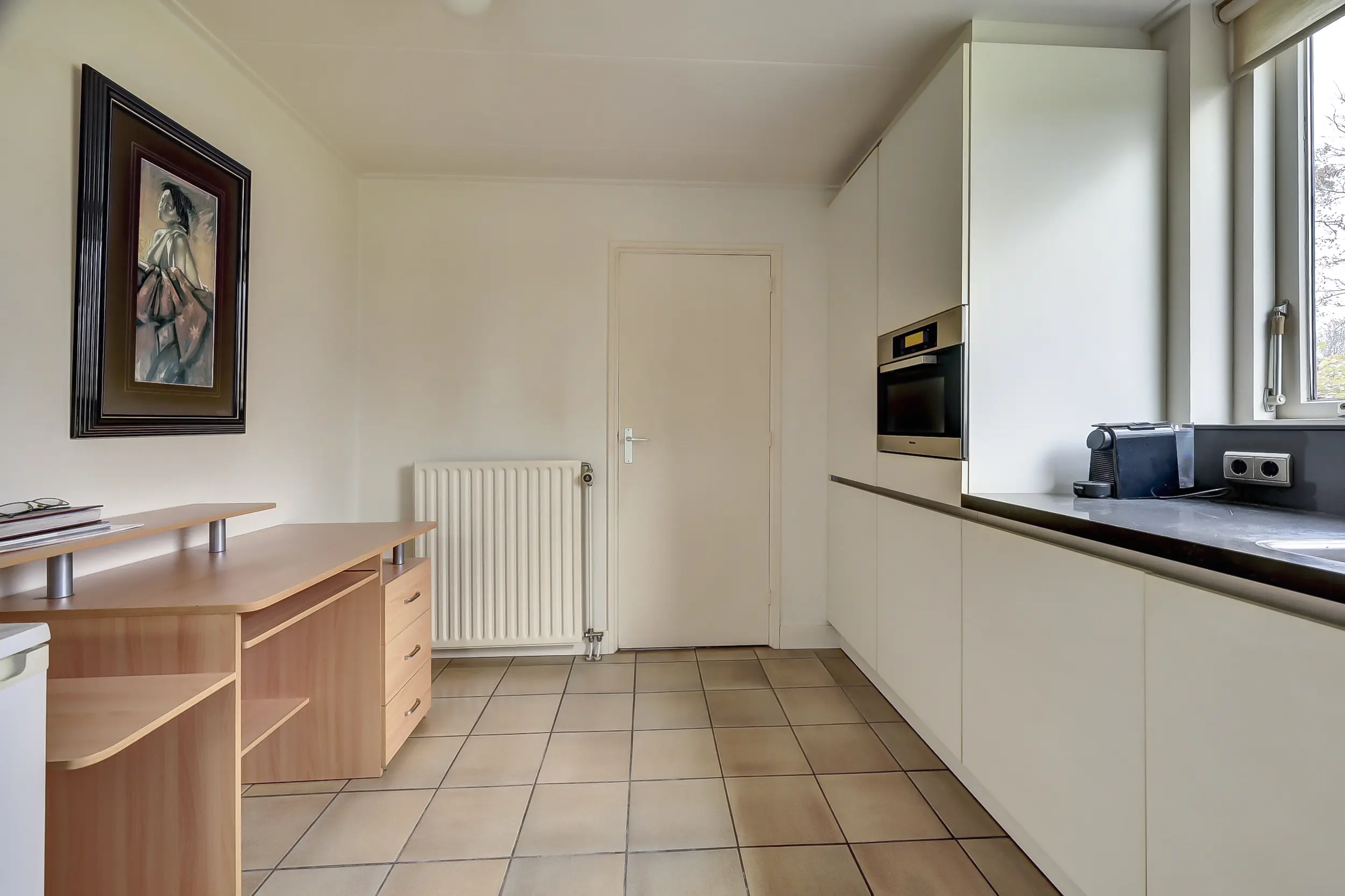 Via een nette entree bereik je de ruime en lichte woonkamer met open haard en zicht op de royale tuin. Aan de achterzijde is de keuken gelegen. De tijdloze luxe keuken in hoekopstelling is voorzien van inbouwapparatuur zoals een quooker, inductiekookplaat met afzuigkap, oven, vaatwasser en koelkast. Een heerlijke plek voor kookliefhebbers! Voor het gemak is er een bijkeuken met achteruitgang, een ruime bergkast en de wasmachine-/drogeraansluiting. Aan de tuinzijde is, via de keuken bereikbaar, een fantastische overkapping gerealiseerd met glazen schuifpui. Zo kun je het hele jaar genieten van het buitenleven!