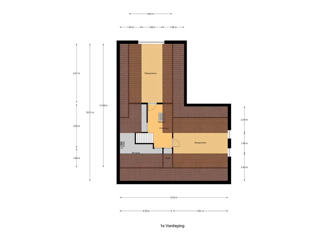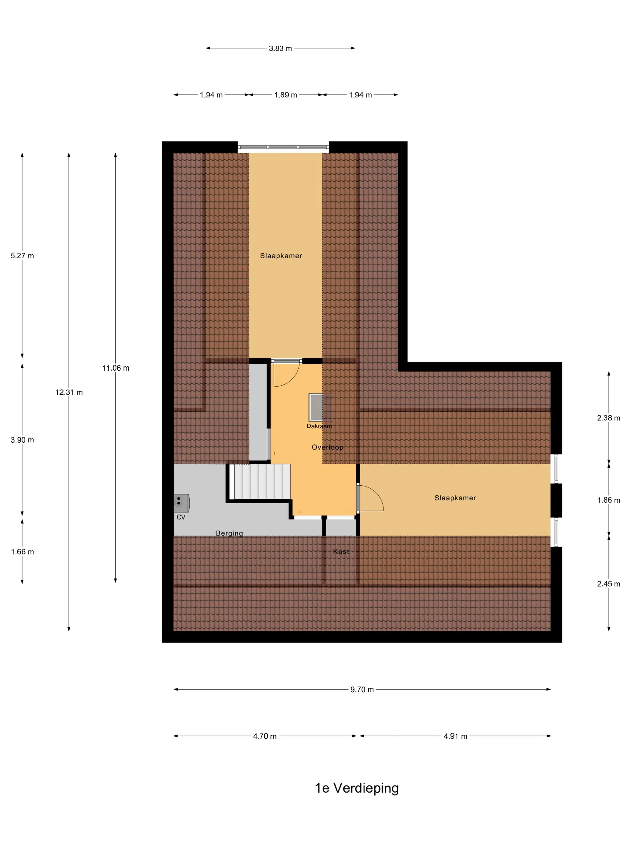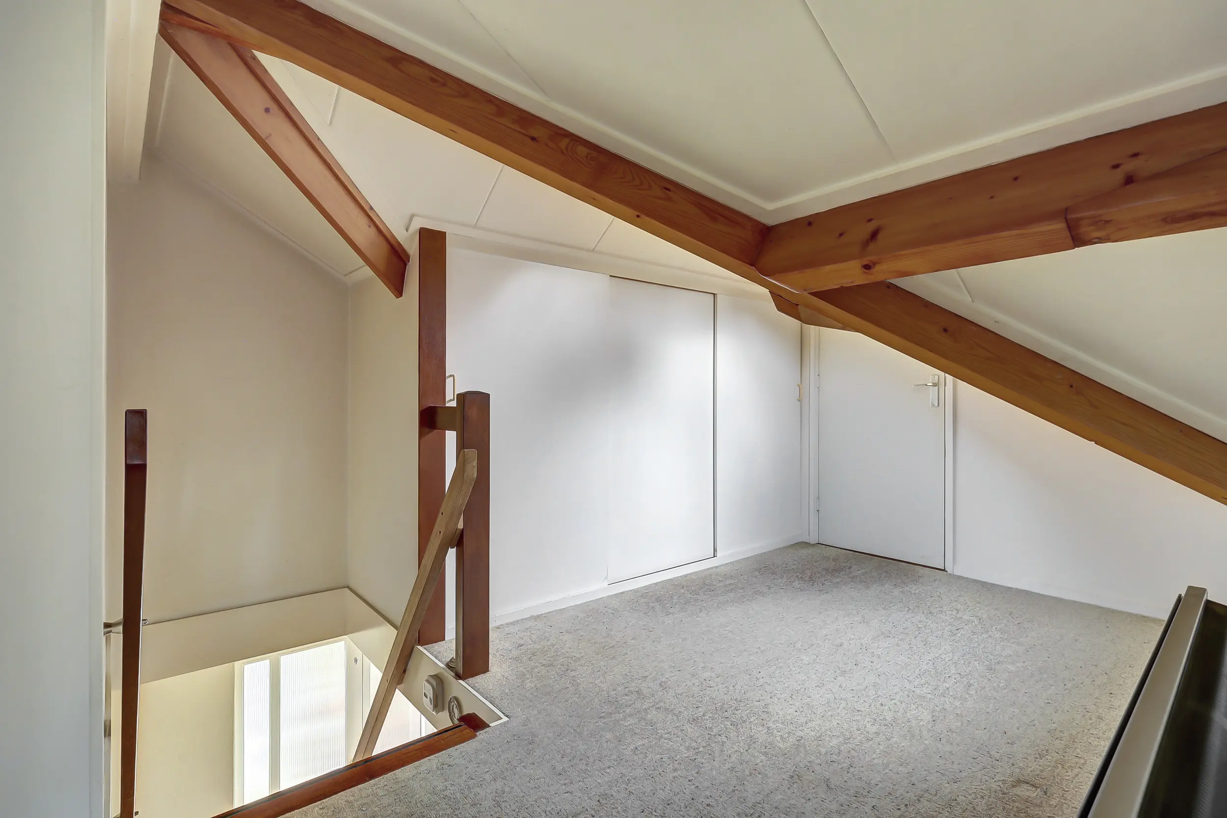Via de vaste trap is de ruime overloop met inbouwkasten. Daarin is de CV-ketel Remeha (2021). Op deze verdieping zijn twee slaapkamers voorzien van dakramen. Ideaal voor logees, werkruimte of hobbykamer.