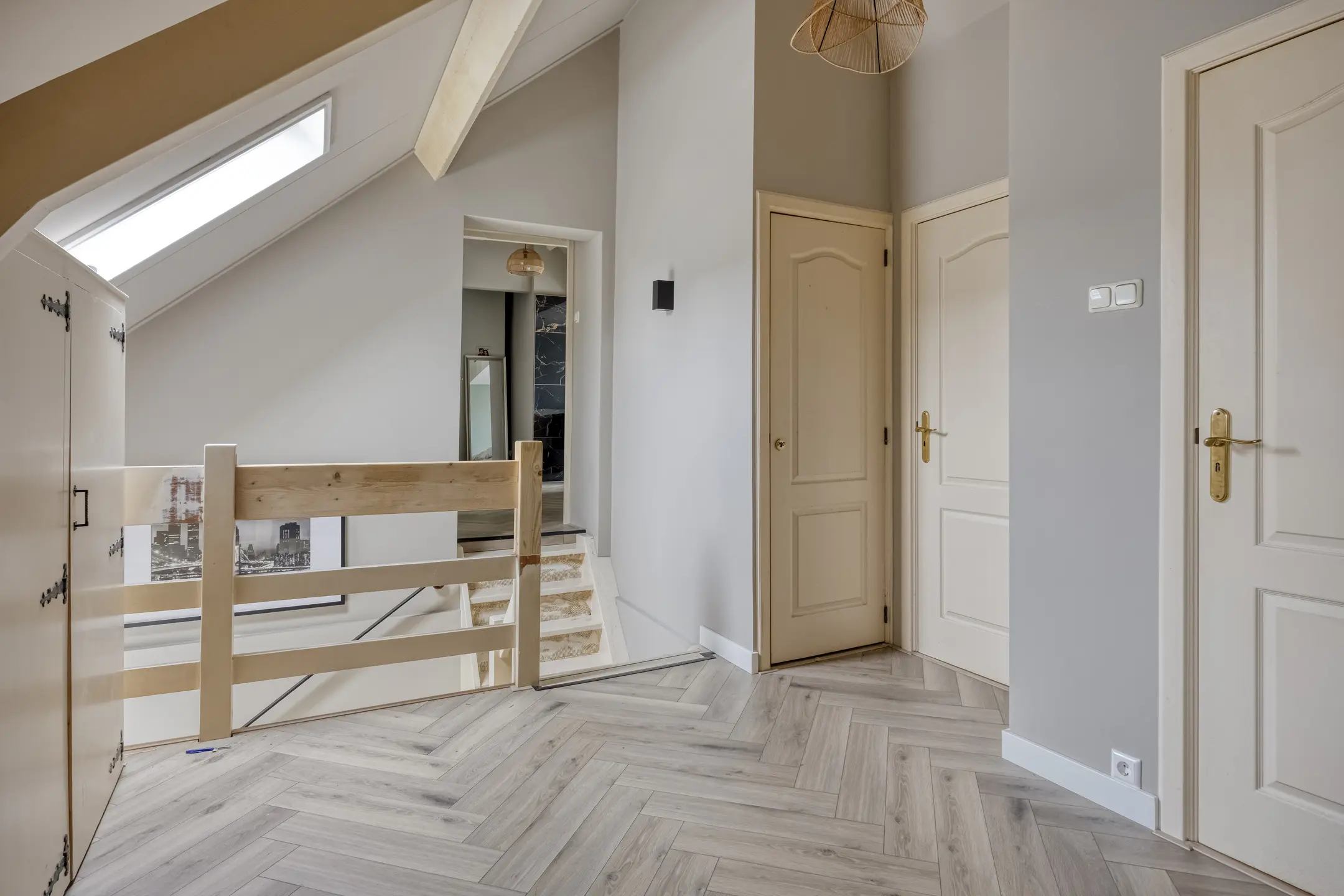 Op de eerste verdieping bevinden zich drie ruime slaapkamers. De hoofdslaapkamer beschikt over een inloopkast en een luxe ensuite badkamer. Vanaf de overloop zijn de overige slaapkamers en de tweede badkamer bereikbaar.