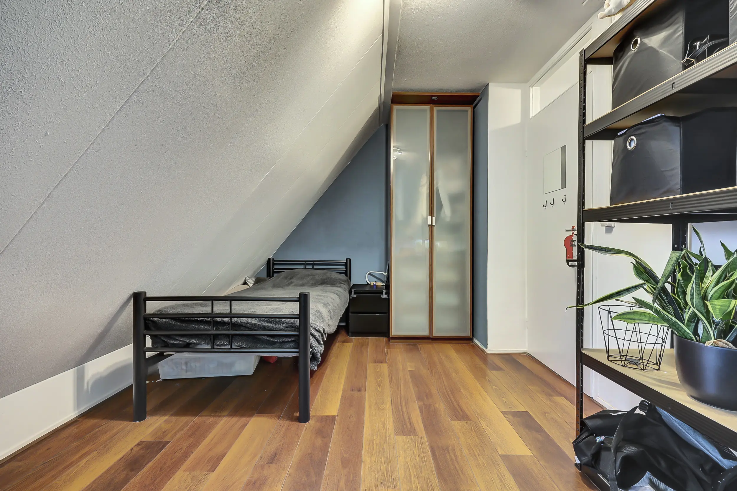 Door de vaste trap kom je op de overloop met toegang tot de twee slaapkamers van deze verdieping. De slaapkamers zijn voorzien van een dakkapel, parketvloer en hebben elk een airco voor warmen en koelen. In de technische ruimte is de opstelplaats voor de CV-ketel (Remeha 2019) en ruimte voor de wasmachine en wasdroger.
