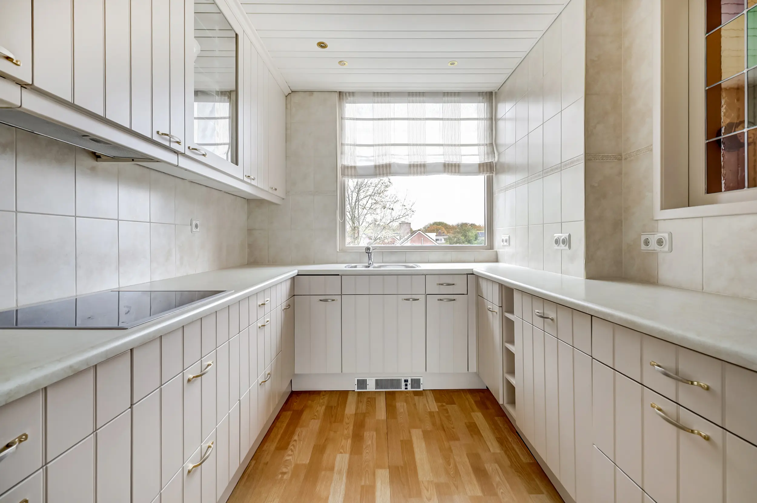 Aan het einde van de galerij, waaraan slechts 2 appartementen zijn, ligt dit hoekappartement. De entree van het appartement is ruim en doet zowel dienst als garderobe als bijkeuken. De wasmachine en droger zijn in het geheel uit zicht geplaatst. Vanuit hier kom je in de woonkamer met zicht op het Haringvliet. Dit uitzicht verveelt nooit! Elk jaargetijde is het anders. Bootjes, flora en fauna voor de deur! De keuken in U-opstelling met inbouwapparatuur is in een neutrale kleurstelling. De open keuken is gelegen aan de voorzijde van het appartement.