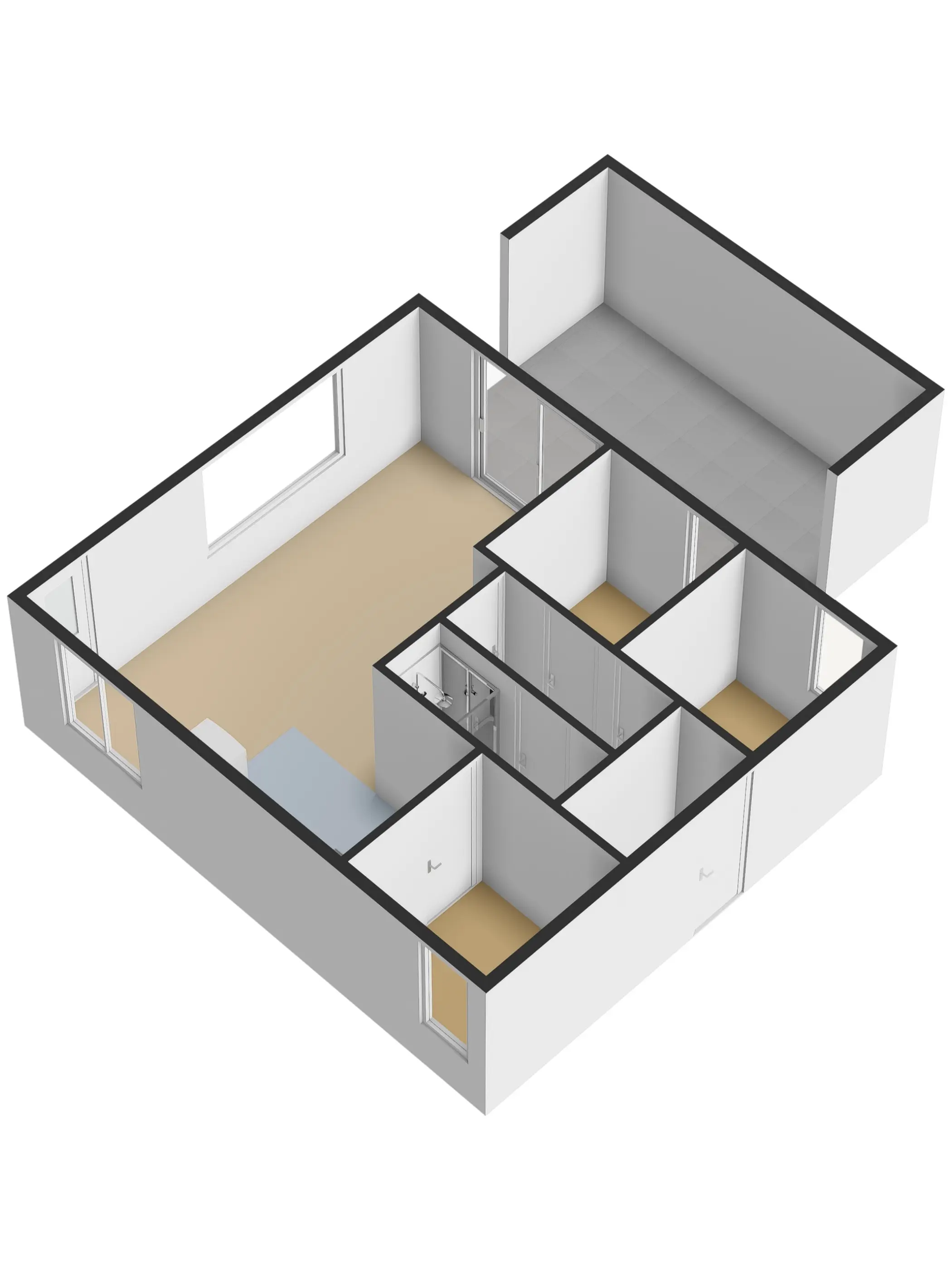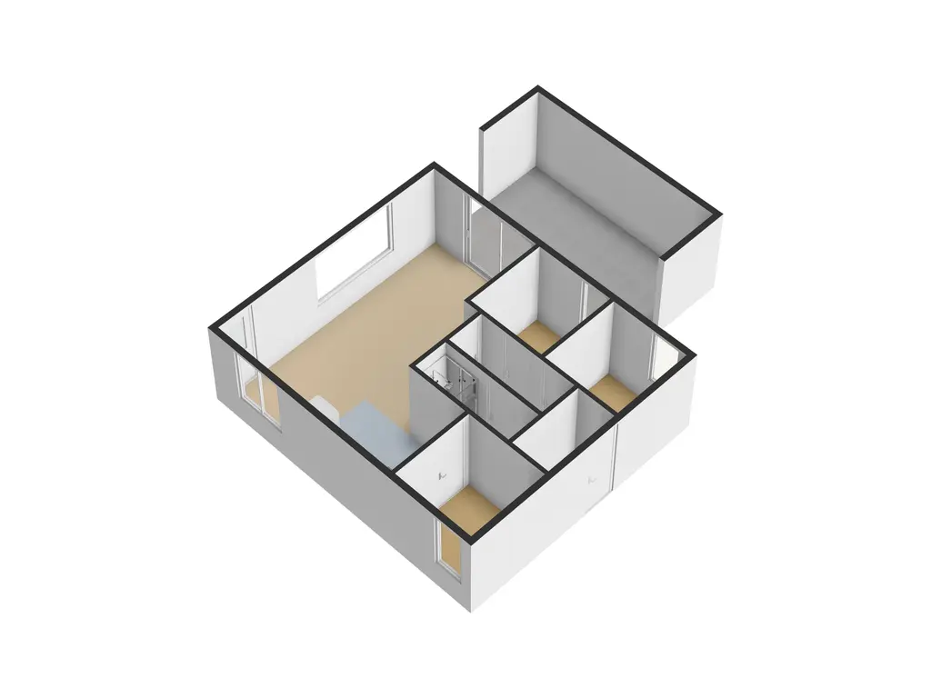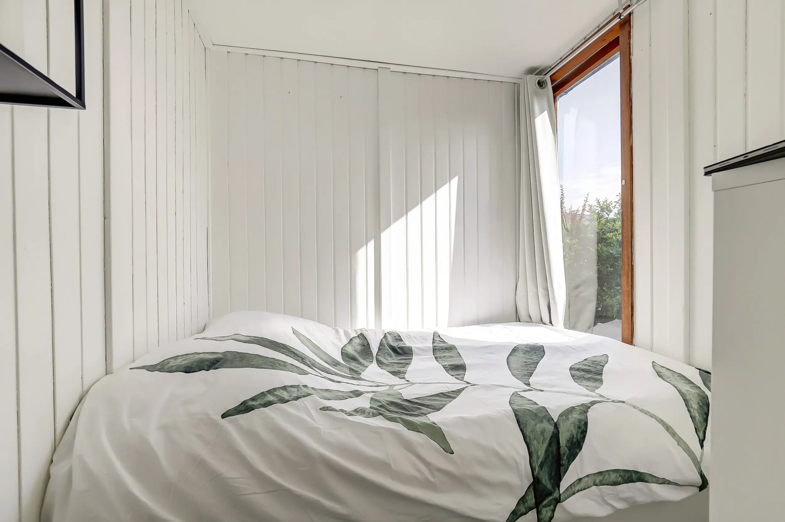 Via de keuken is de derde slaapkamer met vast 2-persoonsbed bereikbaar. De ruime veranda grenst aan de woonkamer.