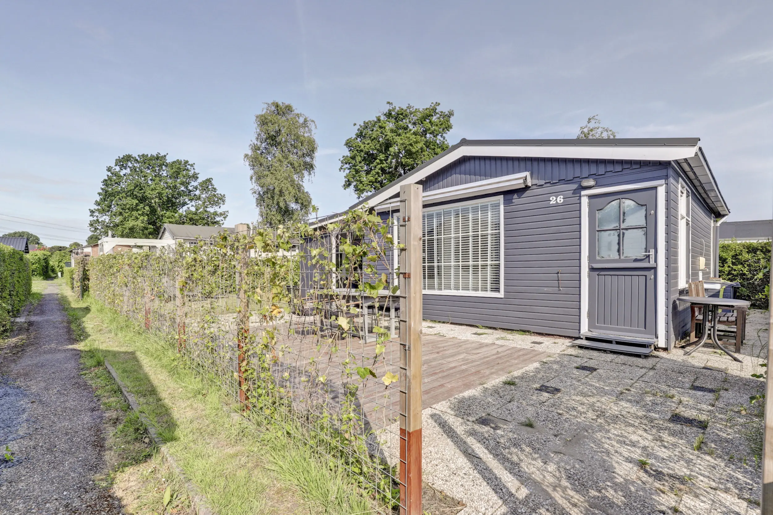 Aan een rustig pad gelegen recreatiewoning met drie slaapkamers en een grote veranda op een ruime plaats van circa 220 m2.