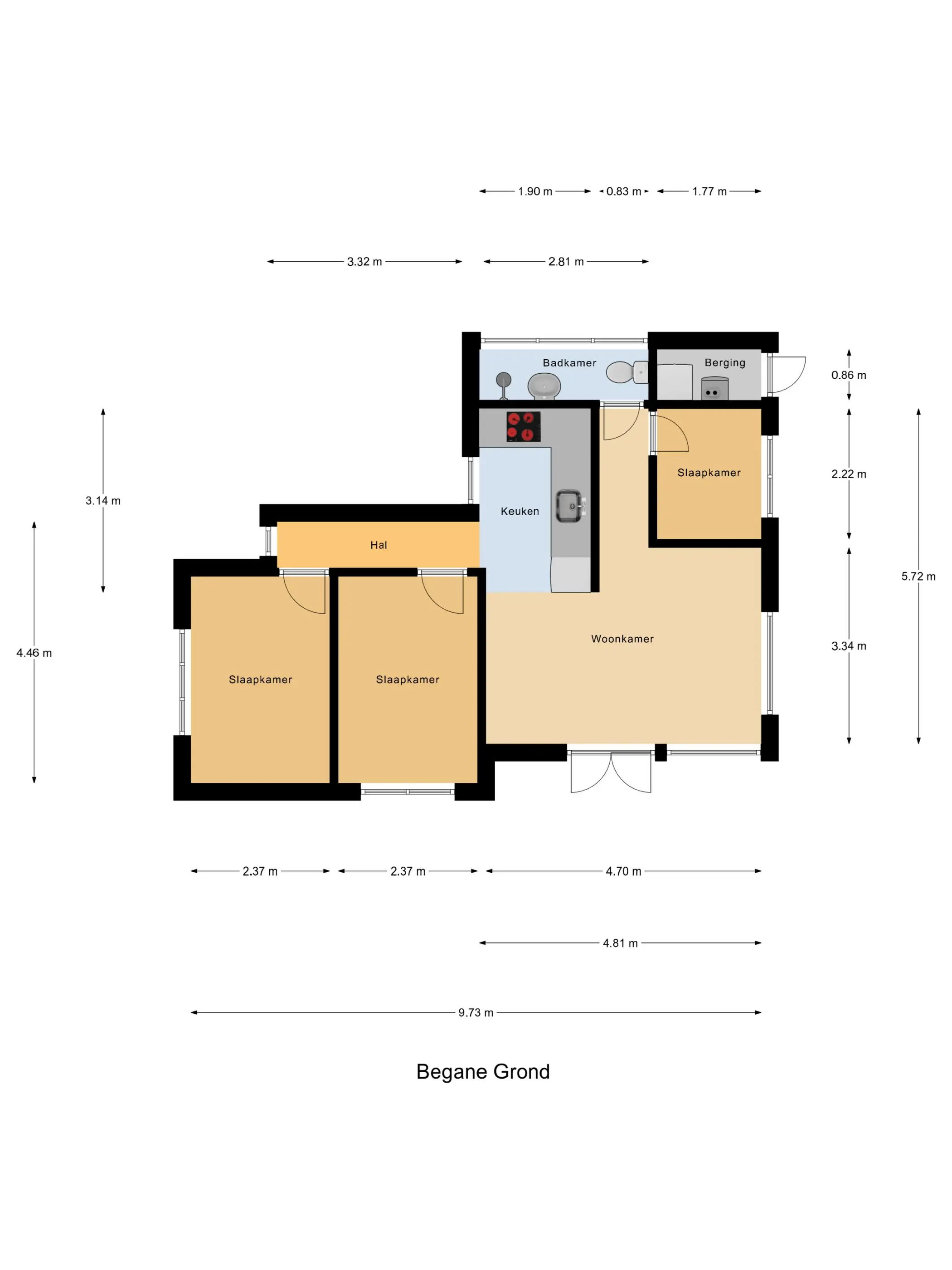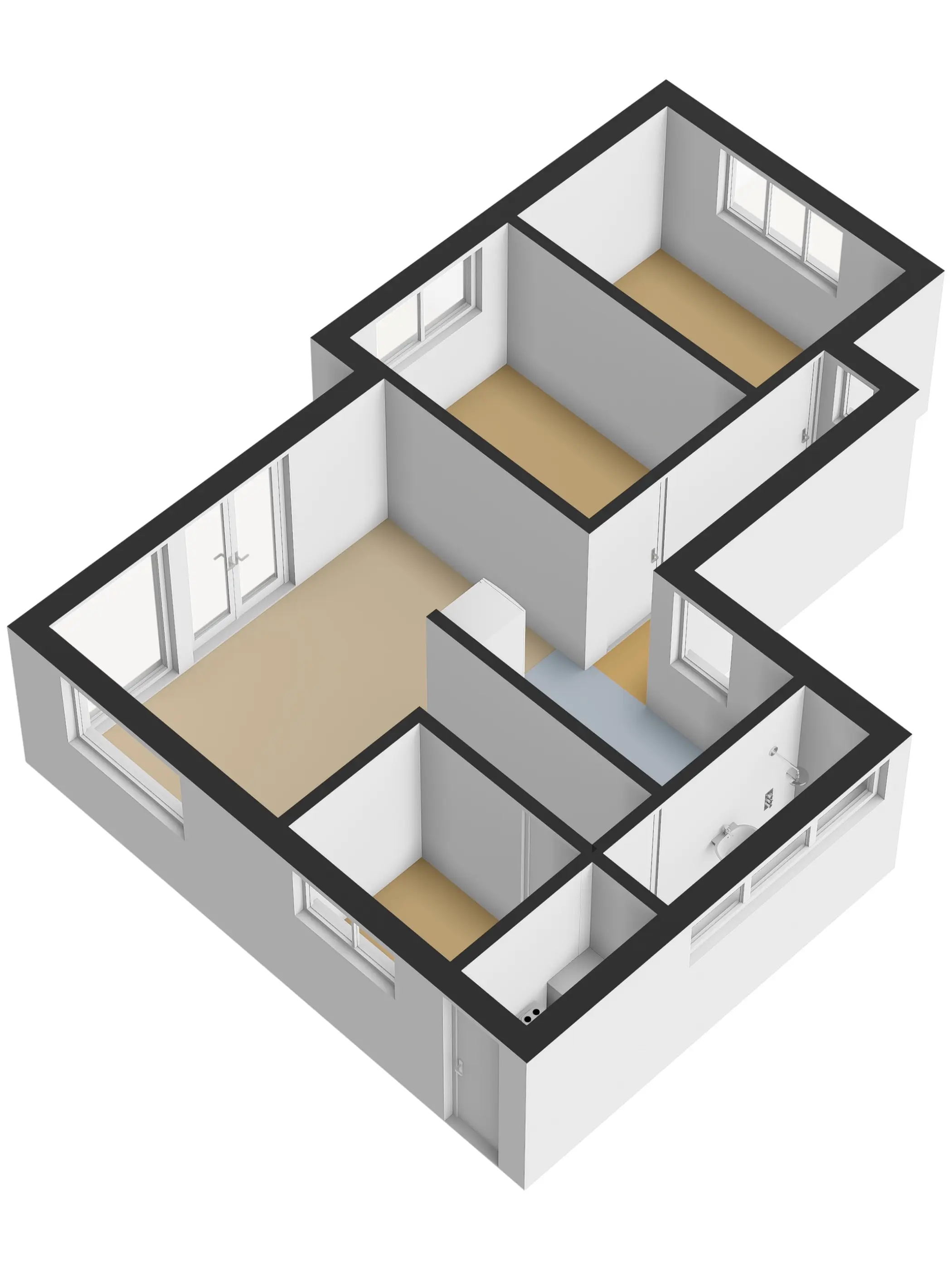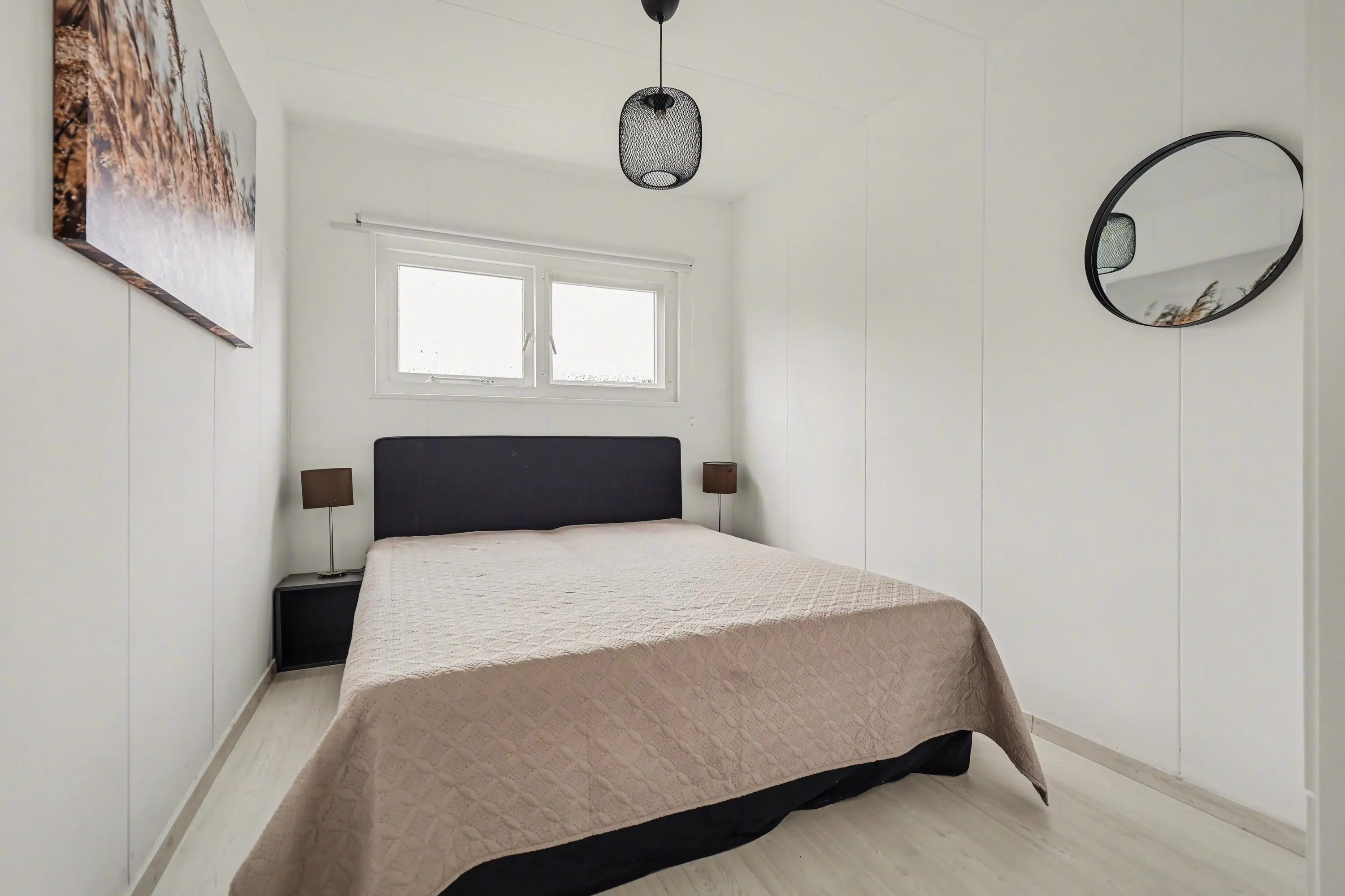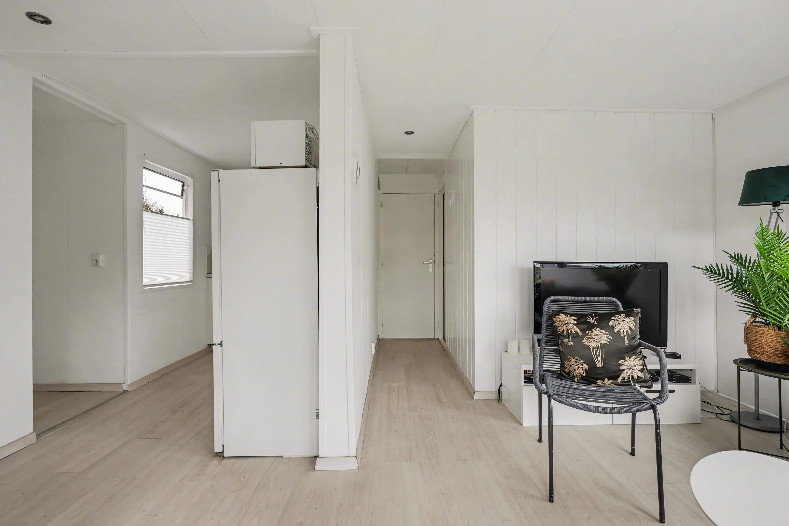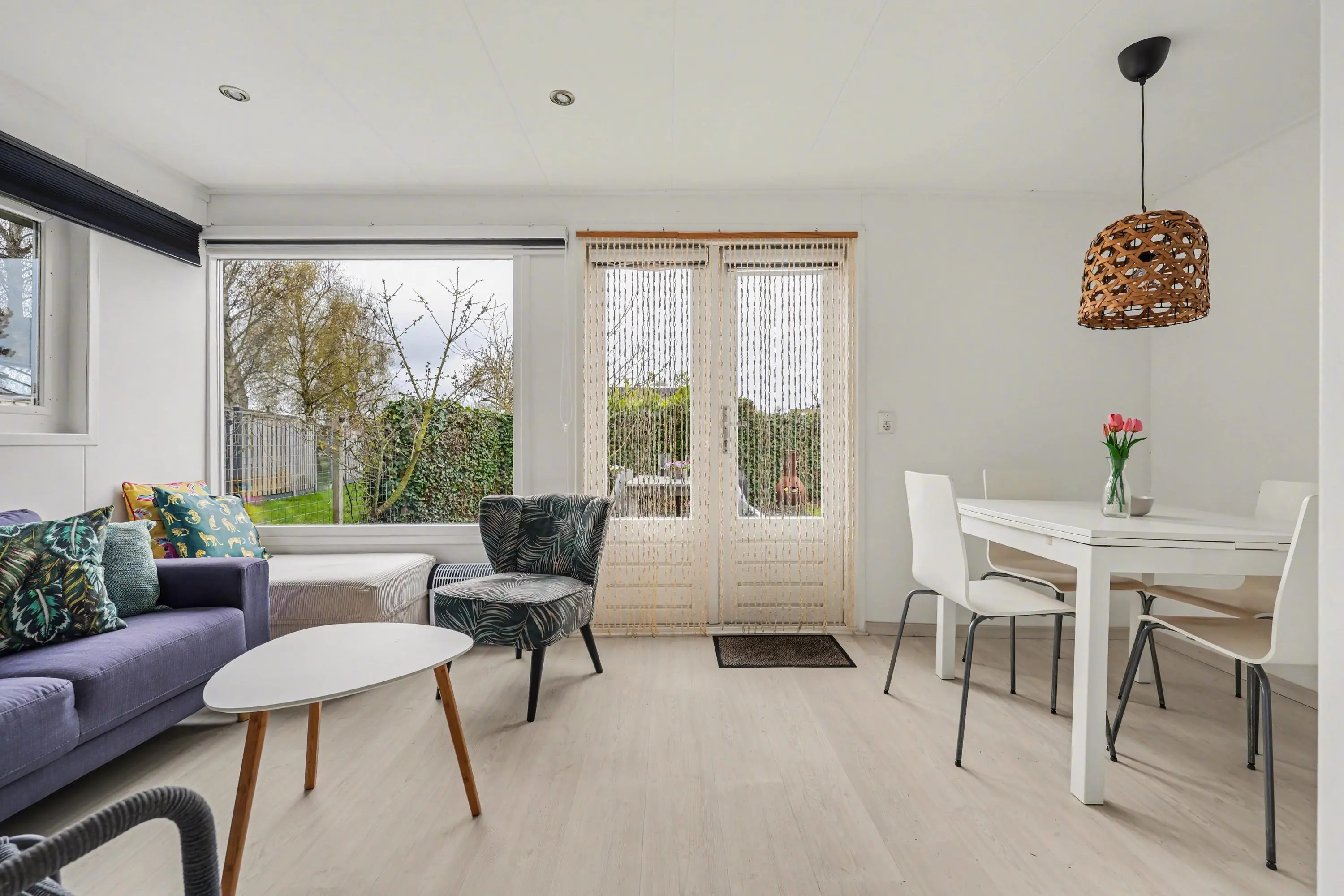 De dubbele tuindeuren geven je toegang tot de woonkamer van de woning. Door de verschillende ramen en de frisse inrichting maakt dit een fijne lichte ruimte. De open keuken in een hoekopstelling van 2019 is voorzien van (inbouw-) apparatuur zoals de inductiekookplaat, oven, afzuigkap, koelkast en vriezer. De woning heeft drie slaapkamers. Twee daarvan zijn ingericht met een 2-persoonsbed en kasten. De derde slaapkamer heeft een stapelbed en een kast.