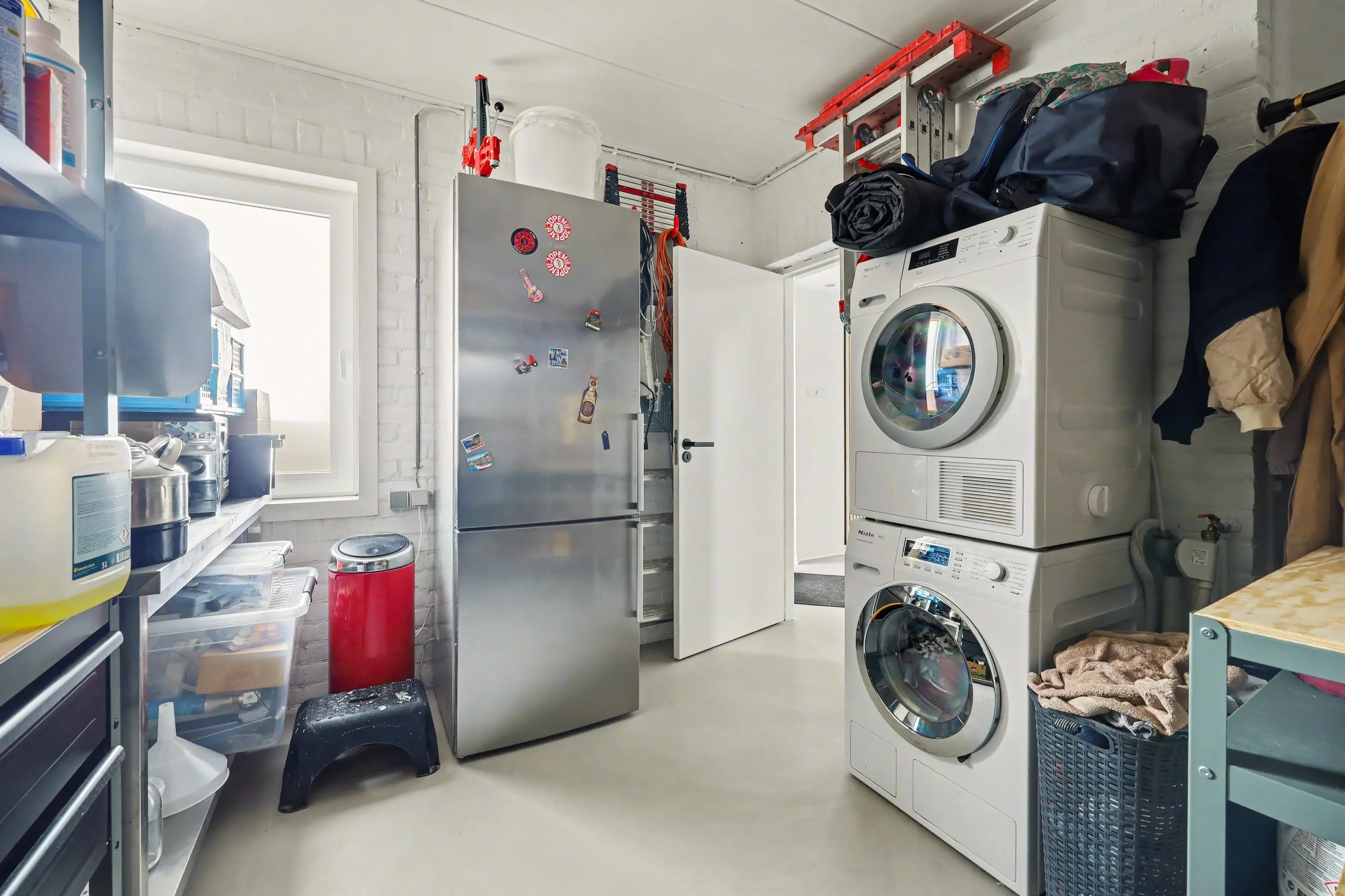 De garage heeft een elektrische deur, is voorzien van een strijkvloer en er is een opstelplaats voor de wasmachine en -droger.