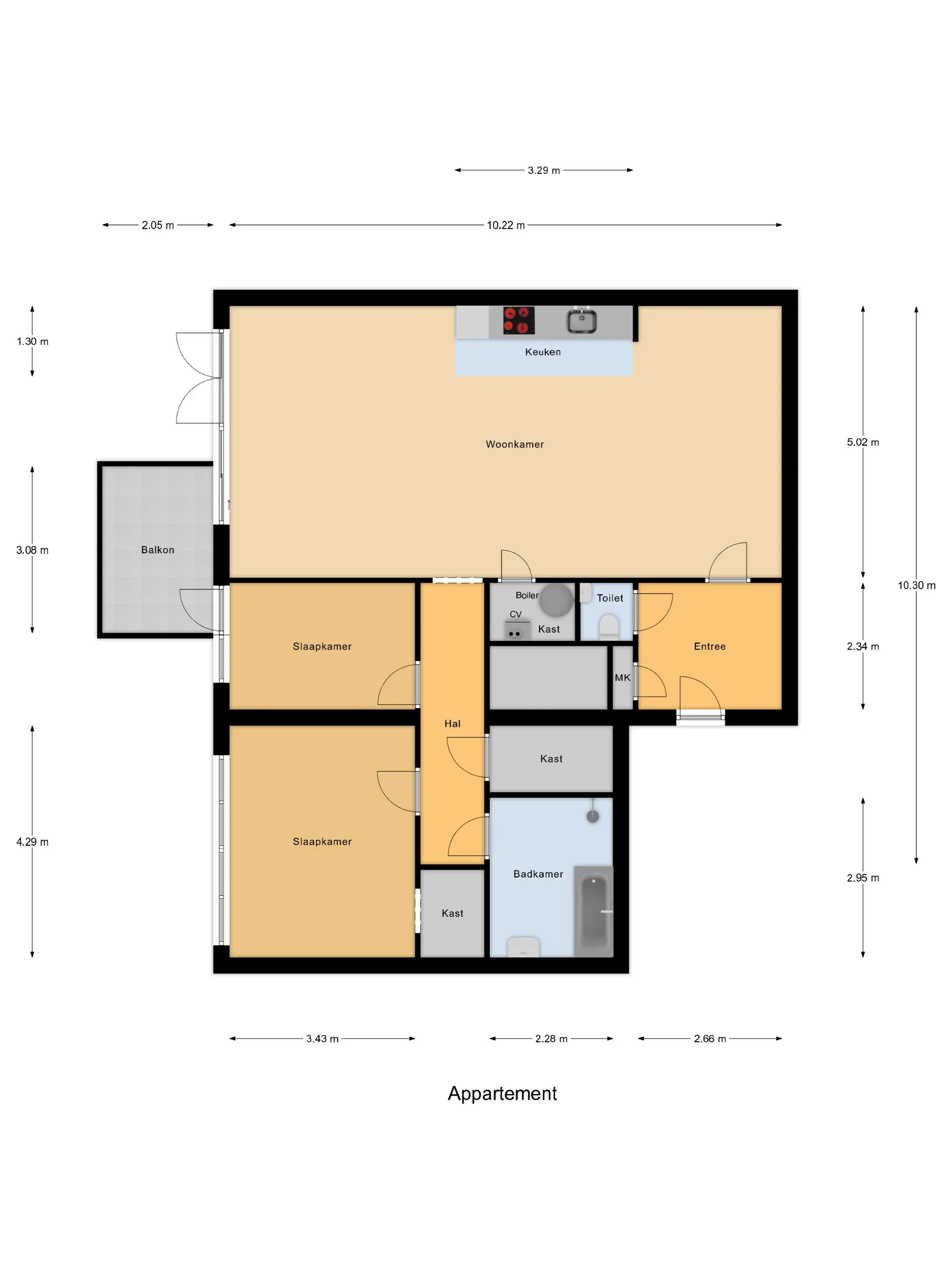 Het gehele appartement is uitgevoerd met vloerverwarming en -koeling, de huur van de warmtepomp en boiler is circa 99,00 per maand.