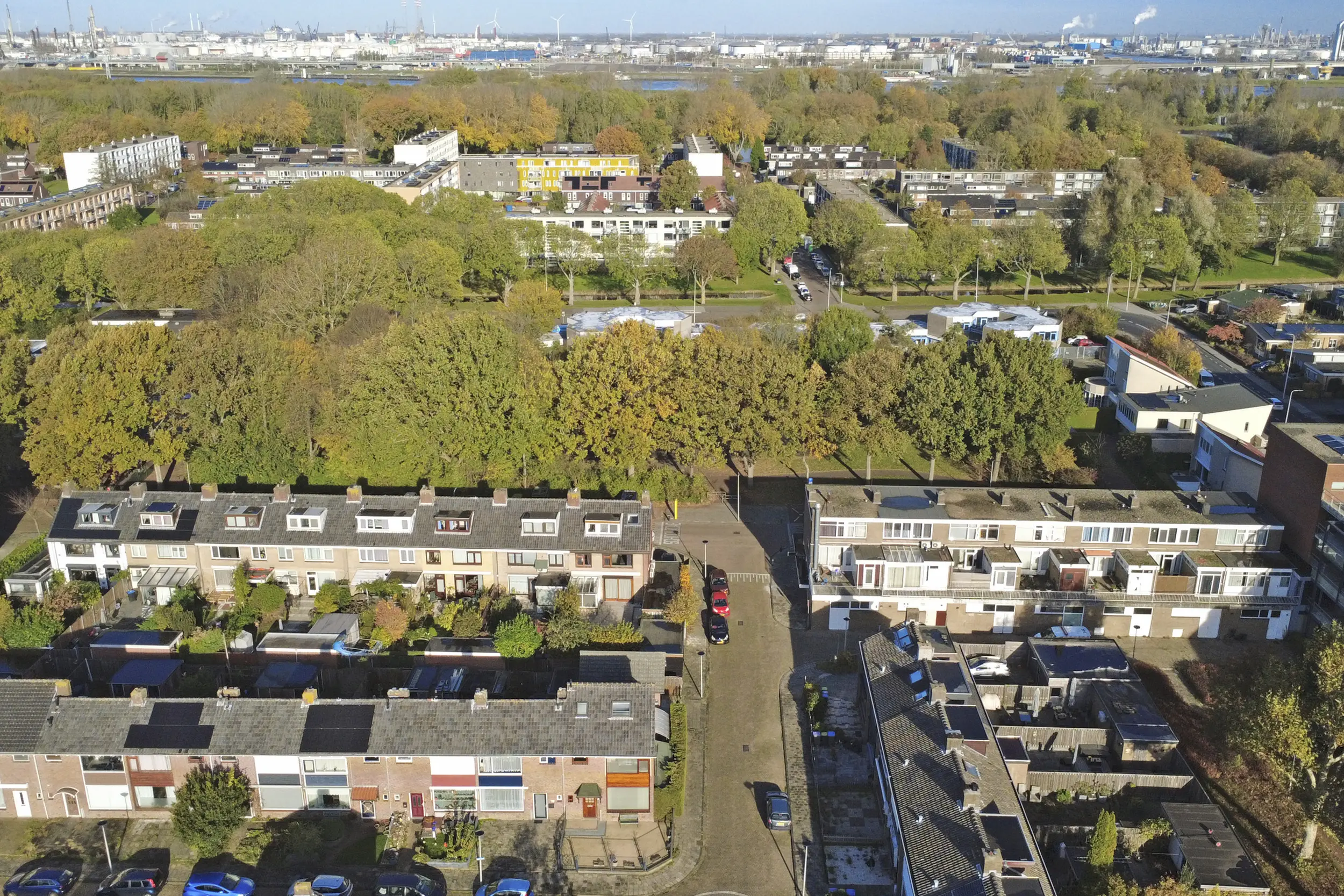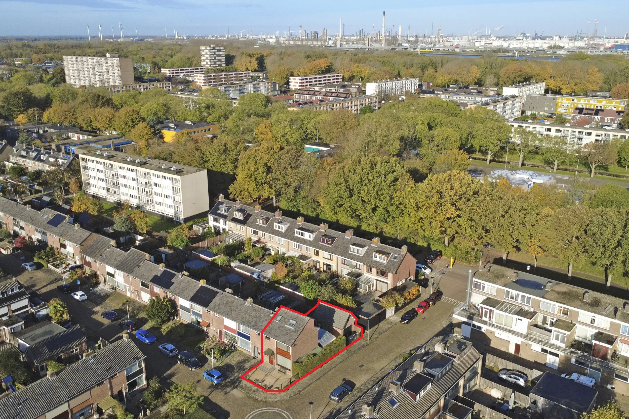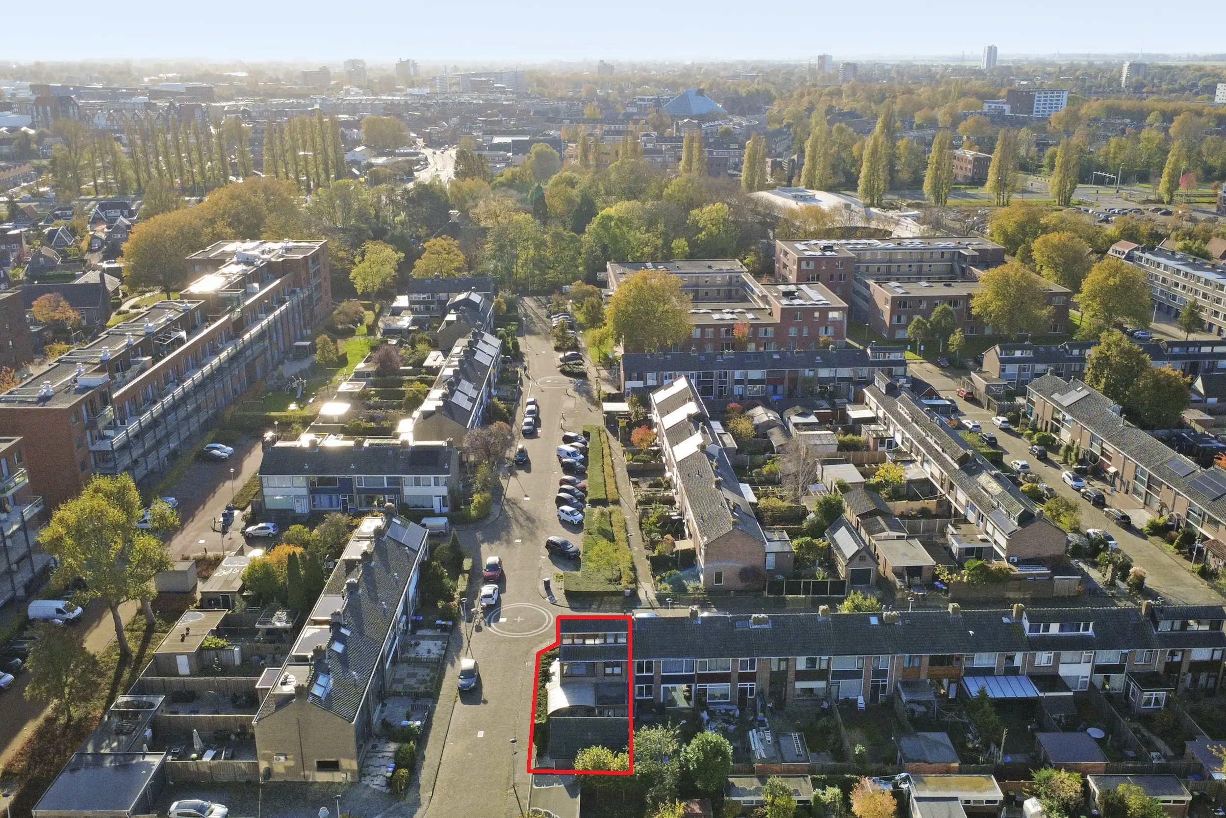 - Hoekwoning met voor-, zij-, en achtertuin.