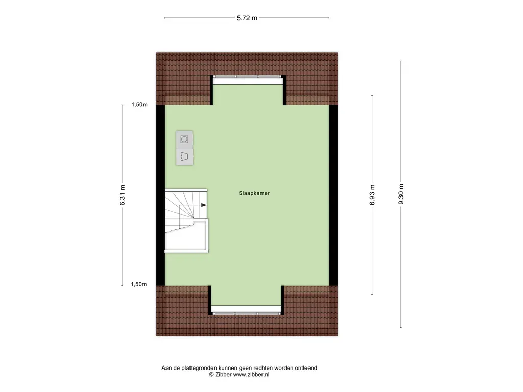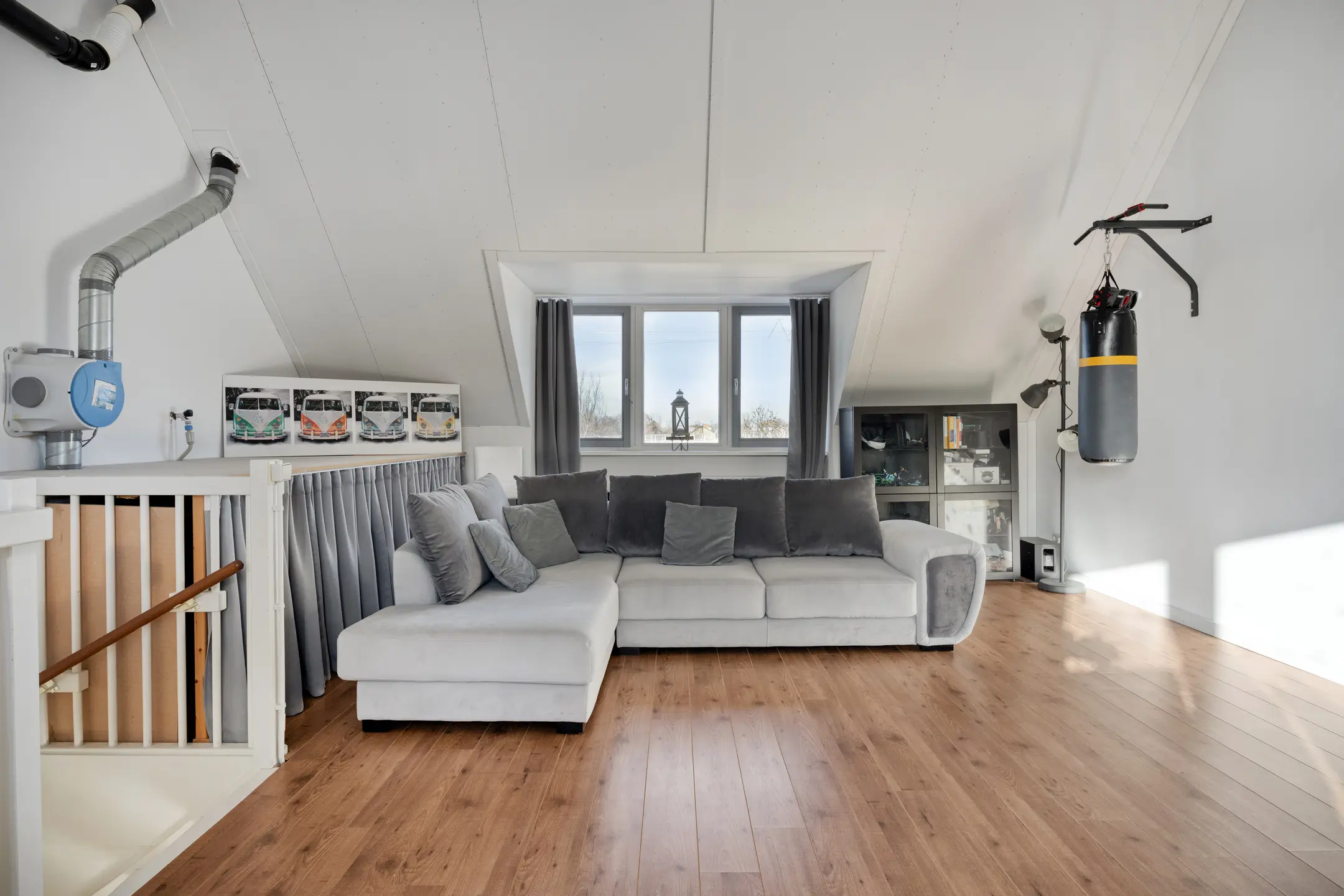 middels vaste open trap bereikbare grote open zolderruimte afm. ca. 6.30 x 5.75 met hoge nok van ca. 4.55 m en aan de voor- en achterzijde een dakkapel. Het is mogelijk om van deze ruimte 2 royale slaapkamers te maken. Aan beide zijden is er bergruimte gecreëerd achter de knieschotten. Op deze verdieping zijn de aansluitingen voor de wasmachine en droger aanwezig alsmede de mechanische ventilatie unit.
