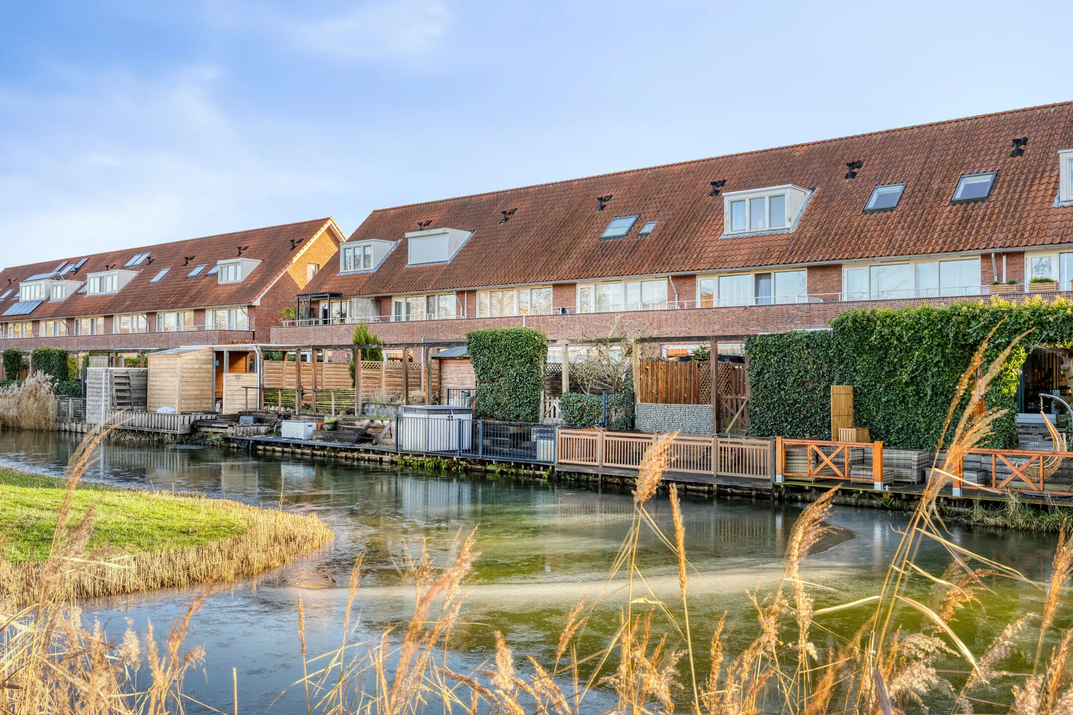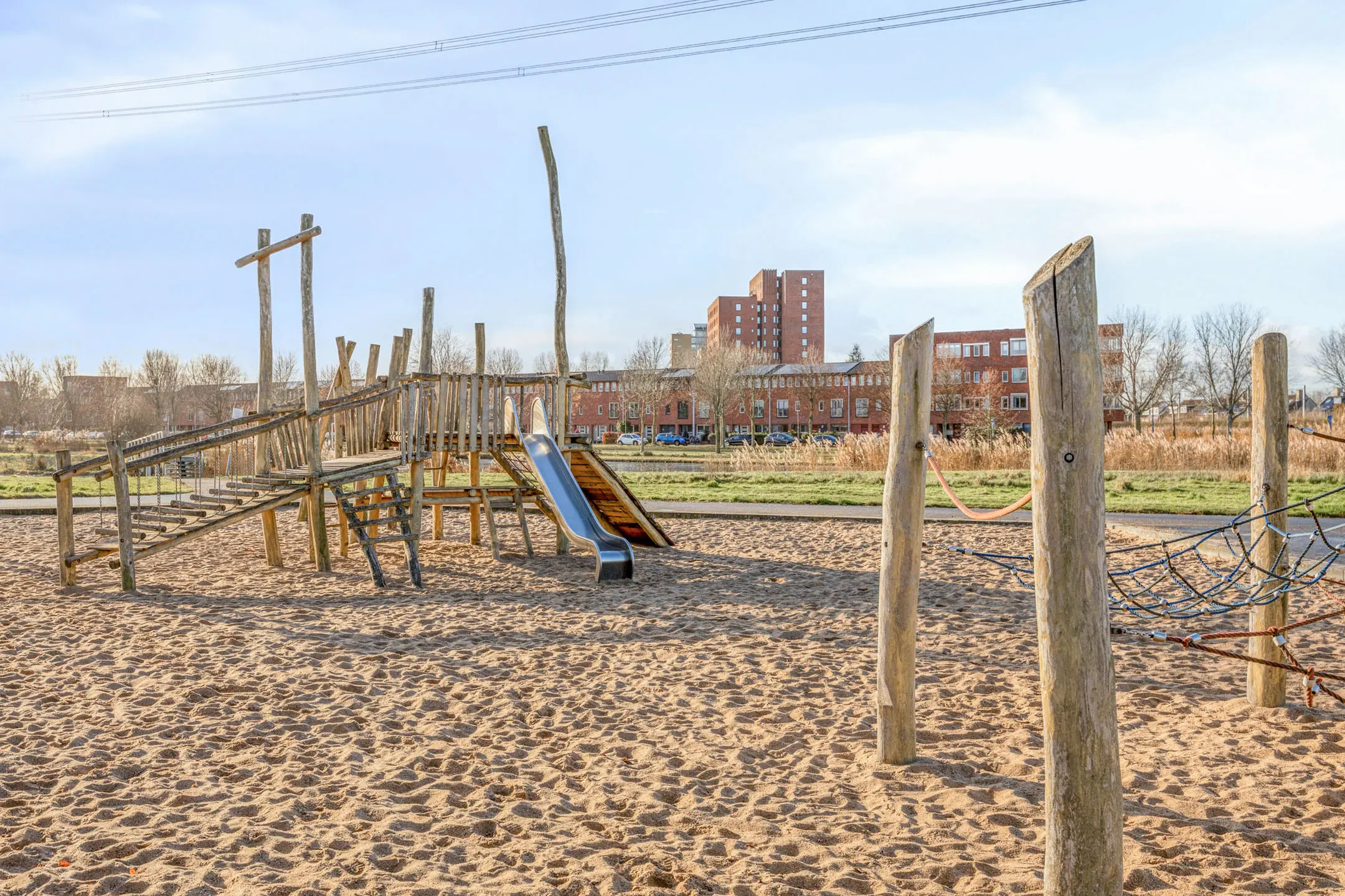aan water, aan rustige weg, in woonwijk, open ligging