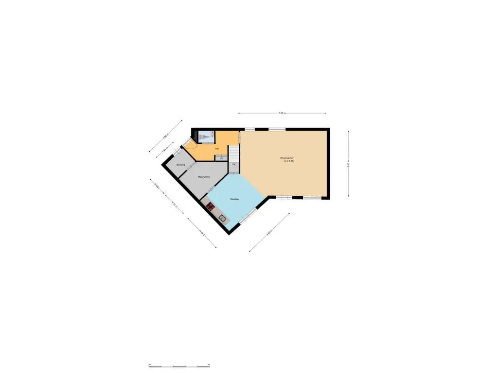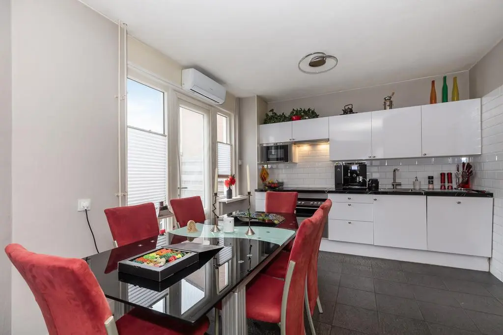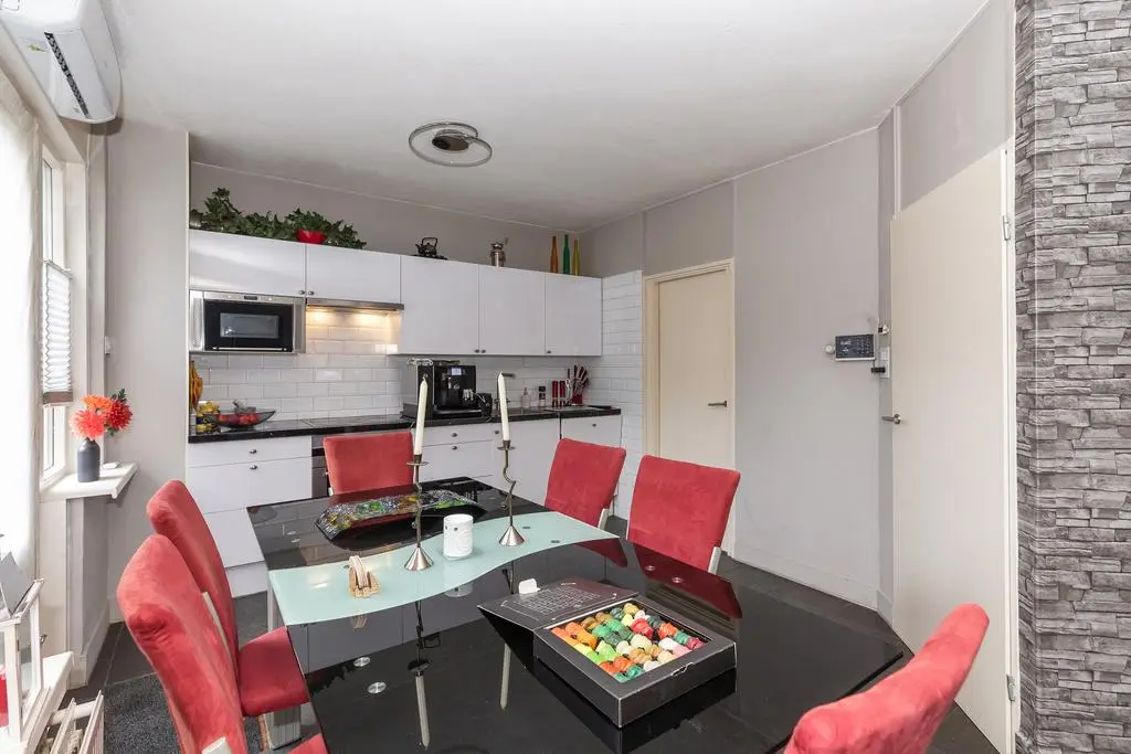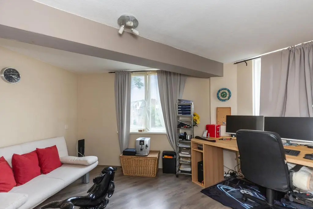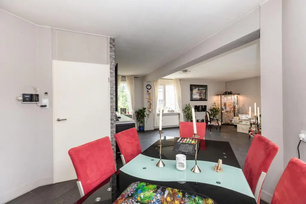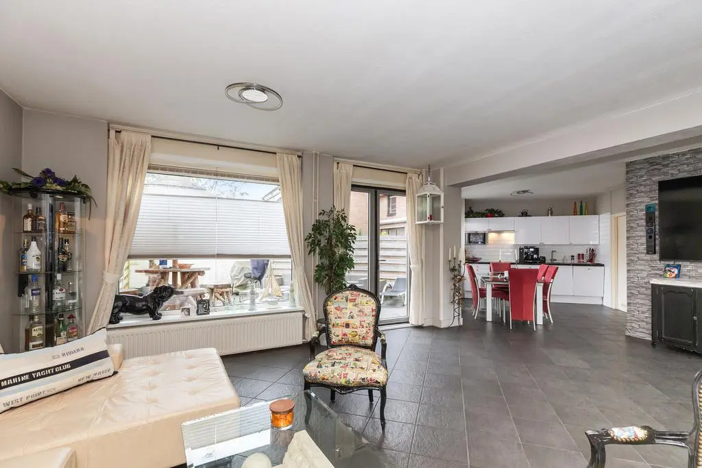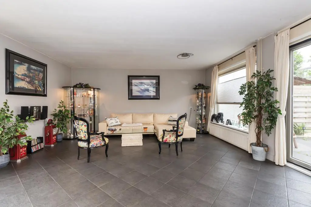 Wanneer u de woning binnenkomt treft u een ruime woonkamer met veel daglicht aan. Middels de woonkamer krijgt u toegang tot de tuin middels openslaande deuren. De open keuken heeft een aanrecht in wandopstelling en is tevens voorzien van diverse inbouwapparatuur.