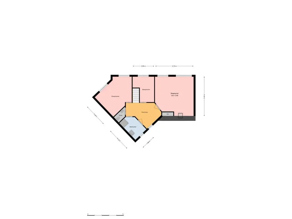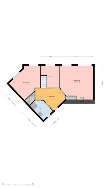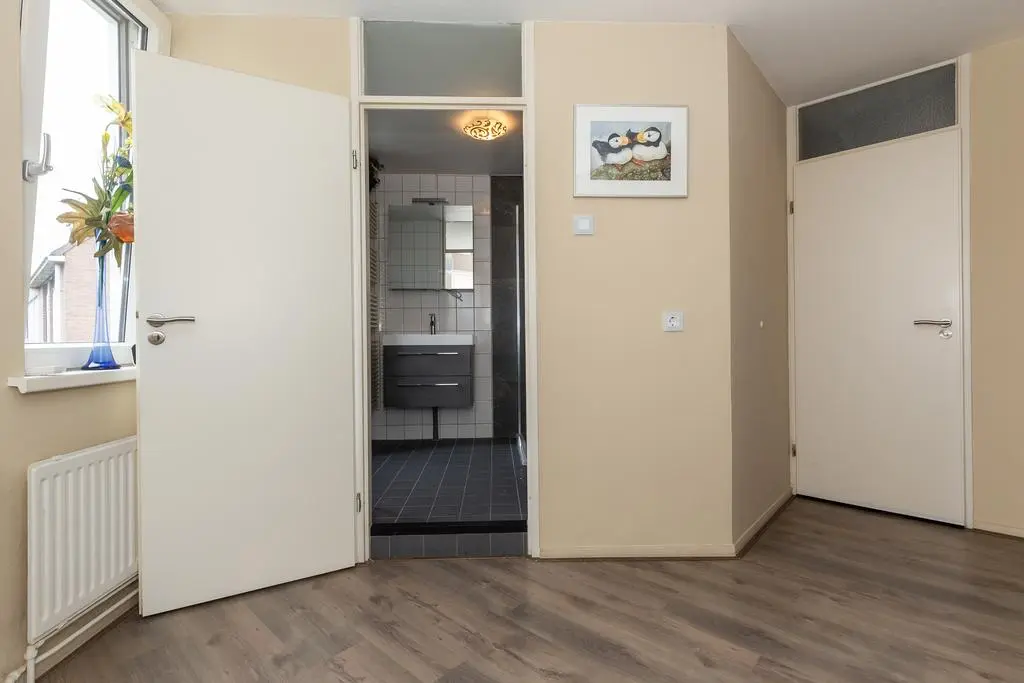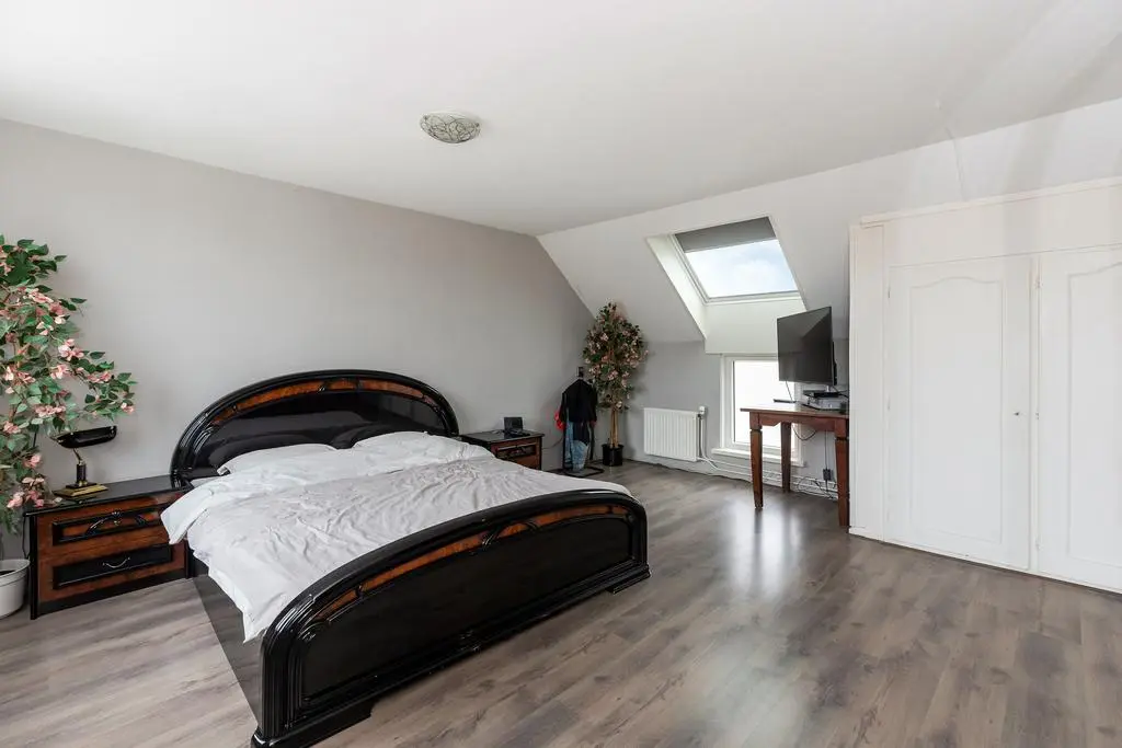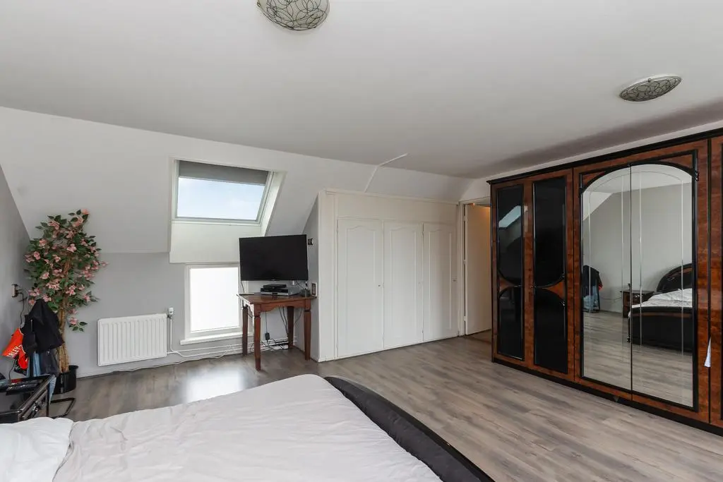 Overloop met airco unit en toegang tot de vertrekken. De hoofdslaapkamer is een royale kamer en is voorzien van een vaste kast en een dakraam. Slaapkamer II en III zijn eveneens kamers van een goed formaat. Op de overloop en in de slaapkamers ligt laminaat. De geheel betegelde badkamer is uitgerust met een inloopdouche, design radiator, wastafelmeubel en een spiegelkast. In de badkamer is een raam aanwezig zodat er op een natuurlijke manier geventileerd kan worden. Separate geheel betegelde toiletruimte met een fonteintje.