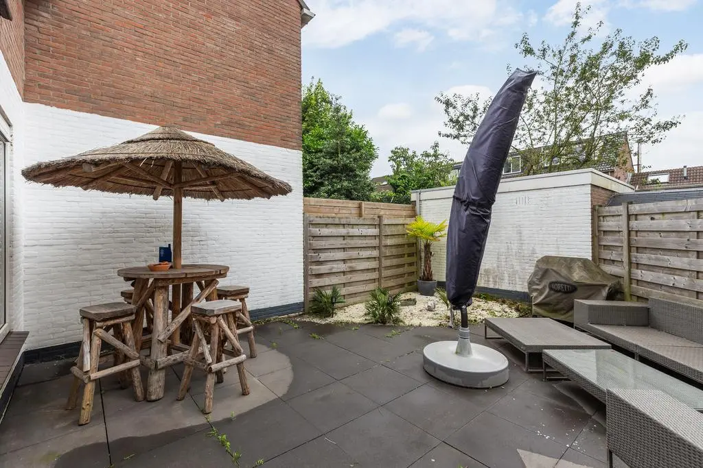 De onderhoudsvriendelijke tuin is gelegen op het zonnige zuid westen.