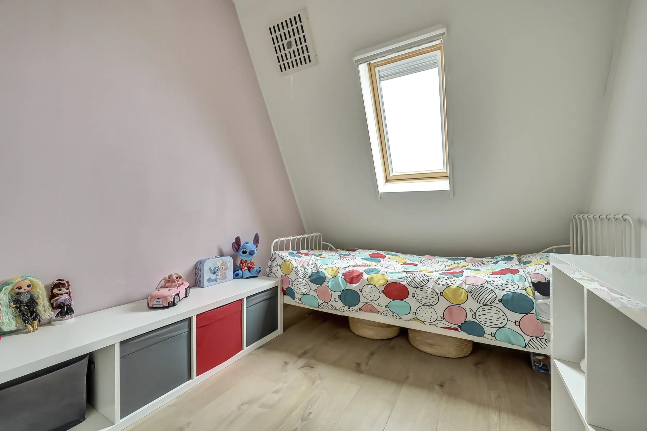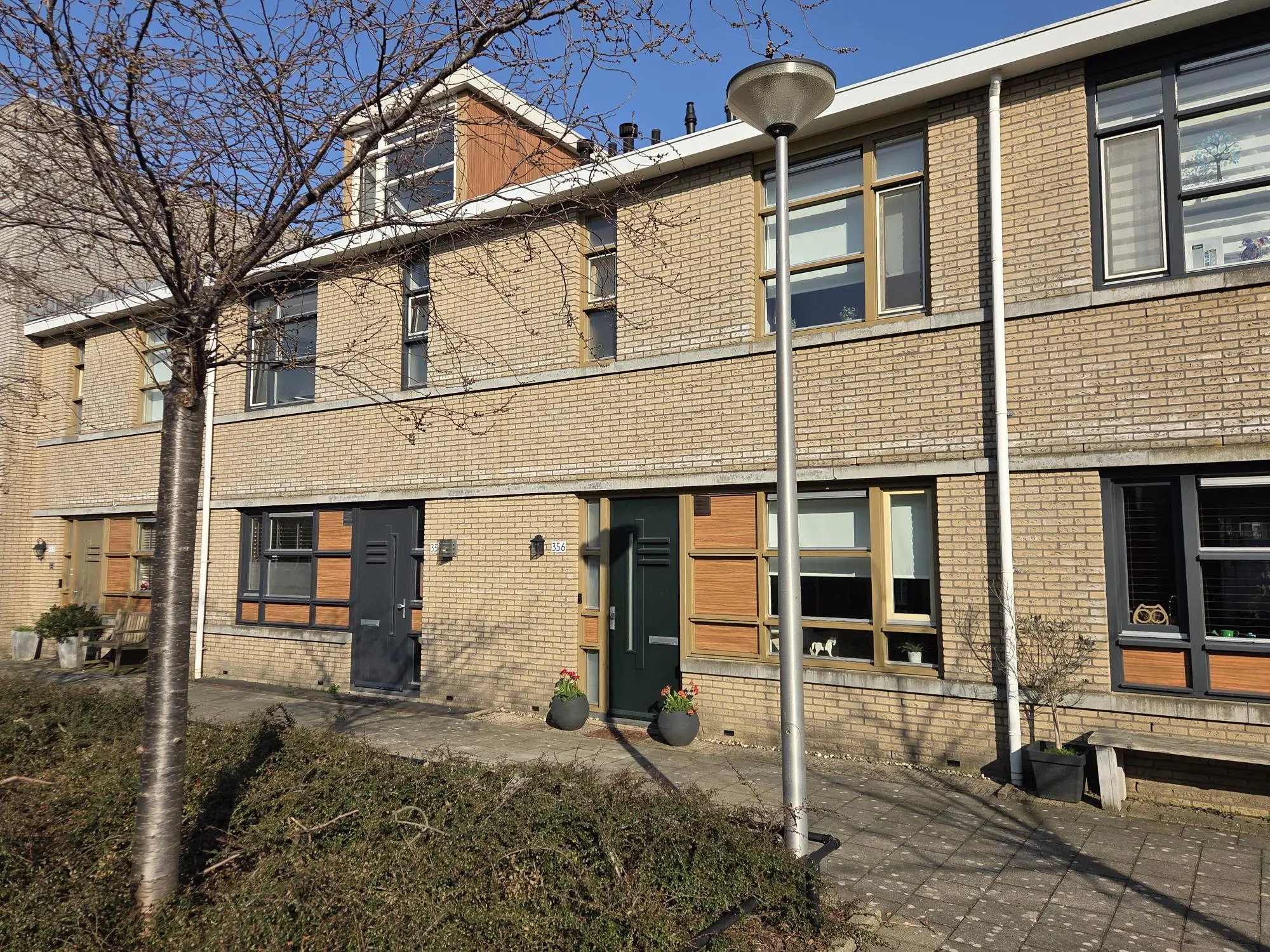 Aan de voorzijde ligt de woning aan een rustig voetpad. Basisscholen, het metrostation, winkels, grote en kleine speeltuinen en het park: alles ligt op loopafstand!
