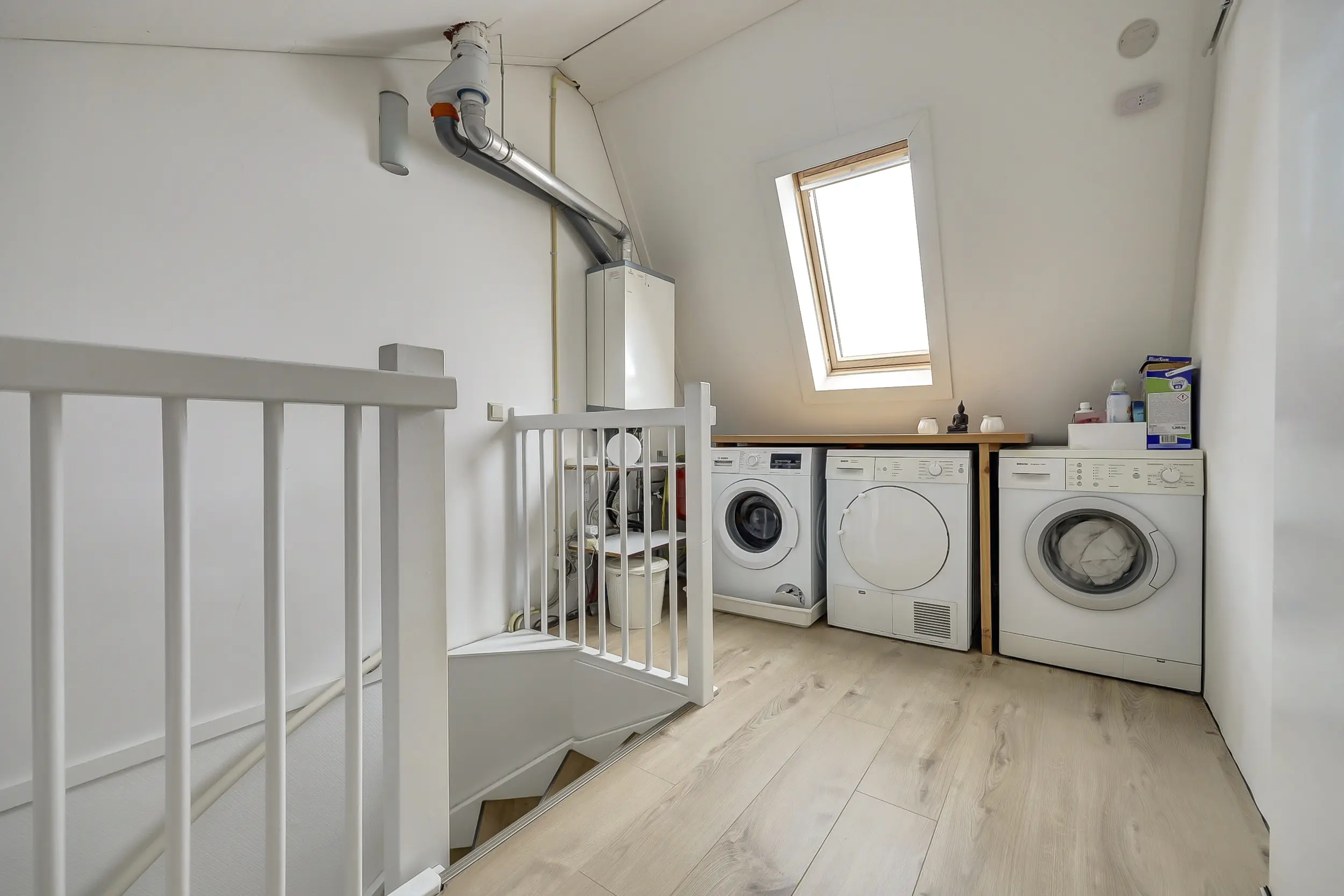Overloop met CV en wasmachineopstelling en de 4e slaapkamer.