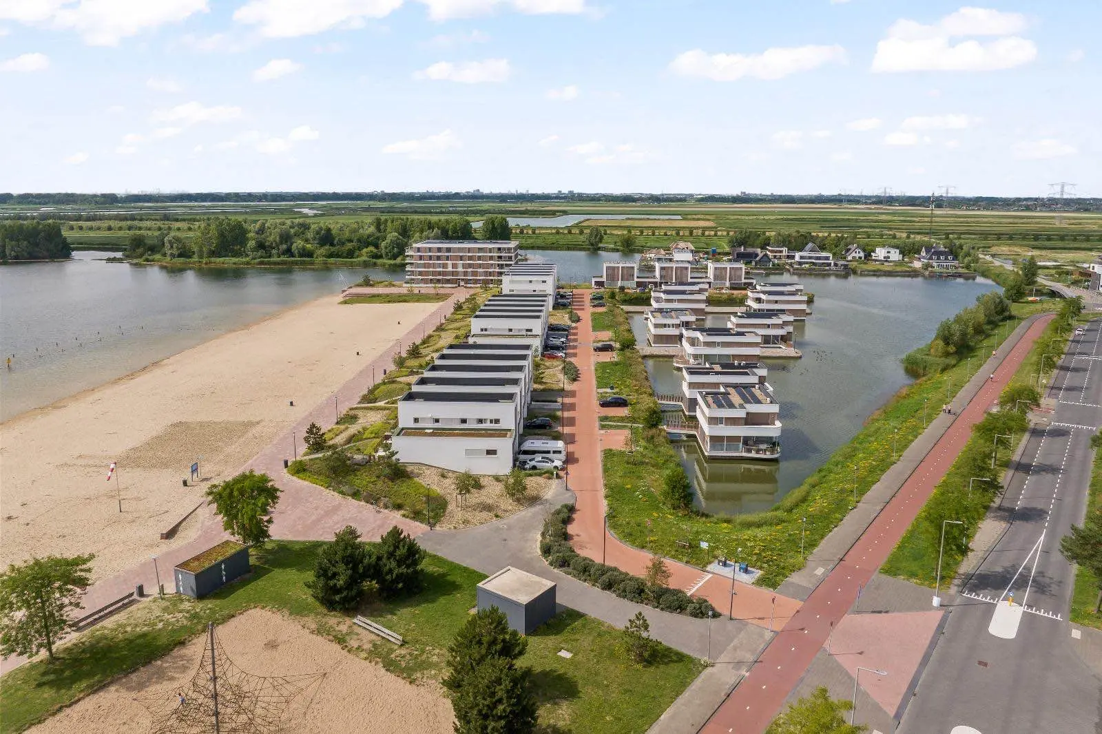Stap je voordeur uit en binnen één minuut sta je met je voeten in het zand of aan de waterlijn. De Zevenhuizerplas nodigt uit tot lange wandelingen, een frisse duik, suppen bij zonsondergang of een ontspannen middag zeilen.