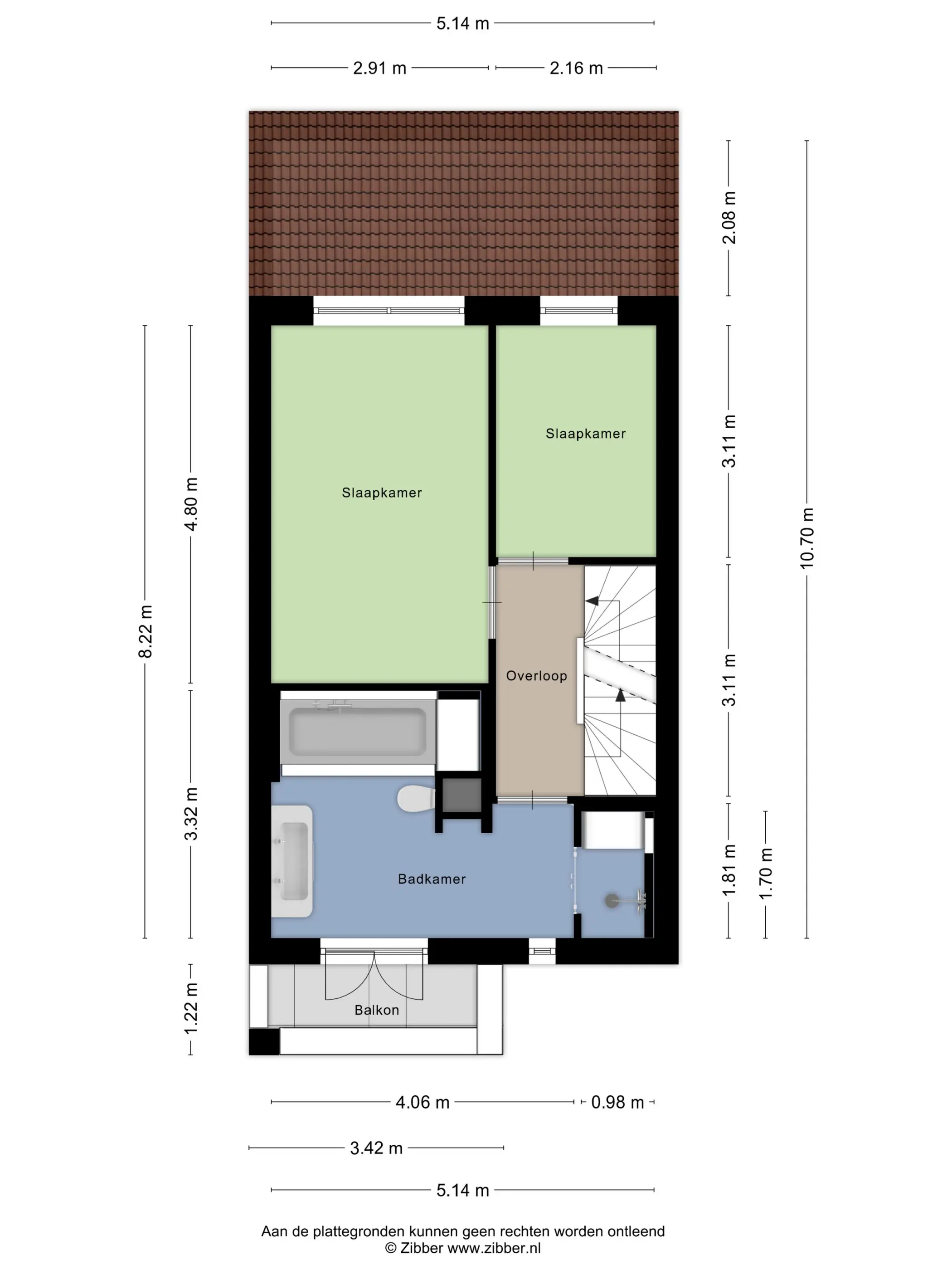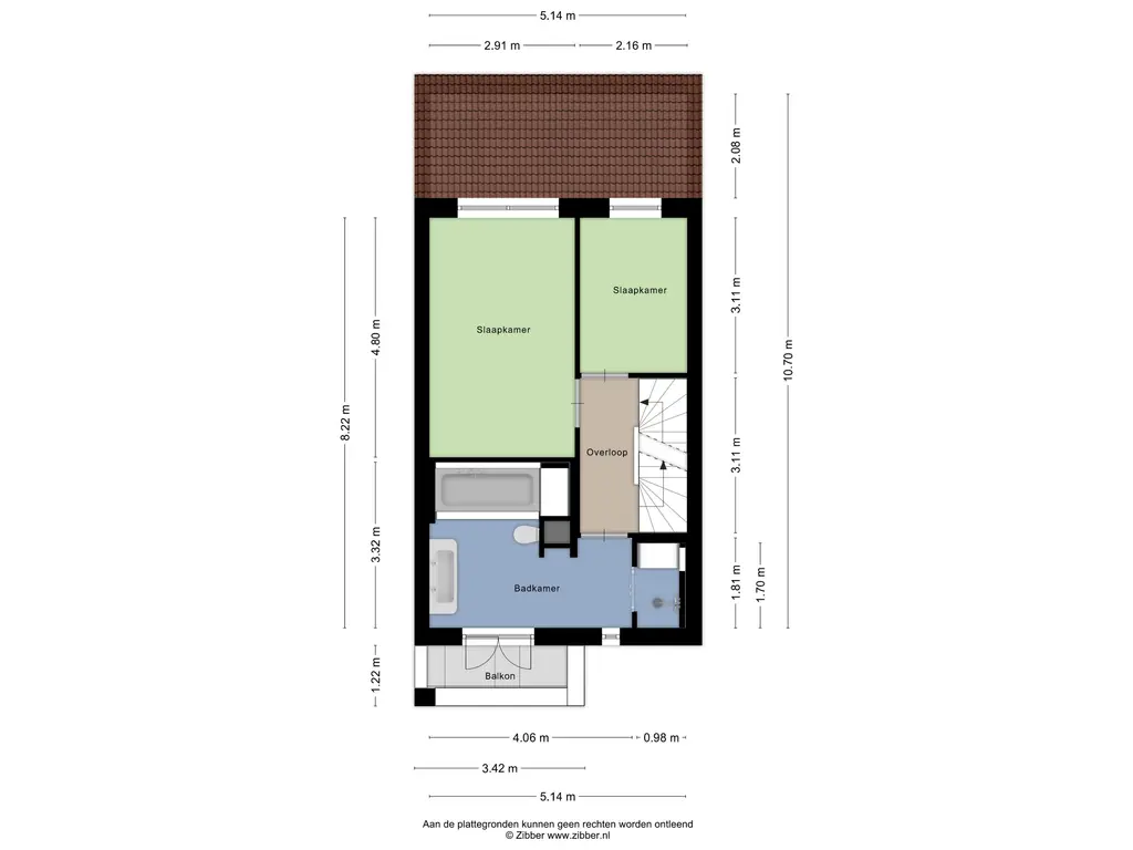 De overloop geeft toegang tot twee ruime slaapkamers en de badkamer. De slaapkamers zijn gelegen aan de achterzijde van de woning.
