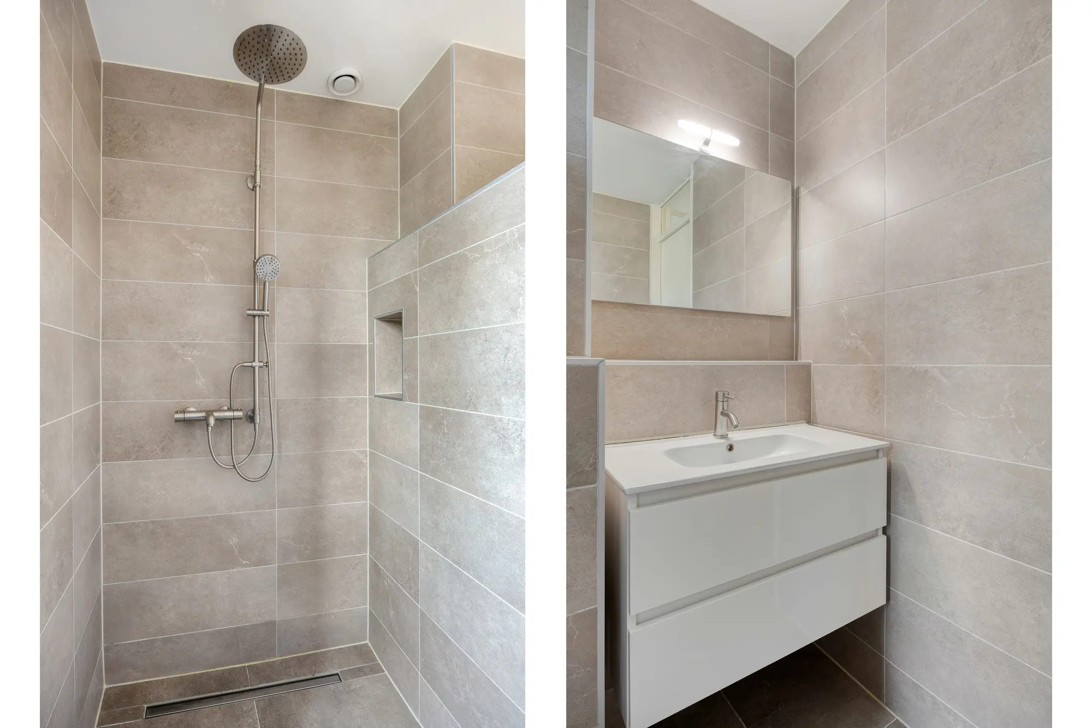 - Moderne badkamer met toilet, wastafelmeubel en inloopdouche