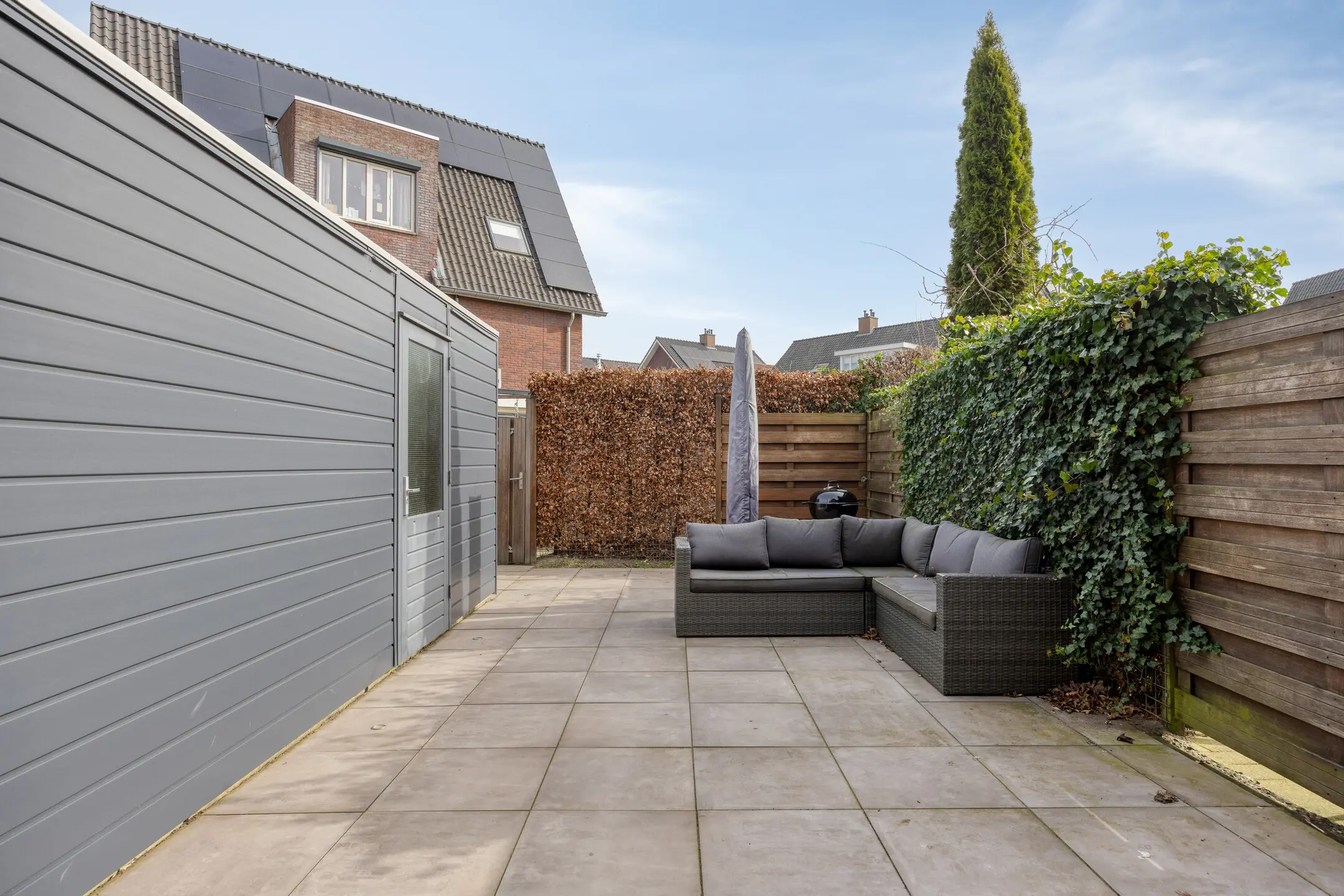 De buitenruimtes van dit pand zijn een ware traktatie. Voor-en achtertuin bieden een keurig aangelegde persoonlijke oase, ideaal om te genieten van het buitenleven. De achtertuin heeft een oppervlakte van 65 m2 en heeft directe toegang tot de achterom. Daarnaast is er een houten schuur van 7 m2, die extra opslagruimte biedt.