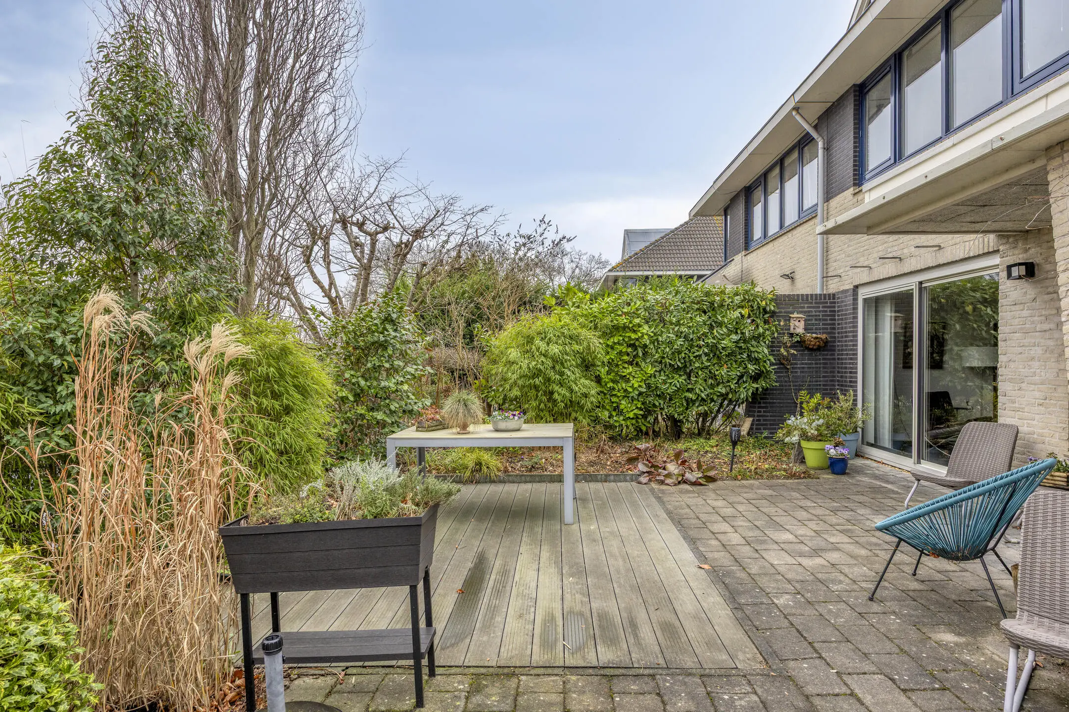 De stijlvolle glasdeur geeft toegang tot de zeer ruime living. De woonkamer is tuingericht en beschikt over een schuifpui naar de zonnige, verzorgde achtertuin met vlonder aan het water. Hier geniet je in alle rust van het vrije uitzicht en de zon.
