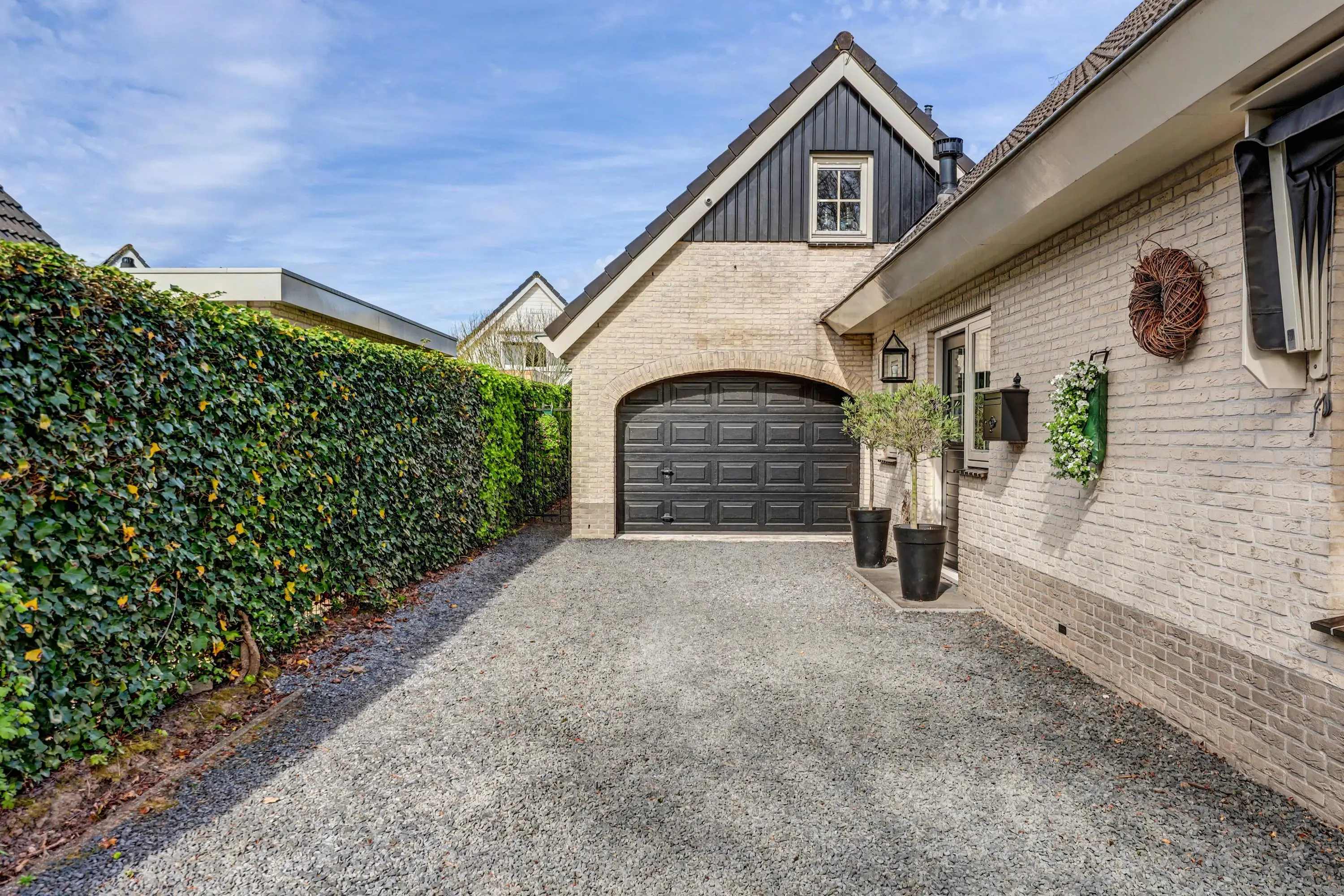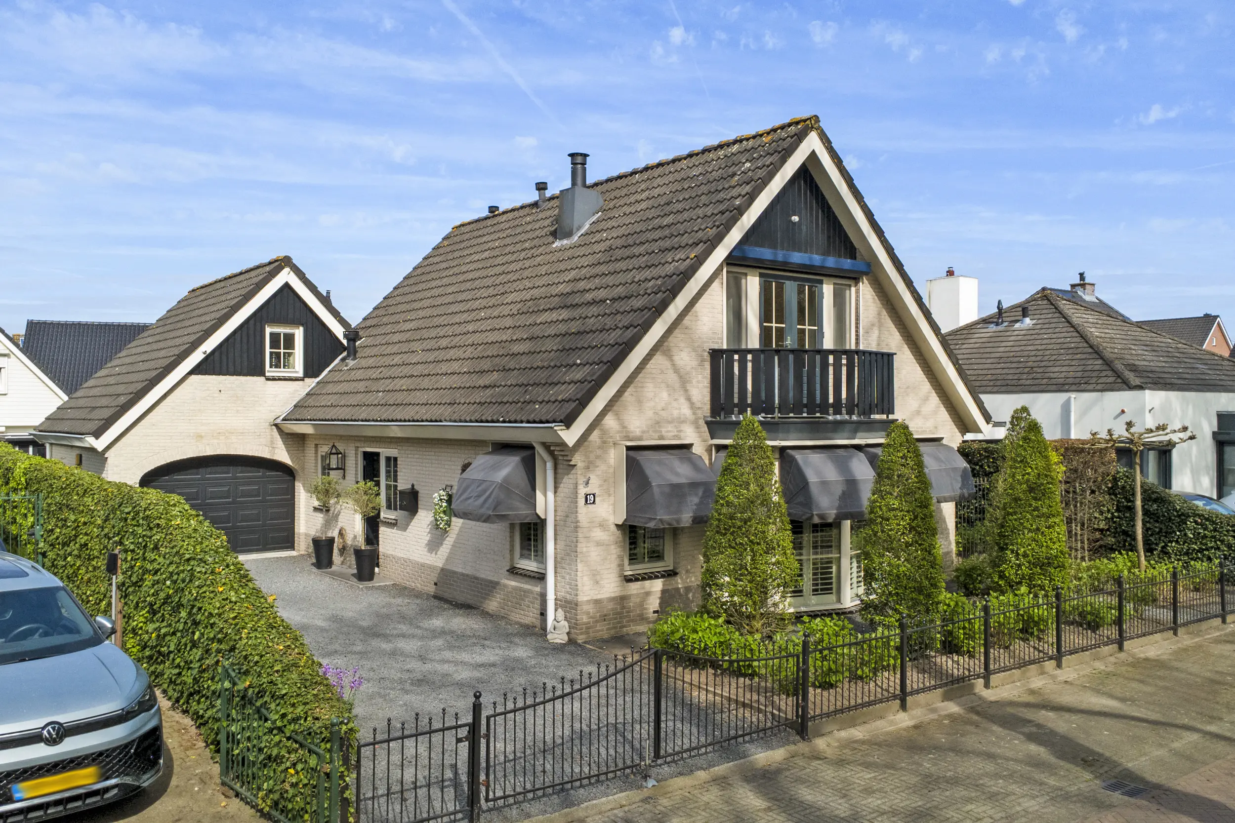 Aan de voorzijde kun je meerdere auto's parkeren om de oprit, of natuurlijk in je eigen garage.