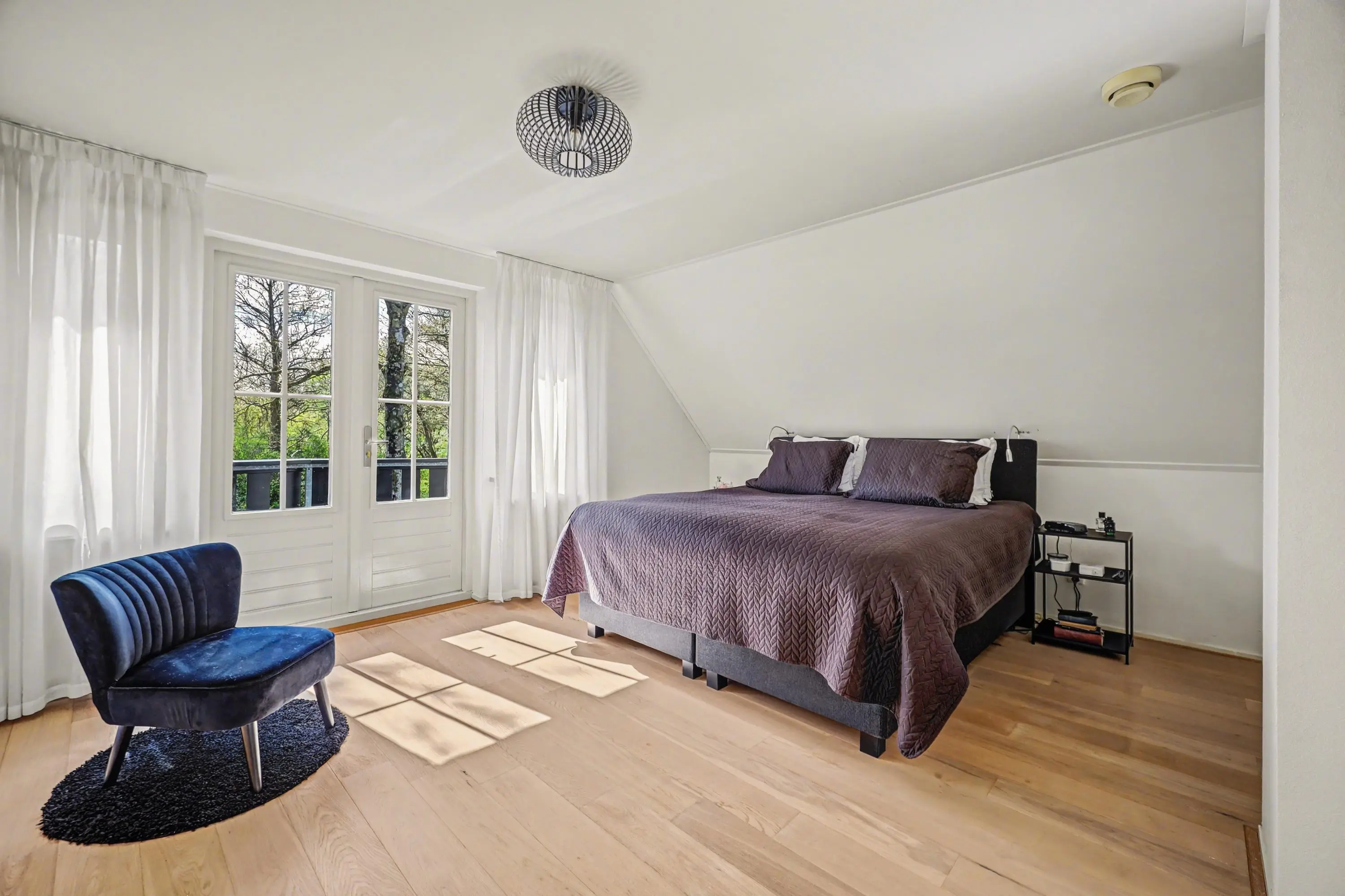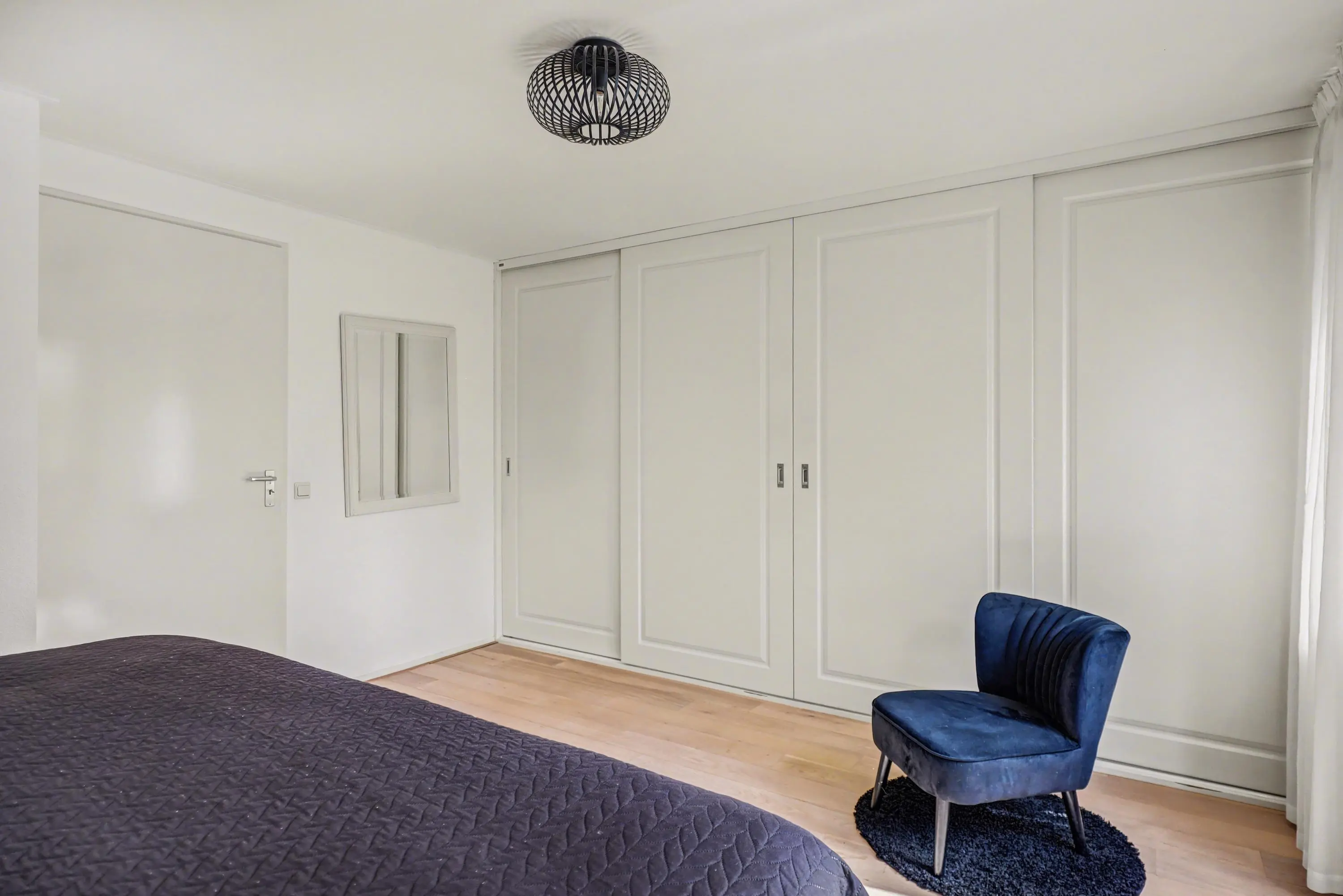 Aan de voorzijde van de woning tref je de grote hoofdslaapkamer met veel kastruimte en toegang tot het balkon.