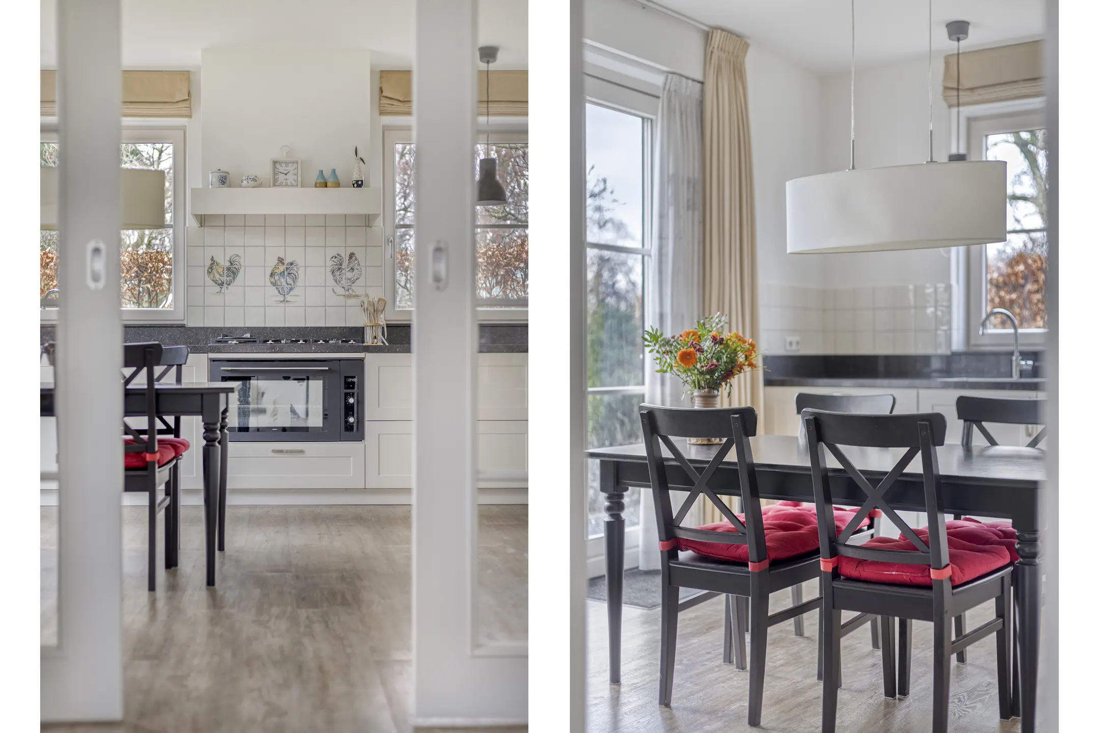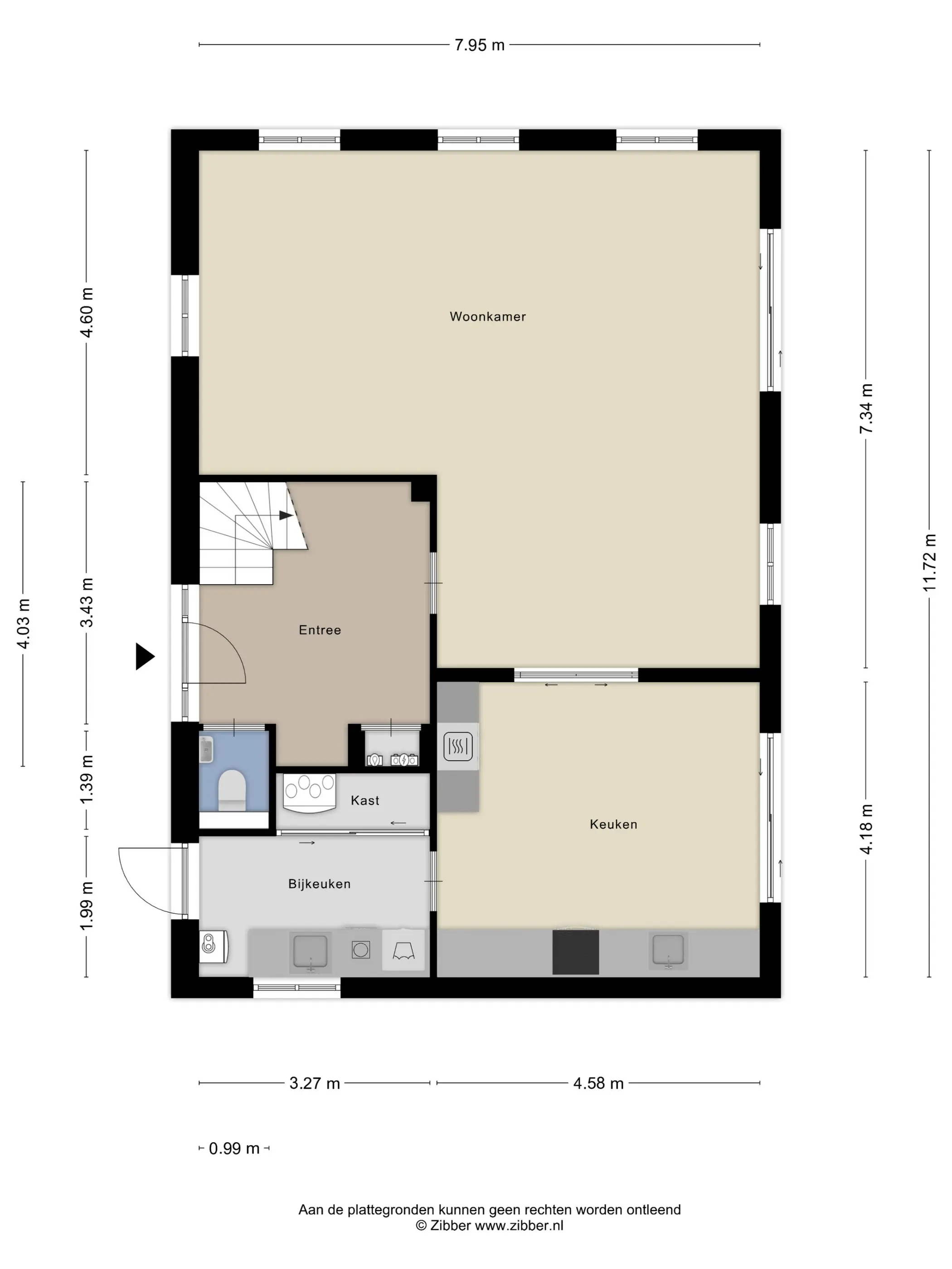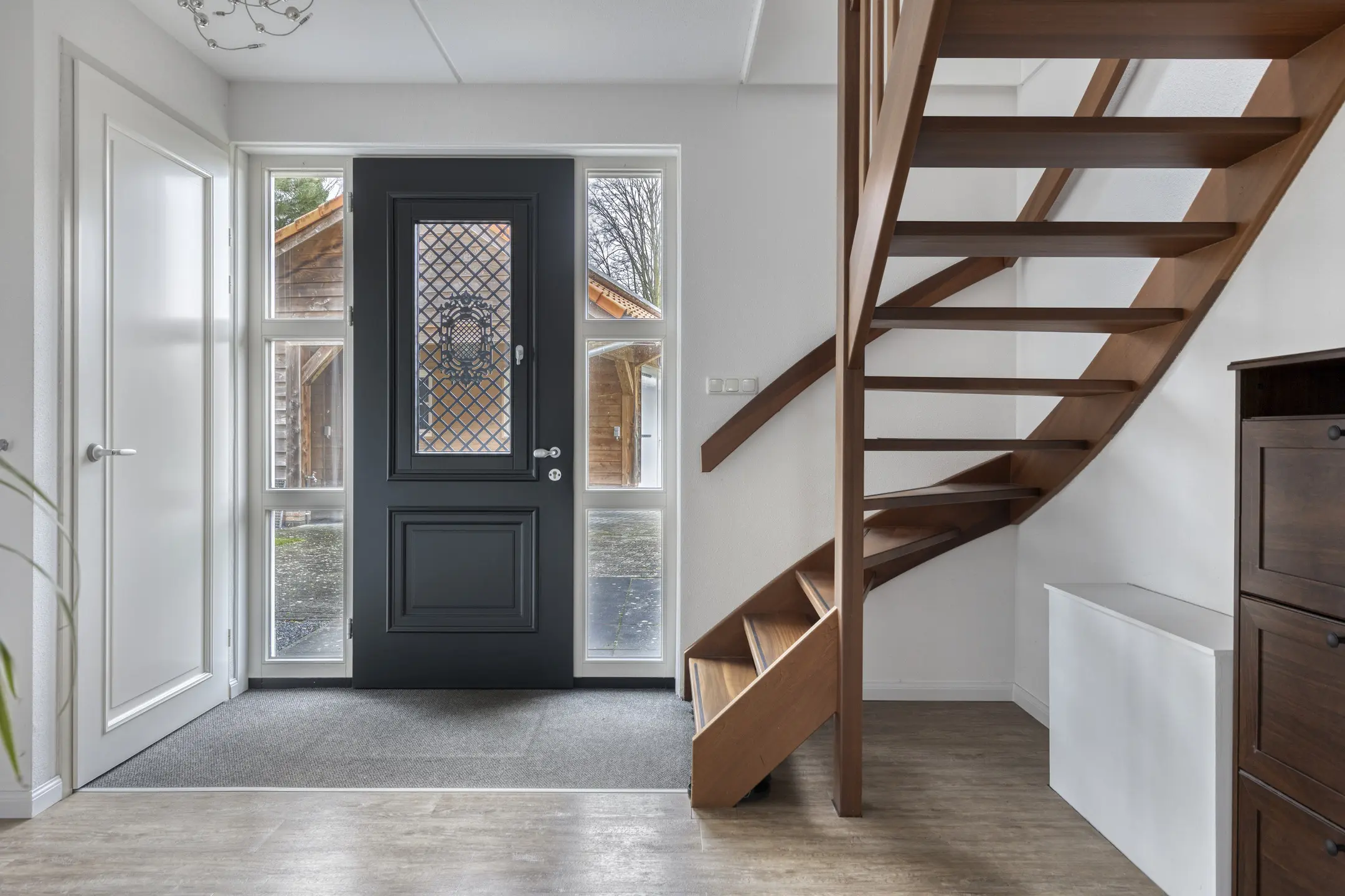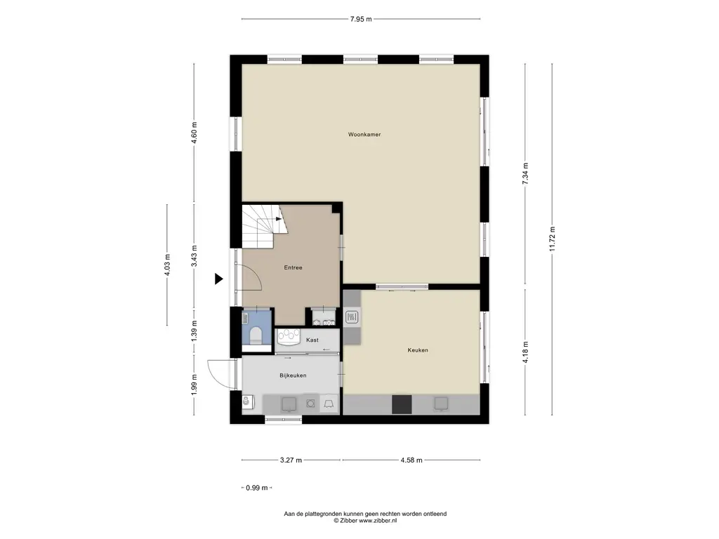 Via de keuken is de bijkeuken bereikbaar, een praktische ruimte voor extra opbergruimte, wasmachine-aansluiting of voorraadkasten. Door de logische indeling van de begane grond kunt u de ruimtes naar wens inrichten, bijvoorbeeld met een grotere eettafel voor gezinsmaaltijden of een speelhoek voor kinderen.