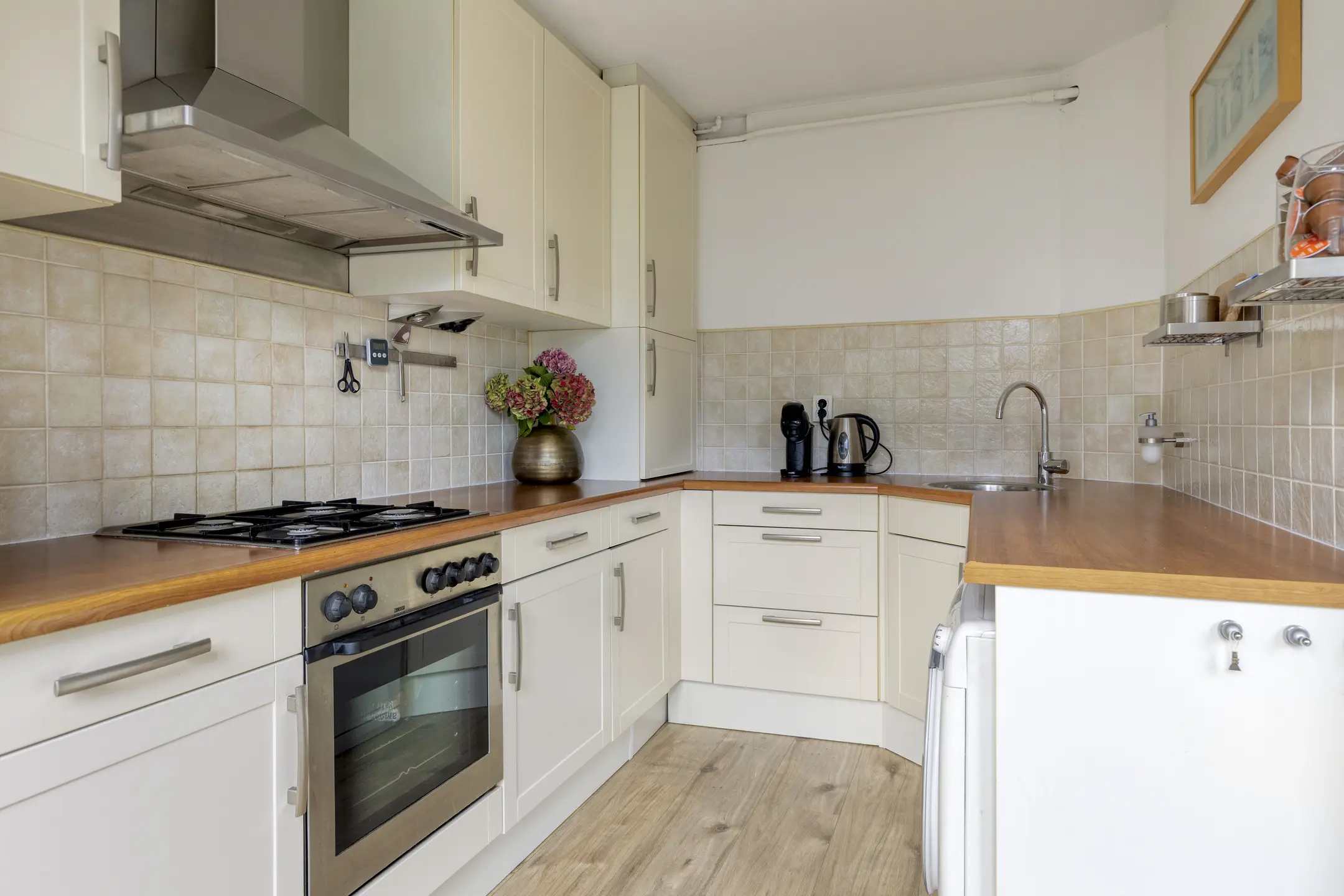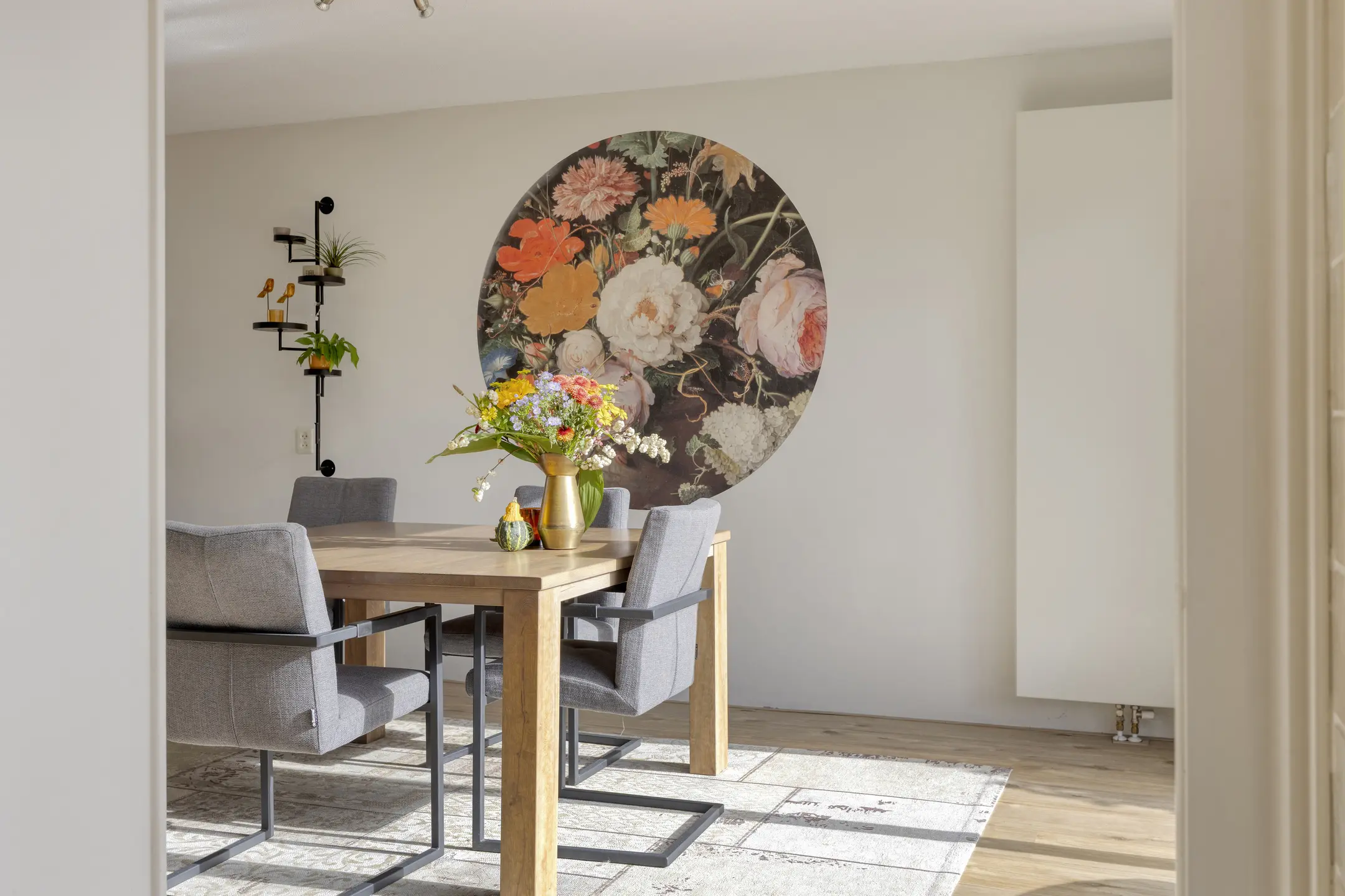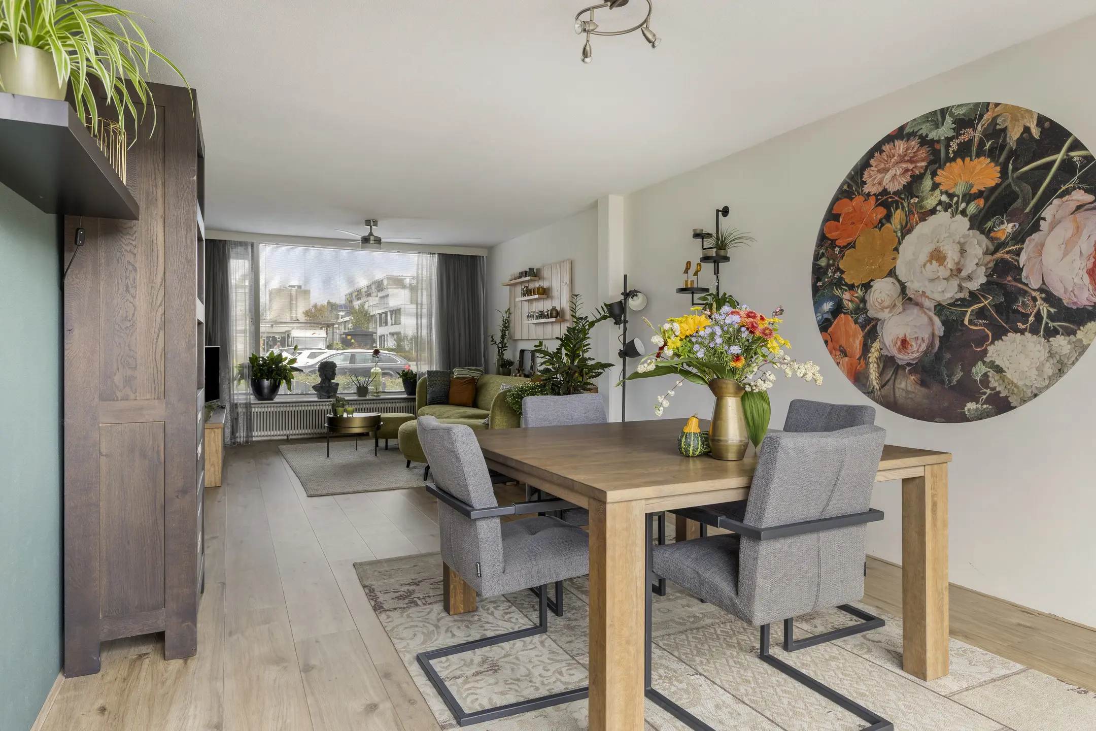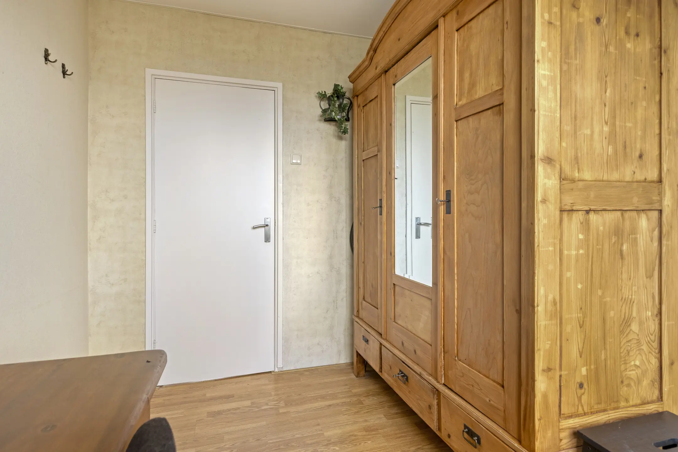 De toiletruimte is geheel betegeld en er is een fonteintje aanwezig. Vanuit de hal is er via een deur met glas toegang naar de ruime doorzon woonkamer. De woonkamer is riant van formaat en prettig licht door de grote schuifpui aan de achterzijde. Vanuit de woonkamer is er een doorgang naar de keuken, deze is geplaatst in U-opstelling en is uitgerust met een gasfornuis, afzuigkap, oven, koel-/vriescombinatie, apothekerskast en losse vaatwasmachine. Er is een kastje aanwezig met daarin de C.V.-combiketel en de aansluiting van de wasmachine is eveneens in de keuken. In de keuken is een deur naar de achtertuin. Op de begane grond ligt een mooie laminaatvloer met brede planken welke in 2022 is gelegd.