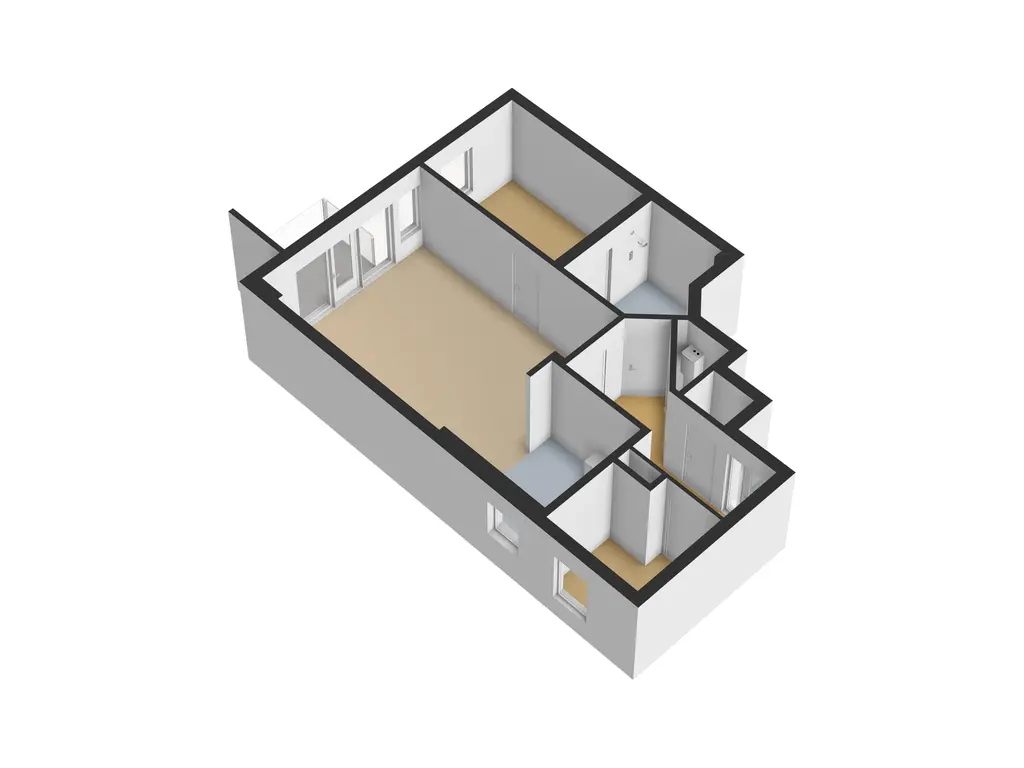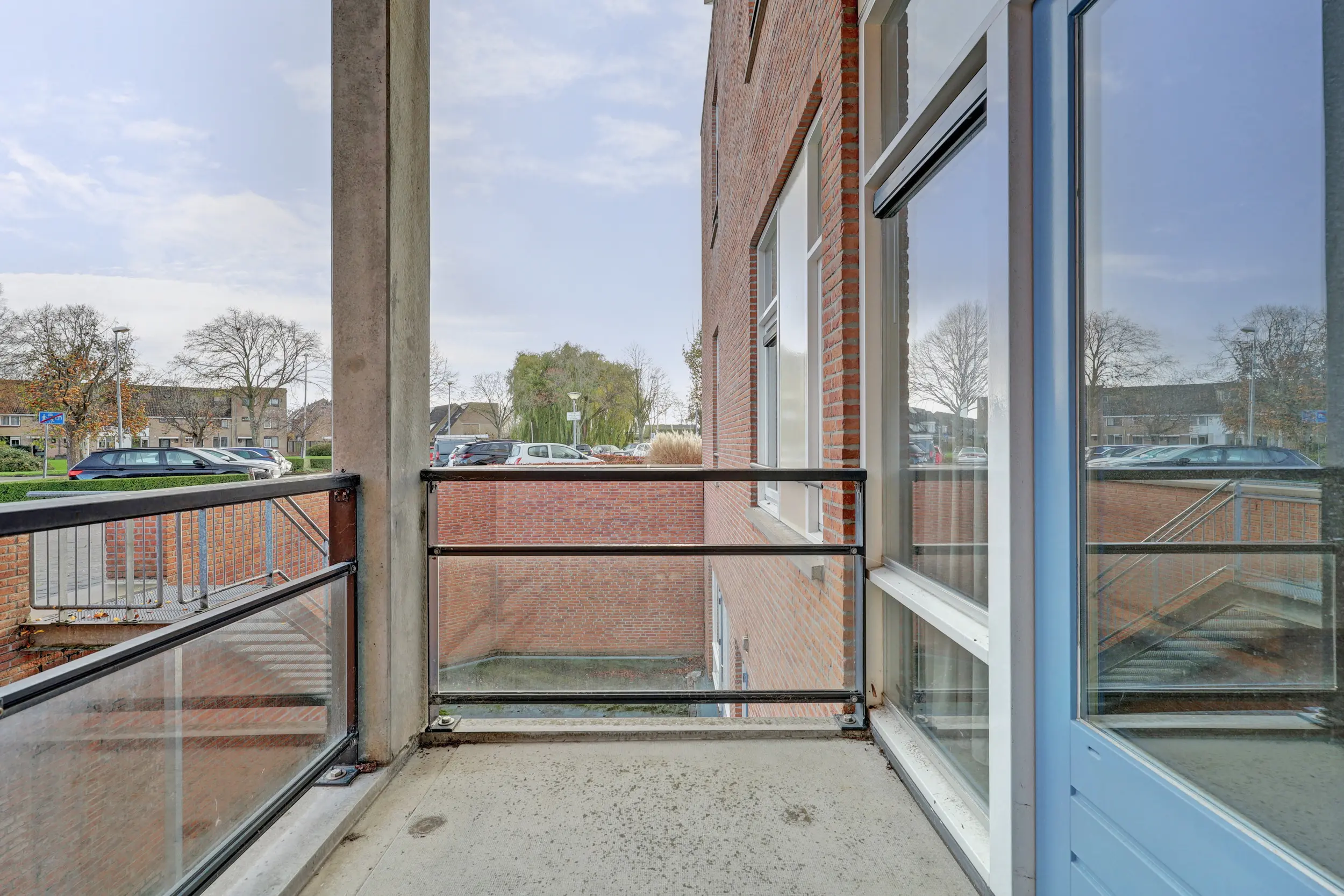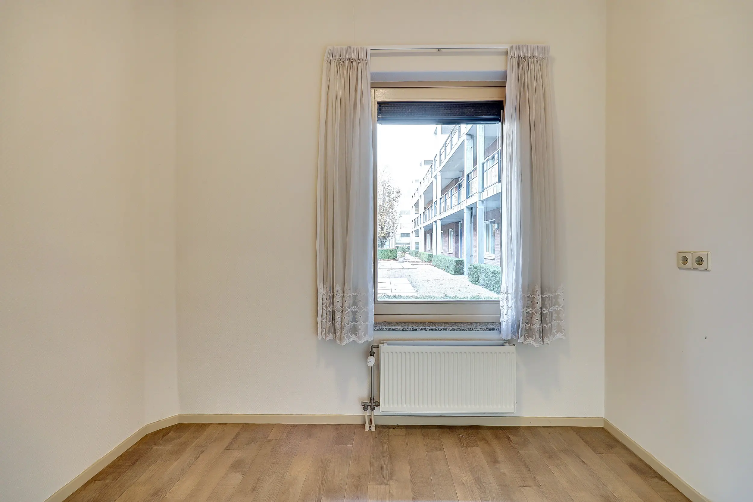 De ruime woonkamer ligt centraal in het huis en is voorzien van een fijn balkon. De open keuken (Bruynzeel) in L-vormige opstelling is voorzien van voldoende bergkasten. Vanaf hier een leuk zicht op de binnentuin. Grenzend aan de woonkamer is een van de twee slaapkamers gelegen. De badkamer is vanuit de hal en slaapkamer bereikbaar. De ruime betegelde badkamer is voorzien van een douche en wastafel. De 2e slaapkamer grenst aan de entree/hal en kijk uit op de binnentuin.