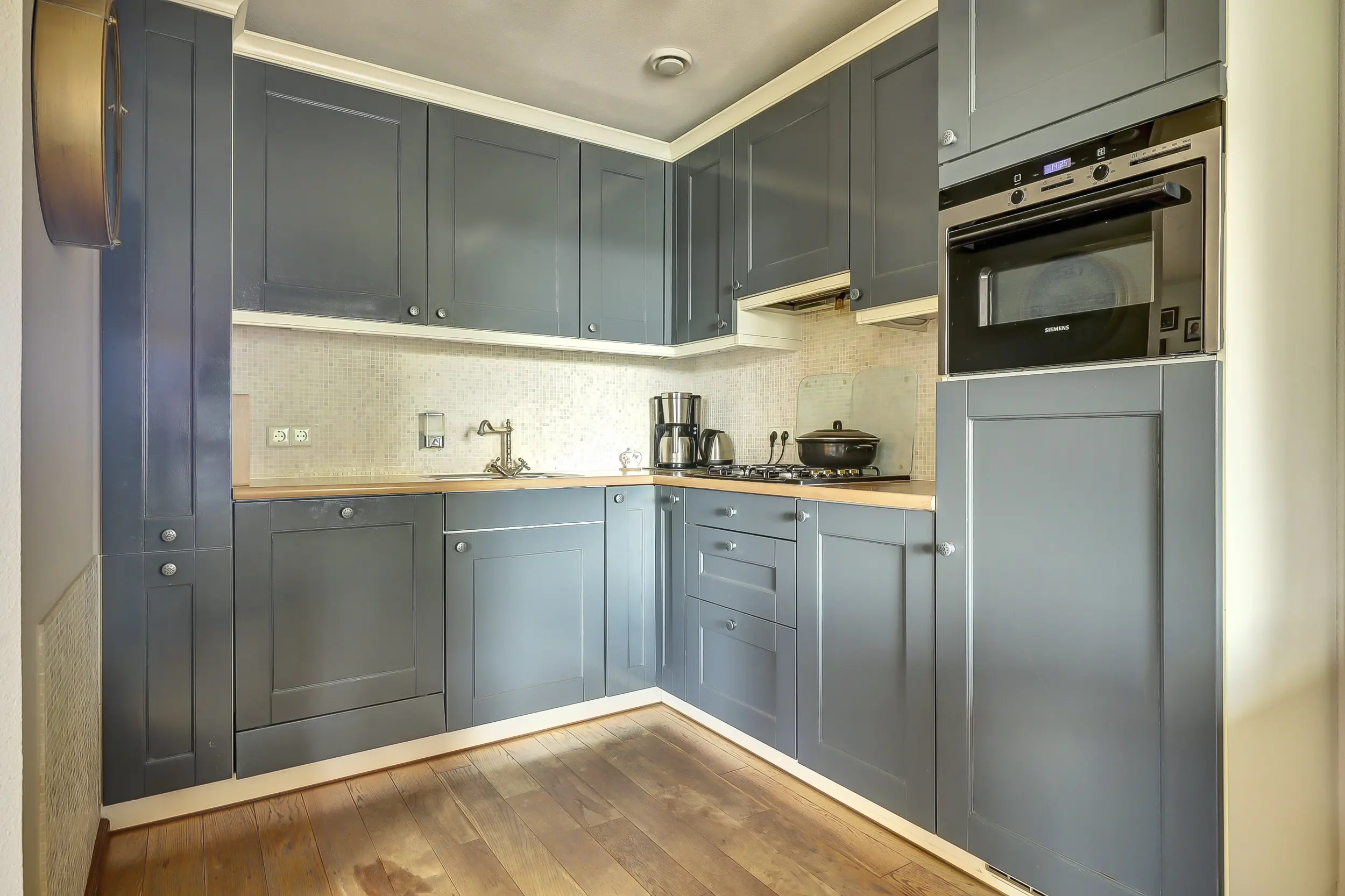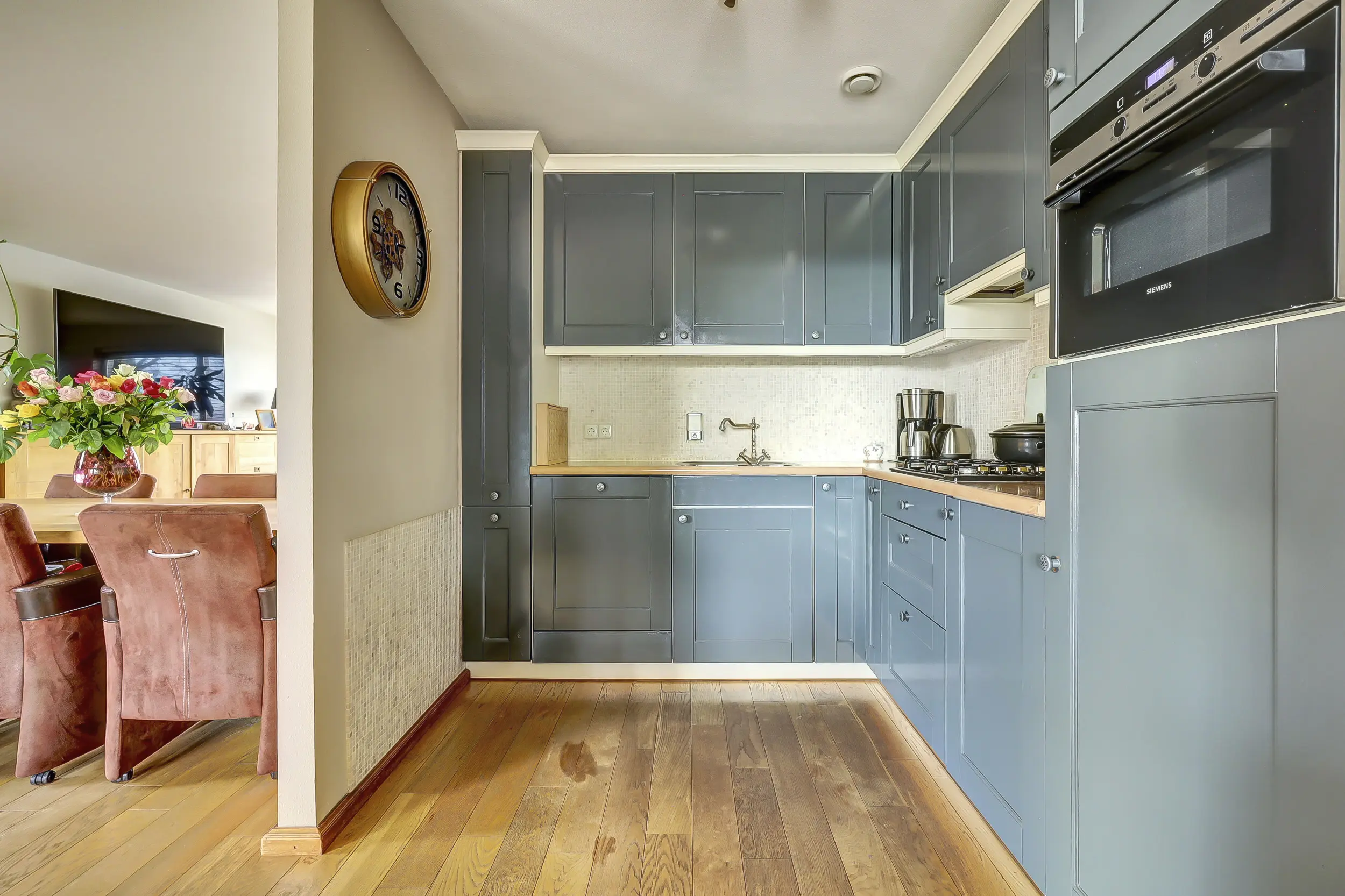 De half open keuken is voorzien van inbouwapparatuur, via een tussenhal heb je toegang tot de garage van 18,5 m2 naast de woning.