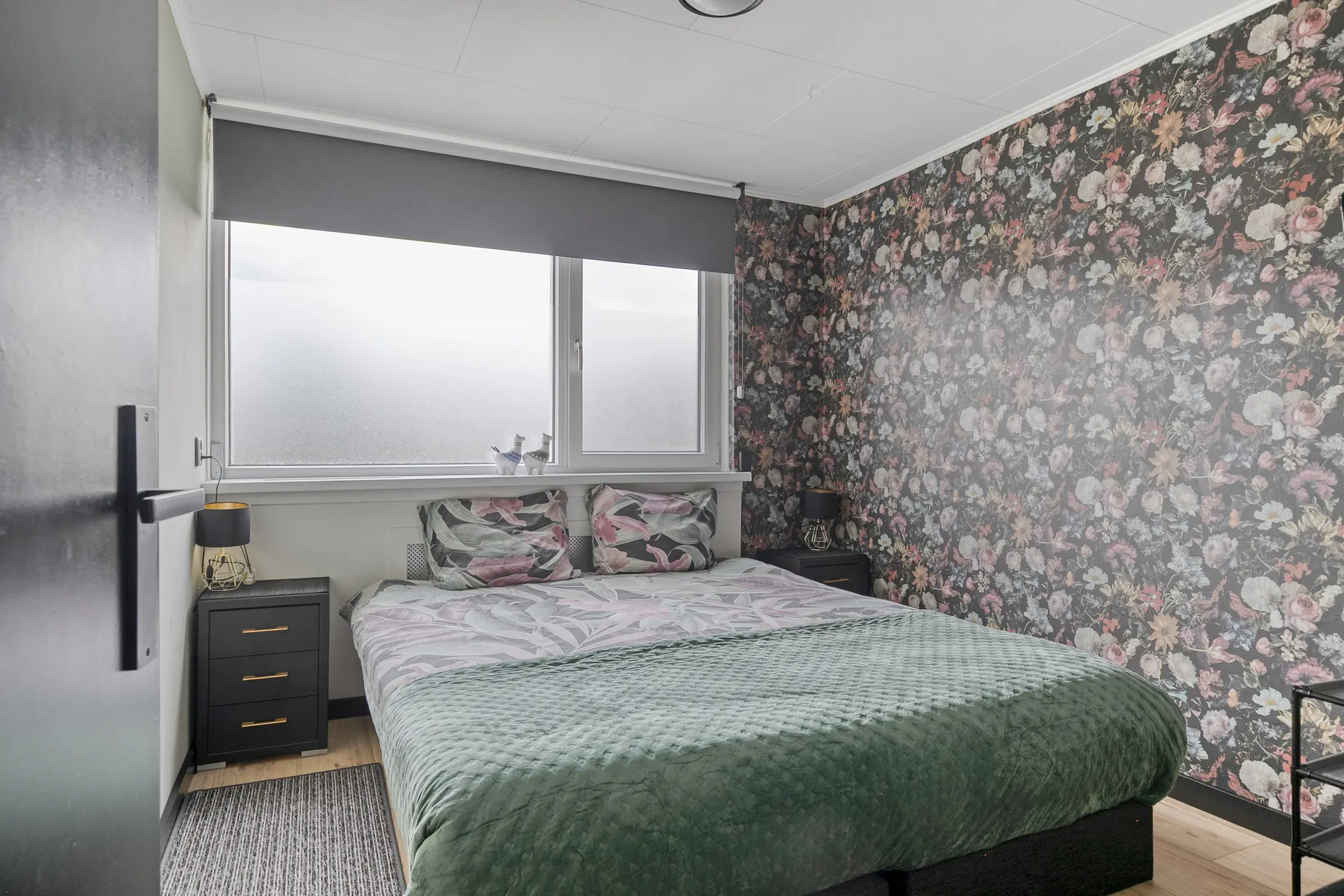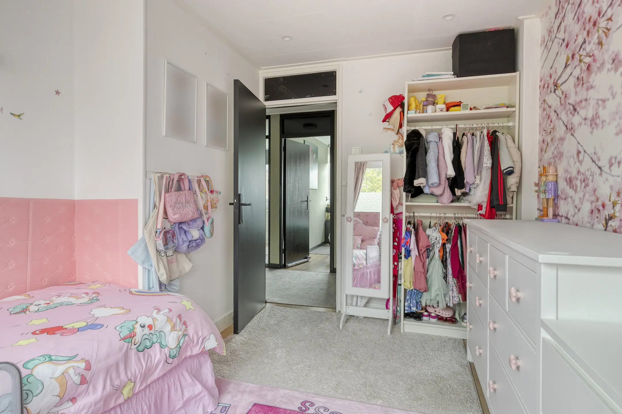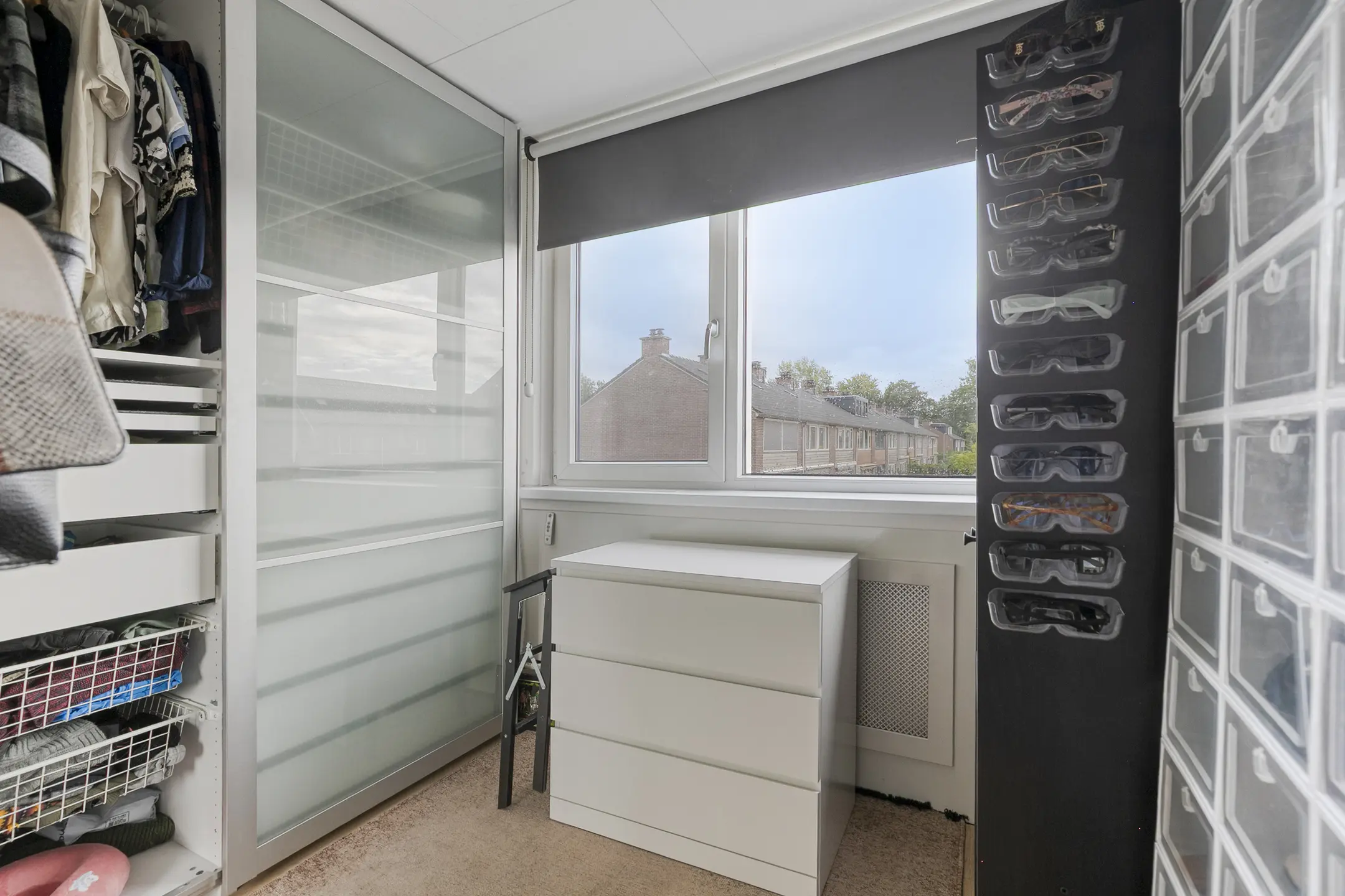 Overloop met toegang tot de vertrekken; twee ruime slaapkamers aan de achterzijde van het huis, de grootste van de twee heeft een vaste schuifkast. De geheel betegelde badkamer is vergroot en voorzien van een inloopdouche, wandcloset en wastafelmeubel met twee kranen en een spiegel met verlichting. Slaapkamer drie en vier liggen aan de voorzijde, de kleinste van de twee is momenteel in gebruik als inloopkast. Alle kamers op deze verdieping zijn voorzien van elektrisch bedienbare verduisterende en zonwerende screens. Op de overloop en in de kamers ligt een laminaatvloer.