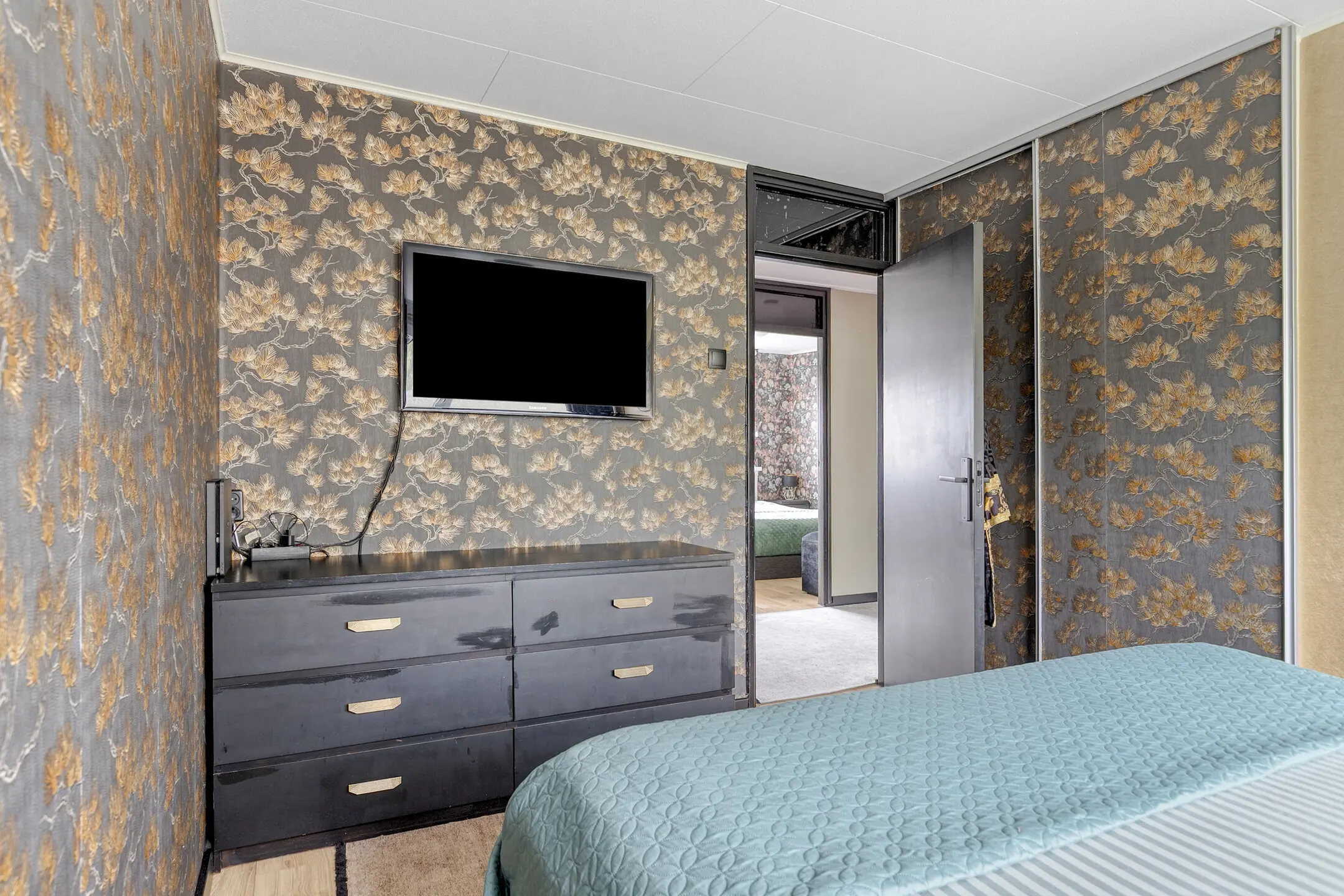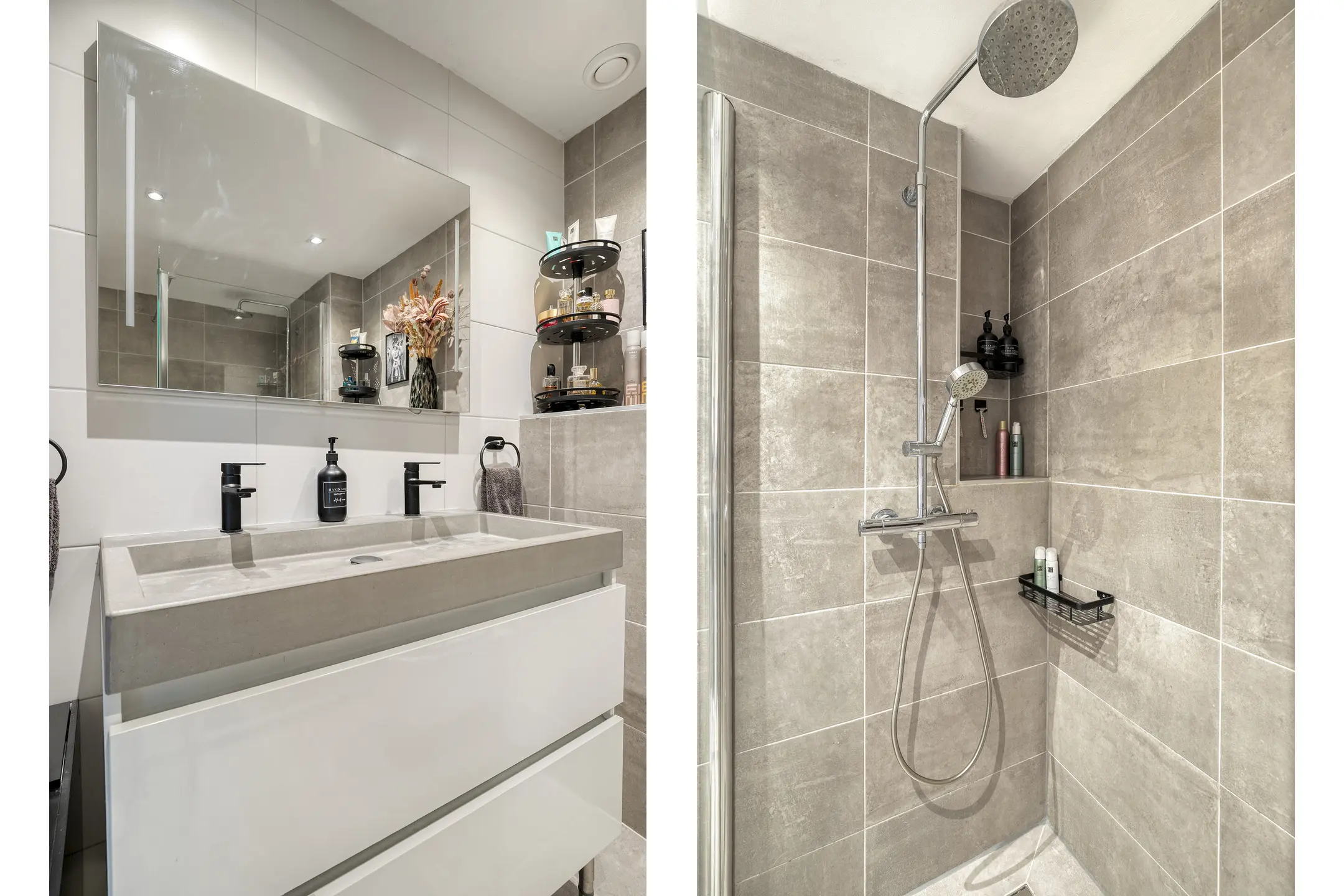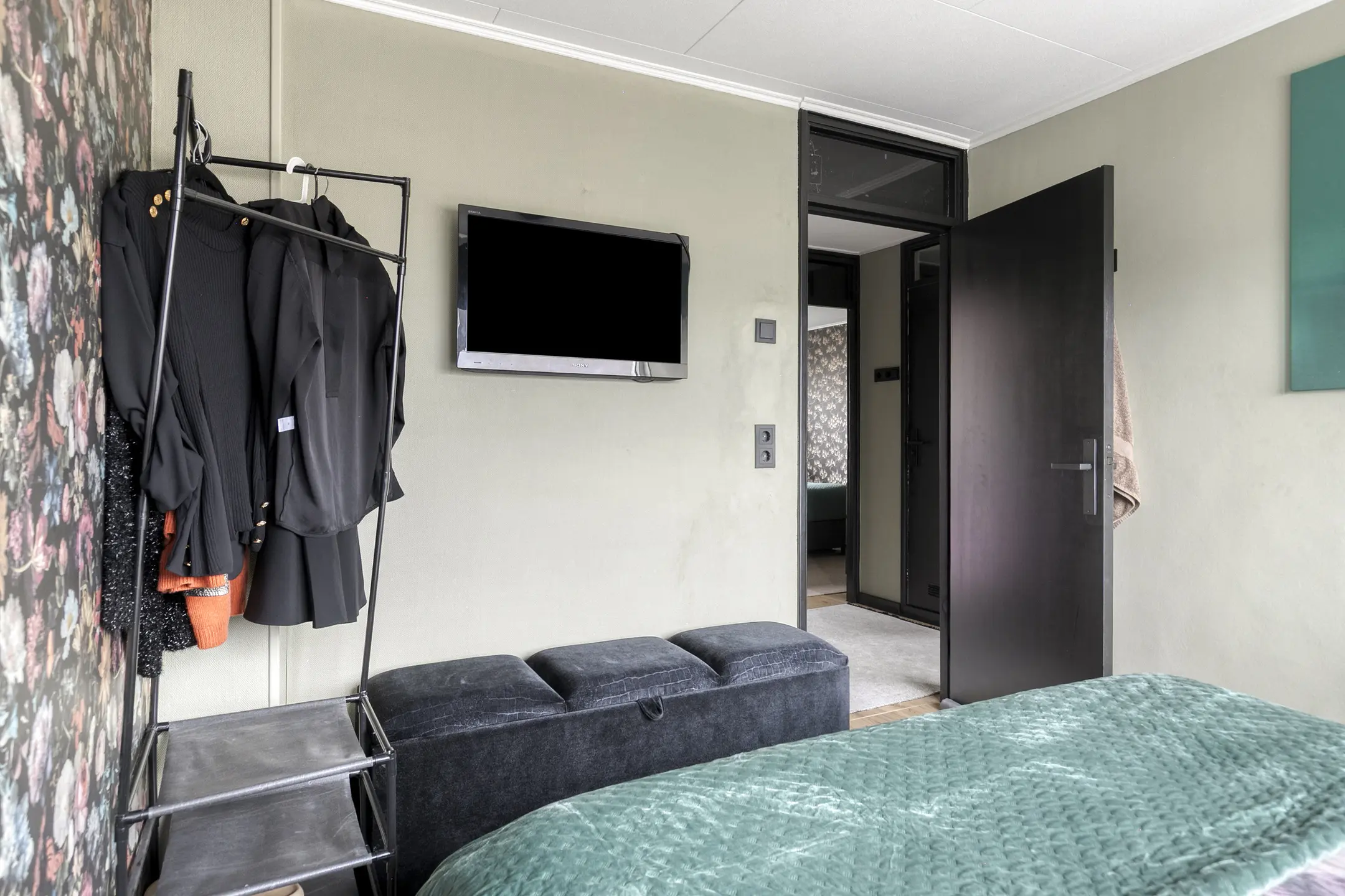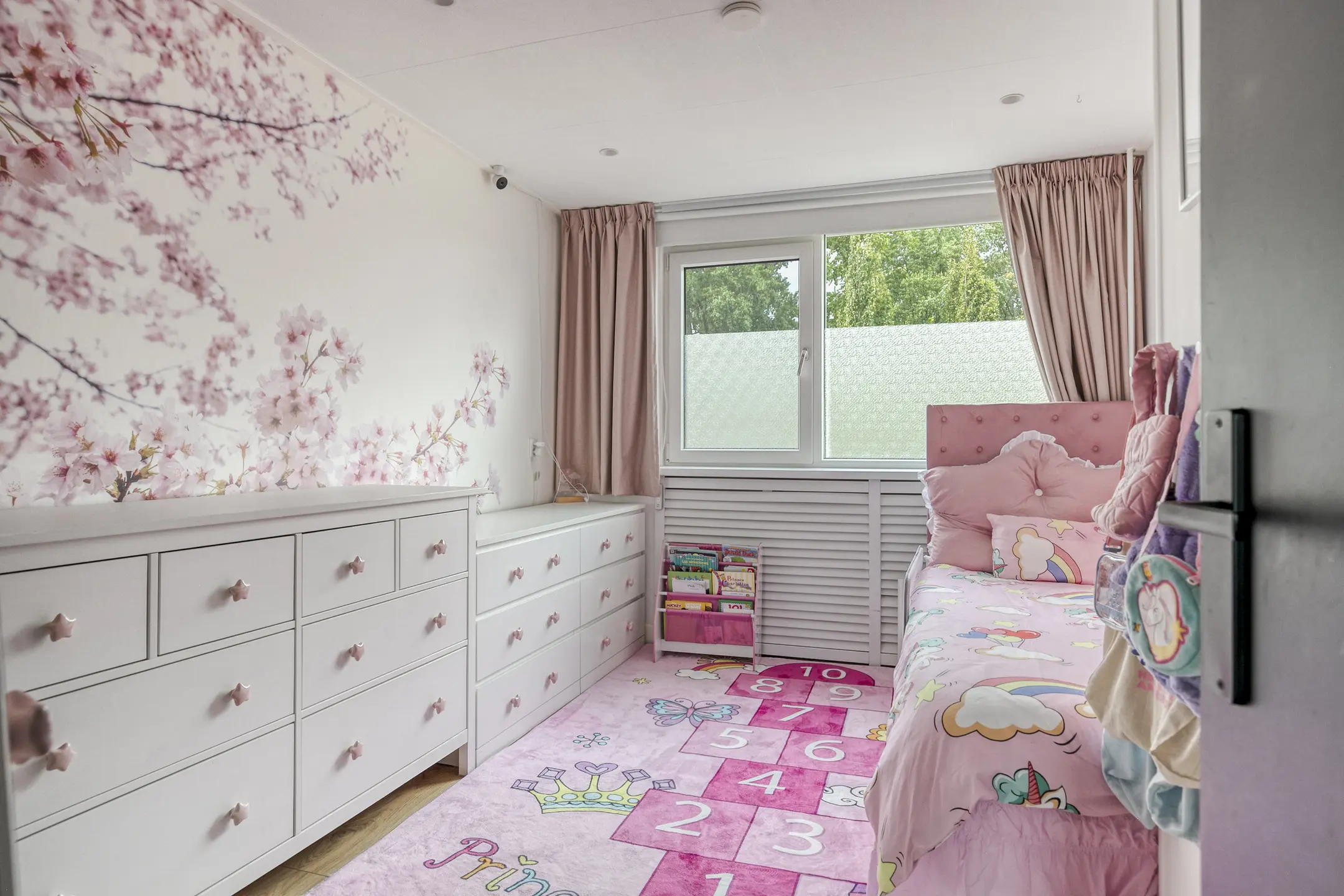 Overloop met toegang tot de vertrekken; twee ruime slaapkamers aan de achterzijde van het huis, de grootste van de twee heeft een vaste schuifkast. De geheel betegelde badkamer is vergroot en voorzien van een inloopdouche, wandcloset en wastafelmeubel met twee kranen en een spiegel met verlichting. Slaapkamer drie en vier liggen aan de voorzijde, de kleinste van de twee is momenteel in gebruik als inloopkast. Alle kamers op deze verdieping zijn voorzien van elektrisch bedienbare verduisterende en zonwerende screens. Op de overloop en in de kamers ligt een laminaatvloer.