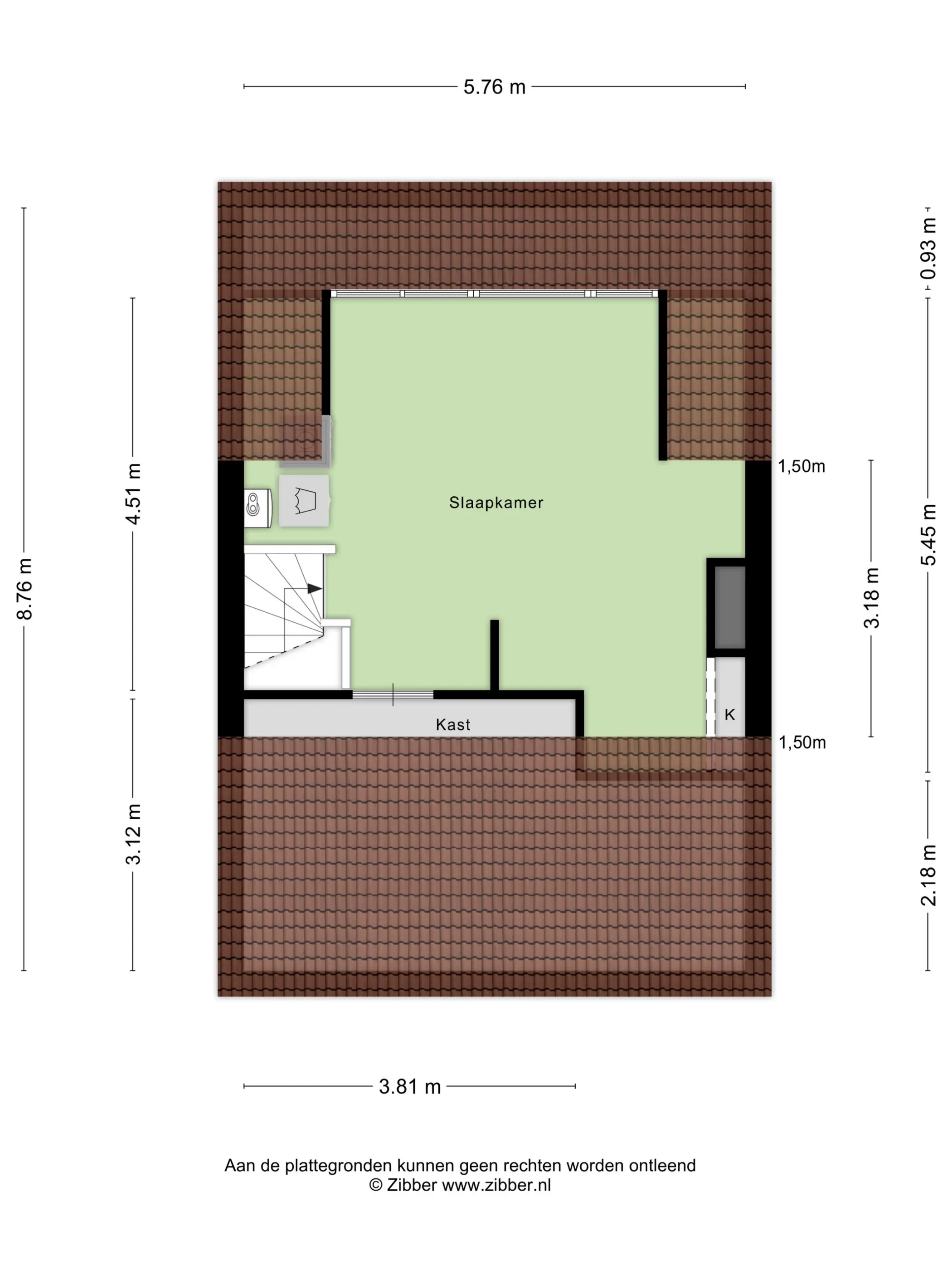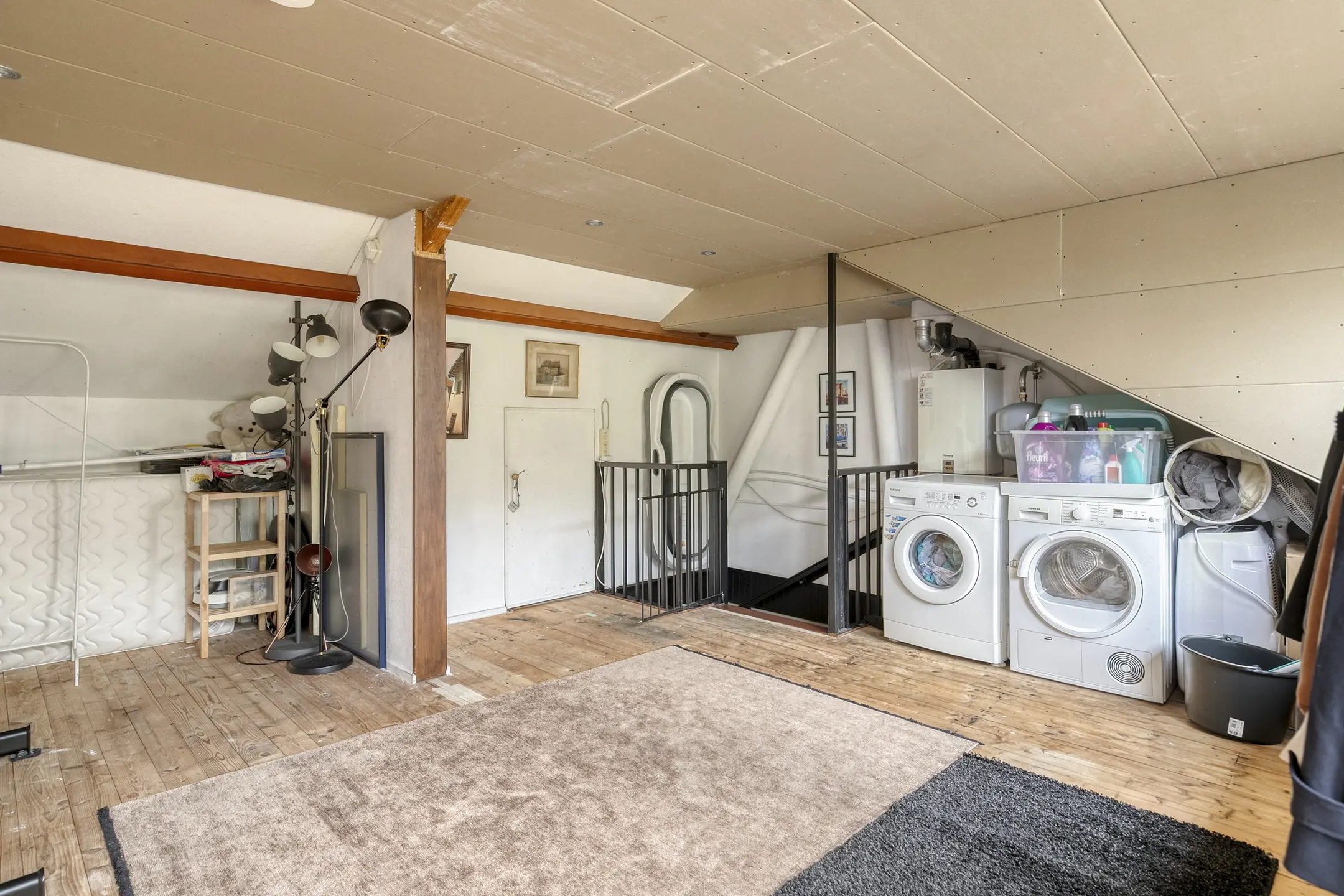 Middels vaste trap bereikbare open zolderruimte met praktische bergruimte, de aansluitingen voor de wasmachine en droger en de C.V.-combiketel. Deze ruimte heeft aan de achterzijde een in 2020 nieuw geplaatste dakkapel over de gehele breedte van de woning. Deze ruimte is naar eigen wens nog in te delen naar één of twee (slaap-) kamers en is momenteel klaar om gestuct te worden.