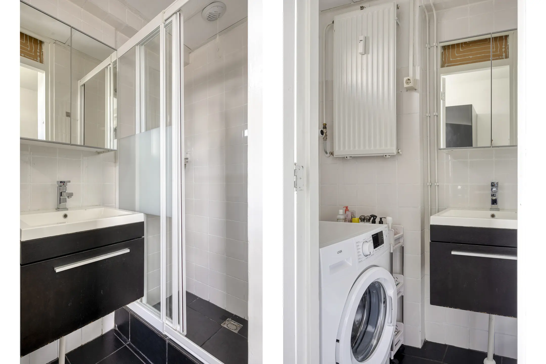 De moderne keuken is voorzien van diverse inbouwapparatuur en geeft toegang tot de badkamer. De badkamer beschikt over een douche, wastafel en aansluitingen voor de wasapparatuur.